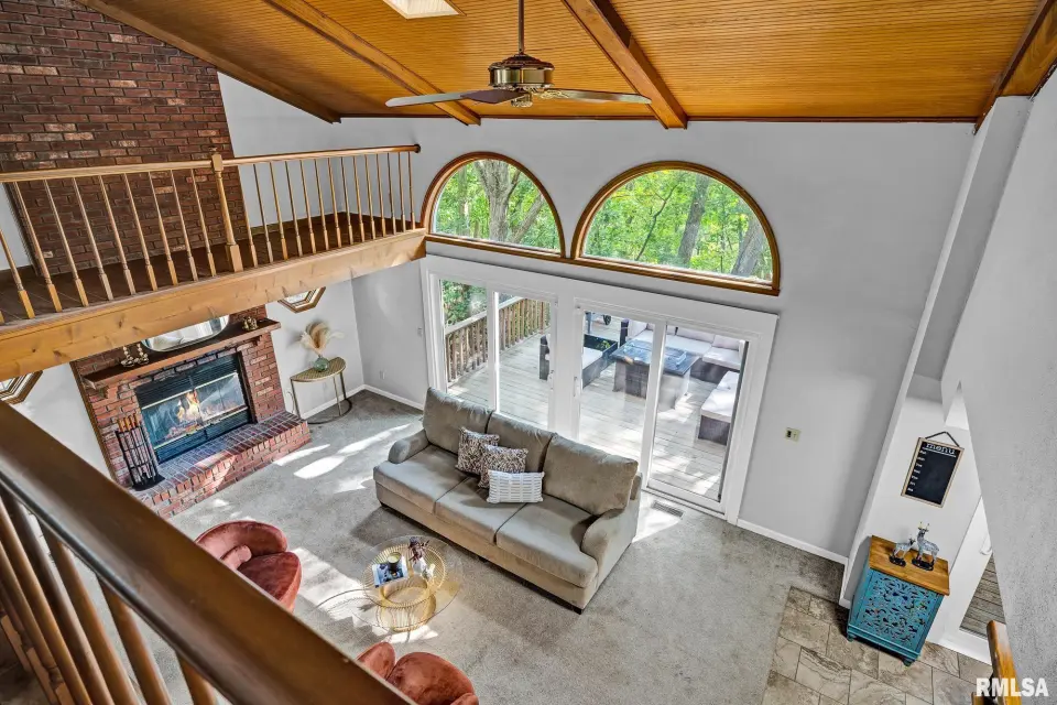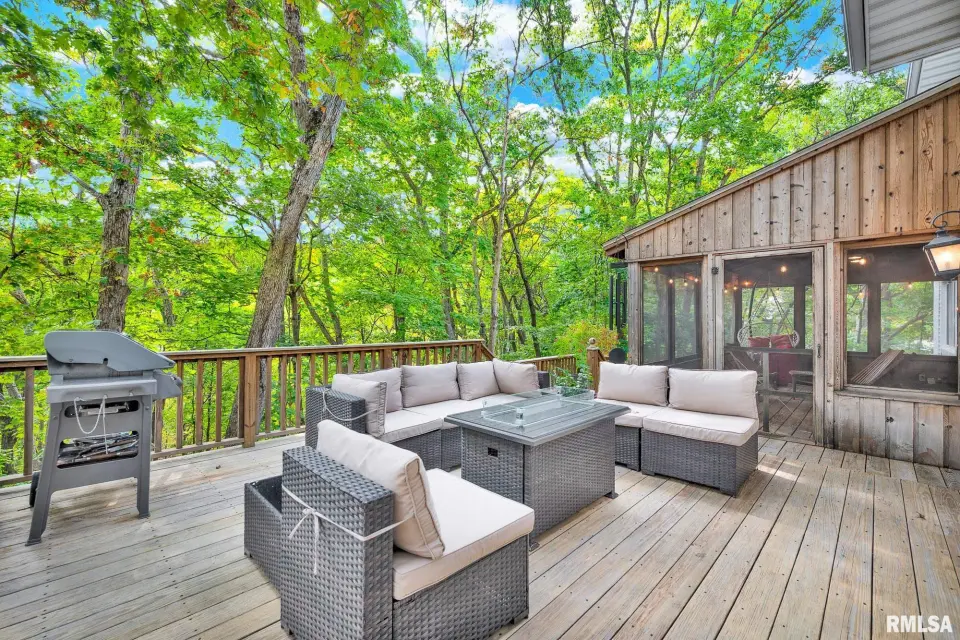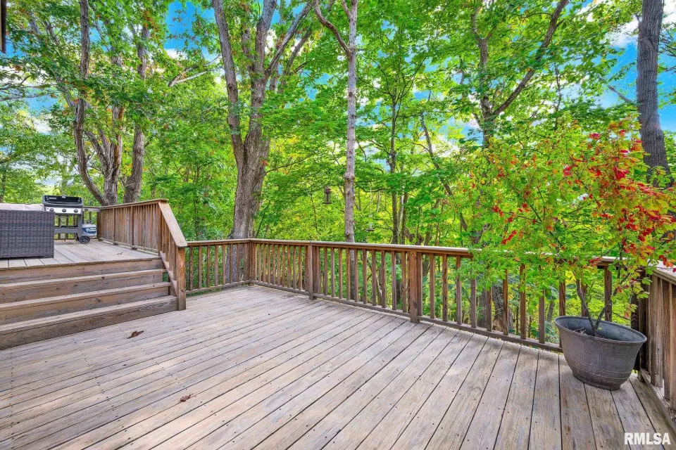 Nestled at the end of a quiet cul-de-sac and surrounded by mature trees, this 4-bedroom, 3-bath residence combines cozy charm with modern function. Located in the highly regarded Germantown Hills School District, this home offers both comfort and convenience for families. The main floor welcomes you with an open, sunlit living space, a family room anchored by a brick fireplace, and a beautiful kitchen that looks out into the woods. Enjoy dinner on the deck while watching the sunset through the trees, or curl up with a cup of tea in the screened porch as rain taps softly overhead. A main-floor guest bedroom and full bath make hosting easy, while the upper level offers three more bedrooms, including a relaxing primary suite with forest views and an updated ensuite bath. The open loft provides a perfect nook for reading or remote work. Downstairs, the spacious basement doubles as a home gym or creative studio, with room to grow or store. Outside, two decks and a wooded lot make it easy to forget you’re just minutes from Peoria Heights and riverfront trails. Whether you’re drawn to the warmth of the fireplace, the calm of the forest, or the sense of retreat that starts the moment you pull in the driveway — this home was made to be lived in, not just looked at. Recent updates - Washer & Dryer (2022), Garbage disposal (2022) & Ring Security system & Ring Door bell (2023)