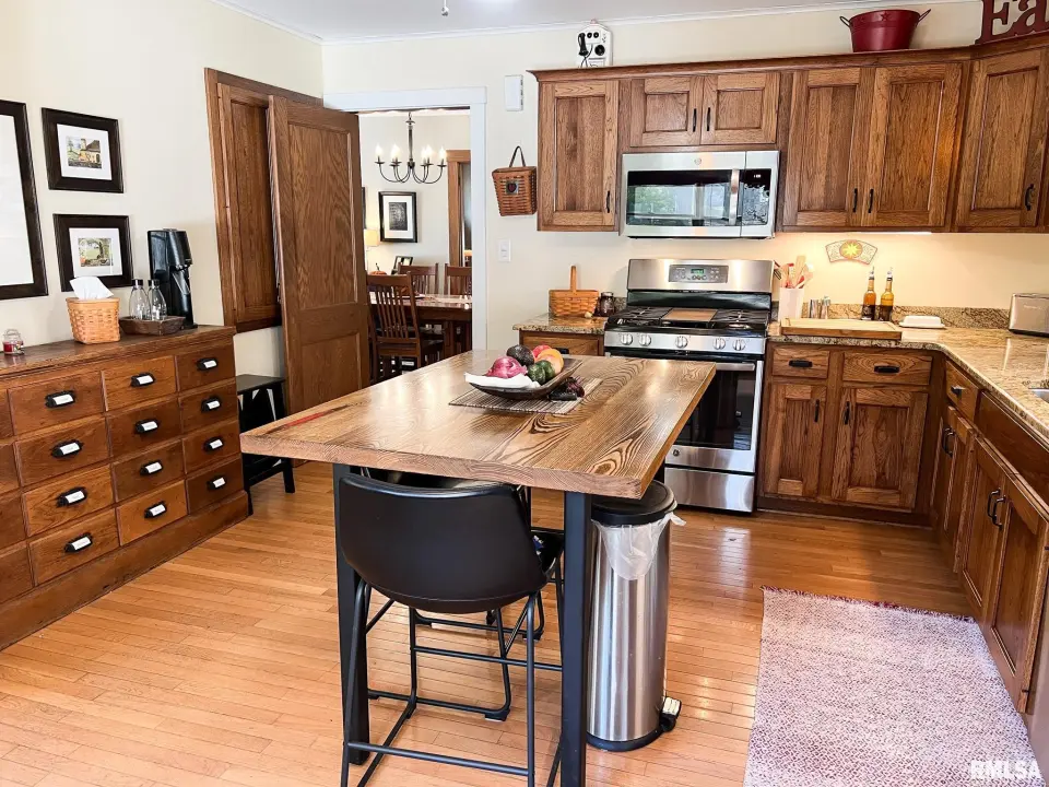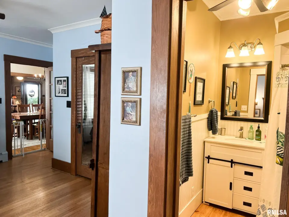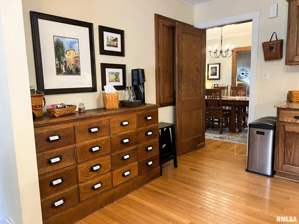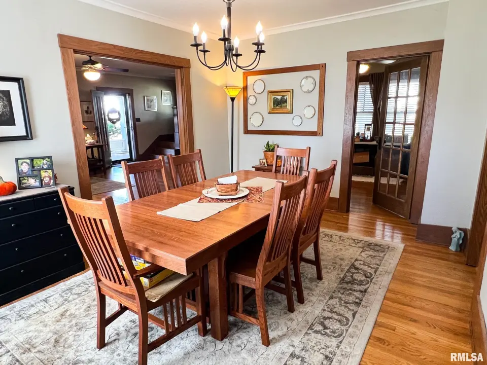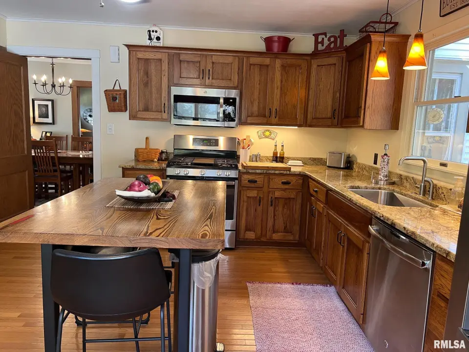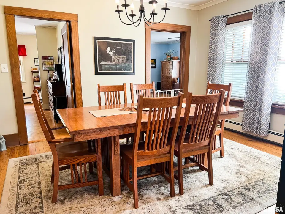 Old-world charm meets modern comfort in this beautiful 4 bedroom, 2 bath Craftsman home ideally located in the heart of Eureka. Enjoy the inviting covered front porch as you drive through the charming carport to the oversized one-car garage leading to the brick patio overlooking the spacious lot. The large yard boasts mature trees a serene backyard, private patio, & a cozy fire pit - perfect for cool fall evenings. Inside, you'll find original well maintained hardwood floors & gorgeous trim work throughout. The spacious living room features a cozy gas log fireplace w/ remote, & the formal dining room flows nicely into the generous sized kitchen. The main-floor primary suite includes a private exit to the backyard patio. Upstairs, you'll find 3 additional bedrooms & a fully remodeled bathroom w/ plenty of space for everyone. The basement offers extra storage, a laundry room area, & a large family room for additional living space. Updates add modern convenience w/out sacrificing character. Metal roof, central air, mini split, updated electrical panel, ceiling fans w/ upper lighting, remodeled bathroom, solid surface countertops, Apothecary cabinet fronts in the kitchen, dewatering system, radon mitigation system, & enlarged front gutters all add to the value & comfort of this home!! Conveniently located within walking distance of downtown Eureka, this home is truly a gem-don't miss your chance to make it yours!