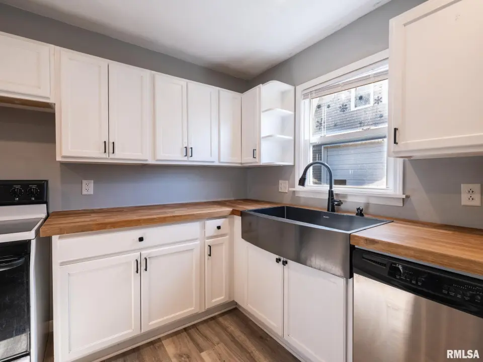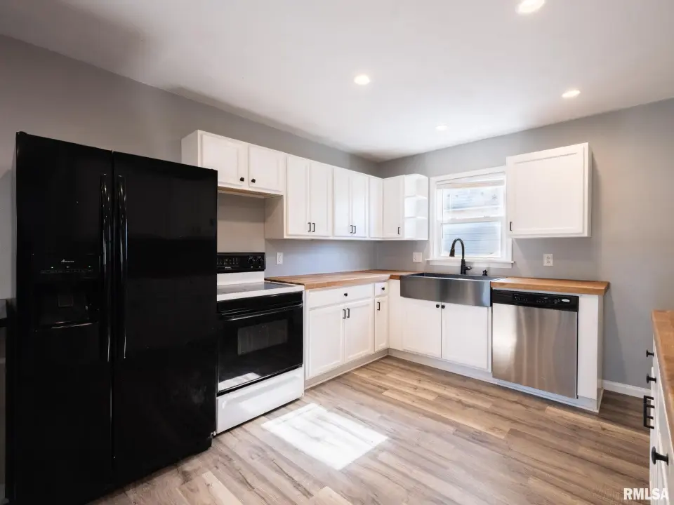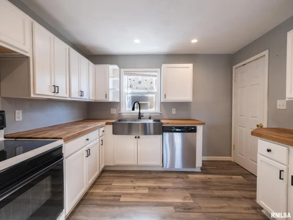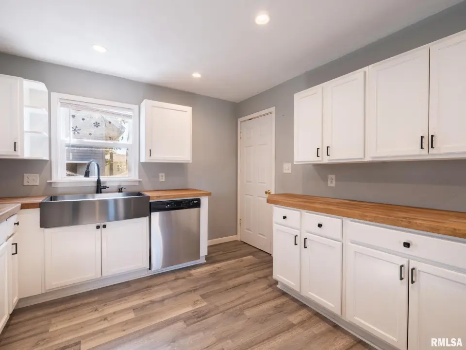 The inviting huge front porch is perfect for morning coffee or evening relaxation. Inside, you’ll find an updated kitchen featuring updated appliances, butcher block countertops, large farm sink, and solid surface peninsula. The main level includes two bedrooms, a remodeled bathroom, vinyl windows, and updated laminate flooring throughout. Downstairs, enjoy a spacious living room, bedroom with egress window, large laundry room with built-in shelving, and generous storage area. Step outside to a fully fenced yard offering privacy and room to play or garden. A 22x28 heated detached garage with a loft provides amazing workspace, storage, or hobby potential. HVAC (24), Porcch (18), Garage w loft (24), Siding (25), Bath remodel (24), Kitchen remodel (23), updated duct work (23), Updated electrical (19).