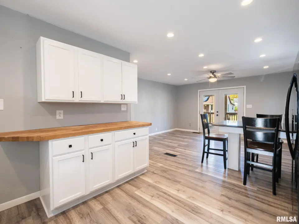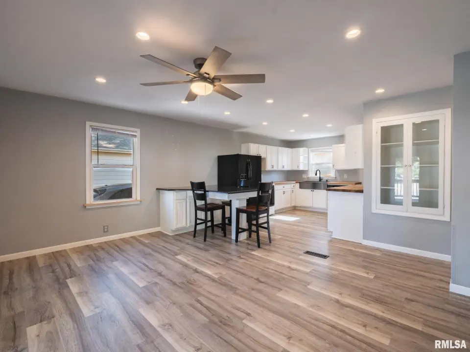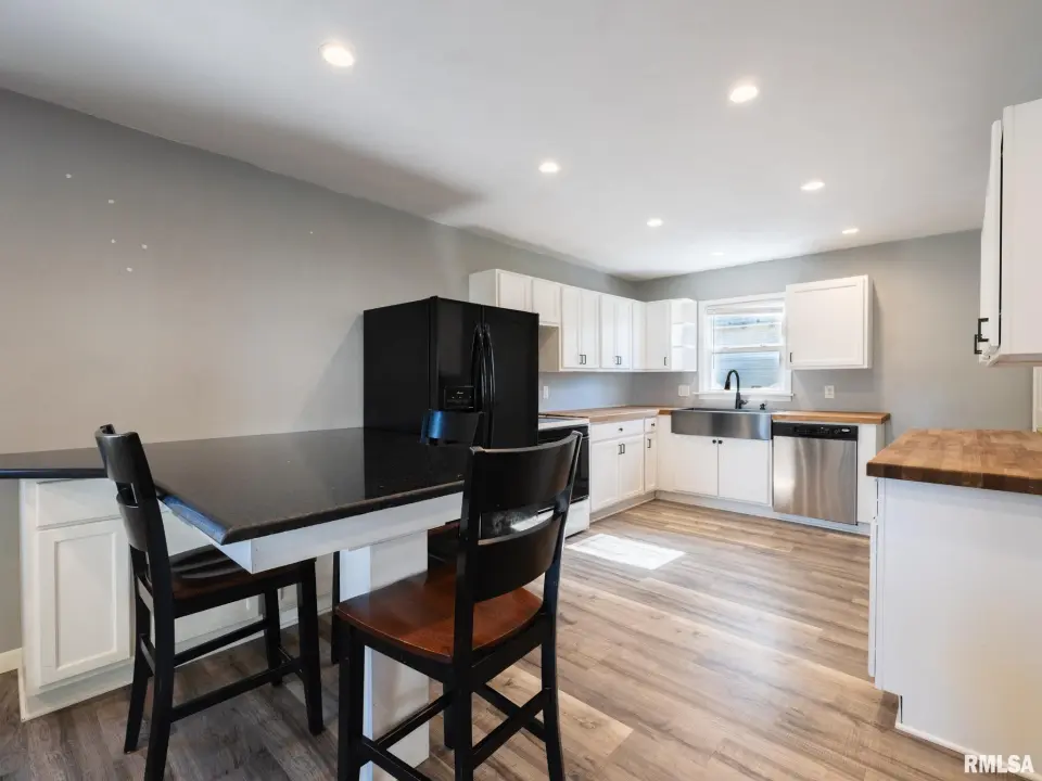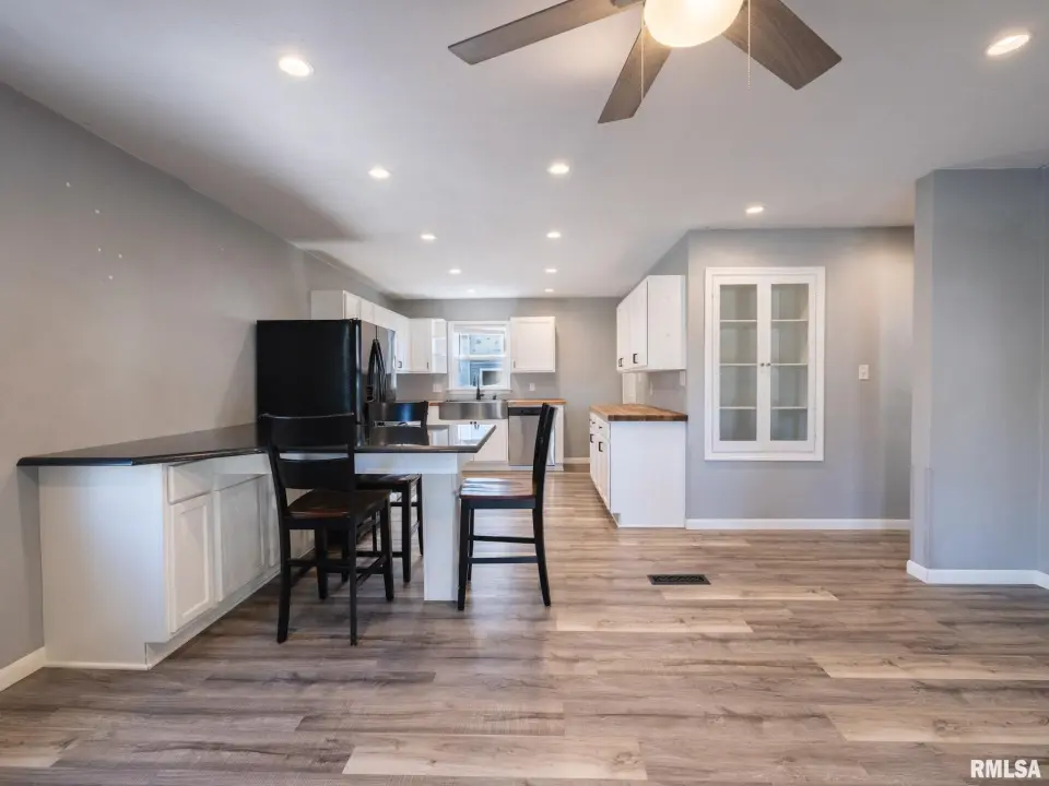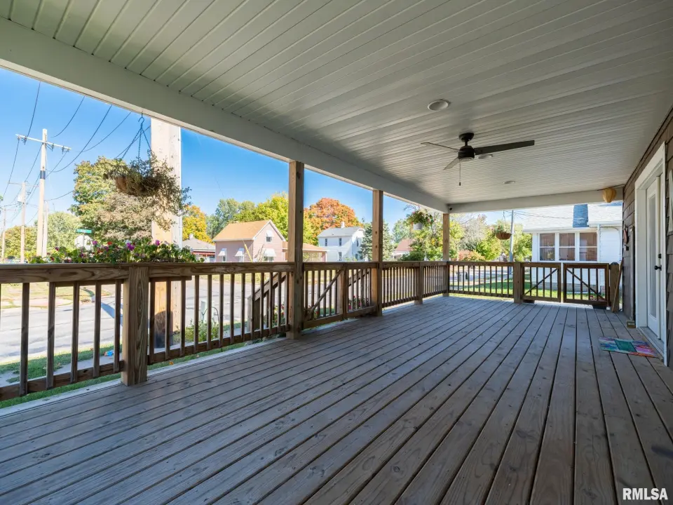 The inviting huge front porch is perfect for morning coffee or evening relaxation. Inside, you’ll find an updated kitchen featuring updated appliances, butcher block countertops, large farm sink, and solid surface peninsula. The main level includes two bedrooms, a remodeled bathroom, vinyl windows, and updated laminate flooring throughout. Downstairs, enjoy a spacious living room, bedroom with egress window, large laundry room with built-in shelving, and generous storage area. Step outside to a fully fenced yard offering privacy and room to play or garden. A 22x28 heated detached garage with a loft provides amazing workspace, storage, or hobby potential. HVAC (24), Porcch (18), Garage w loft (24), Siding (25), Bath remodel (24), Kitchen remodel (23), updated duct work (23), Updated electrical (19).