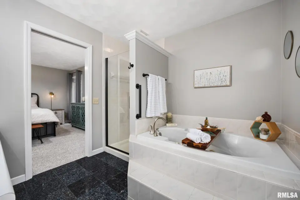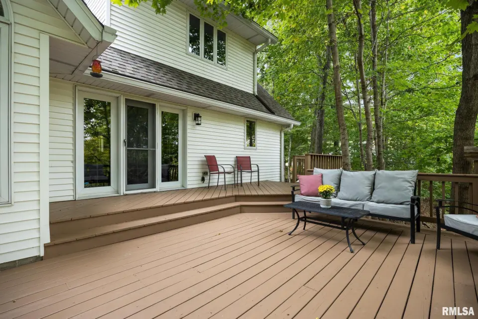 Conveniently located off Rt 24, easy access to the interstate & downtown Peoria/East Peoria, as well as cute shopping experiences on the square in Washington! Once you enter this home, you will be impressed w/ the two story foyer & open staircase that leads into a vaulted great room full of windows so you can take in the wooded natural beauty behind the home. This fabulous room leads to a cozy living room w/ french doors & plenty of windows or go the opposite way & wind up in the dining room that has french doors leading to a large deck, perfect for relaxation or fabulous dinner parties in the warmer months. In the kitchen you will find a great breakfast bar, a granite topped island, white cabinetry & brand new Kitchen Aid appliances, including a great gas range, perfect for whipping up those holiday dinners that are upon us! To round out the main floor, you will find a spacious main floor owners suite w/ a large walk in closet, a nice linen closet & a full bath complete w/ a whirlpool tub for relaxing away the stress of your day, plus heated floors! There is also a newly remodeled main floor laundry w/ brand new washer & dryer, plus deep sink! Upstairs you will find three more generously sized bedrooms & a full bath plus two very large walk in storage closets & a 2nd staircase! The bsmt is awaiting your finishing touches in the rec room!