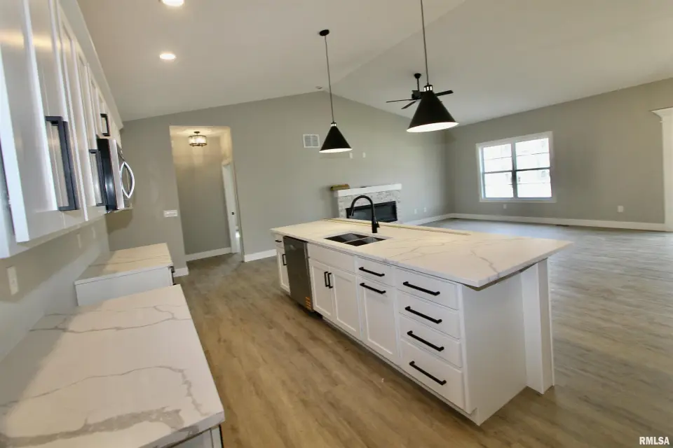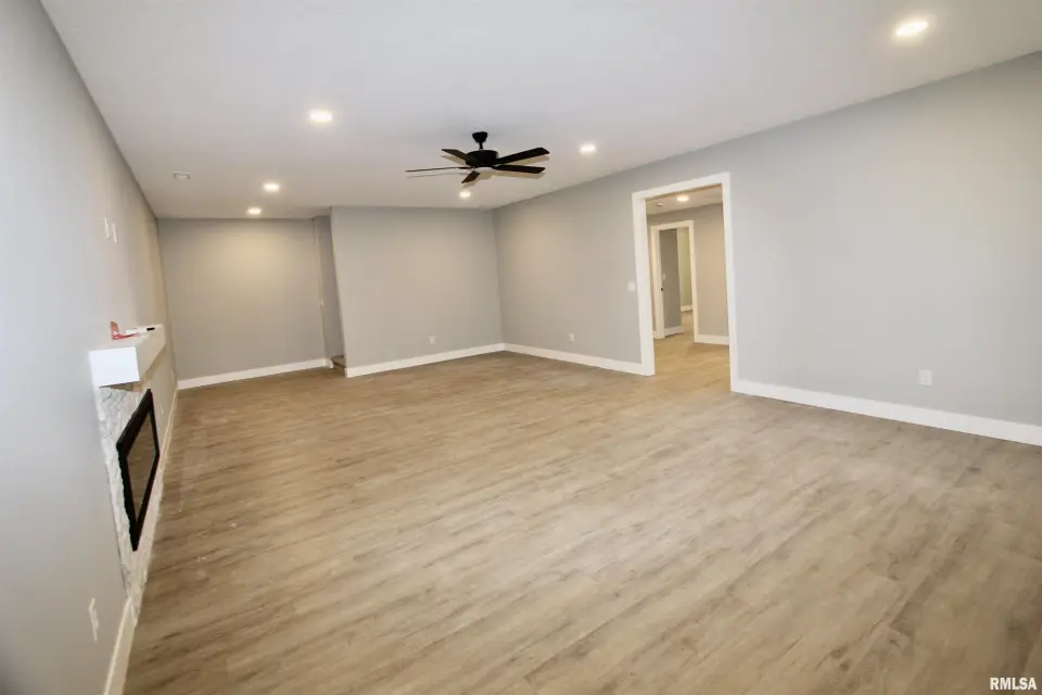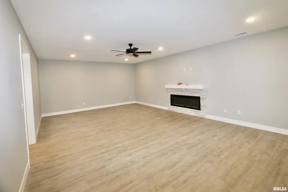 Step inside and you are welcomed by the spacious open floor plan. The kitchen features beautiful white cabinetry, Quartz countertops, and a large island. The kitchen flows beautifully into the combined informal dining area and the great room, featuring a cozy electric fireplace. Step outside from the informal dining onto the covered patio to enjoy the beautiful backyard. Primary suite is an expansive retreat featuring a large walk-in closet and private bathroom that includes a tiled shower and dual vanity. The main floor also features two additional bedrooms, main floor laundry with built-in storage, full bath, and coat & linen closets for ample storage. Retreat to the huge, finished rec room in the basement, perfect for hobbies or extra living space. Additionally, there are two more bedrooms, with one featuring a walk-in closet and shared bathroom. The large three car garage is perfect to store your vehicles and equipment.