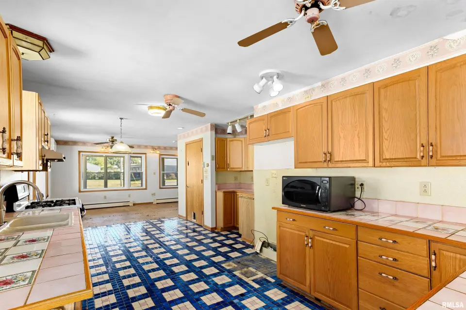 With the right updates, this property has incredible potential. The kitchen is massive, offering LOTS of cabinetry, tons of counter space & a layout that could easily become the showpiece of the home once renovated. Just off the kitchen, a walk-through pantry area that leads to the main-floor primary bedroom - a unique space that could be reimagined as an oversized pantry or converted into a convenient main-floor laundry room. The primary suite already includes a full bath & the home’s generous living room provides a great foundation for comfortable everyday living. A charming 3-season front porch spans the entire front of the home, offering extra living space & a great spot to enjoy morning coffee. Major updates completed: fiber internet, 4 brand new mini-split units providing both heat and A/C, newer double-hung windows throughout, shingles/chimney replaced in 2015 and updated 200A breaker box. With a thoughtful renovation, this home could make an excellent flip, a rewarding personal project or a solid long-term rental. Conveniently located just 3 blocks from Metamora Township High School, this property offers great bones, great space and really great potential.
