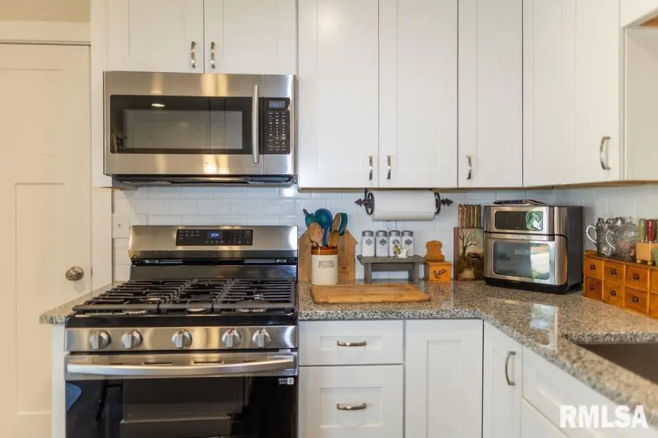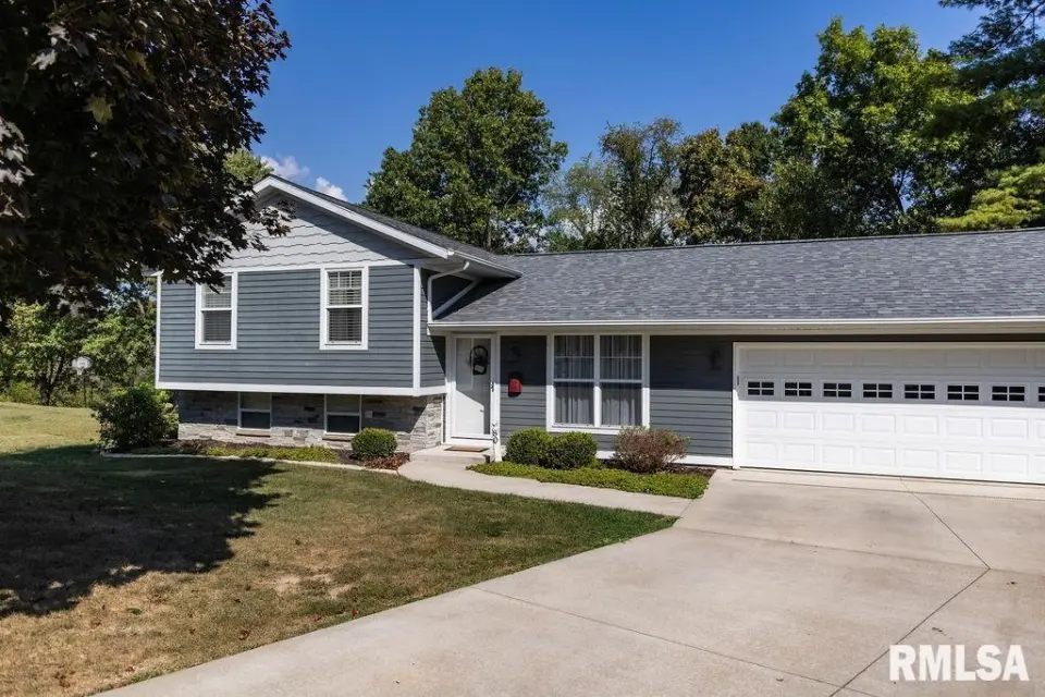 The lower level offers a spacious living room with sliding door to patio, cozy fireplace, bonus room, half bath, and laundry area. Upstairs, the modern kitchen features stainless steel appliances, solid-surface countertops, updated flooring and lighting. The primary suite includes a tiled shower, and the main bath is fully remodeled. Newer HVAC, plumbing, electrical, concrete driveway, and gutter guards. Stylish, functional, and move-in ready—plenty of space on two surveyed lots for privacy and outdoor enjoyment.