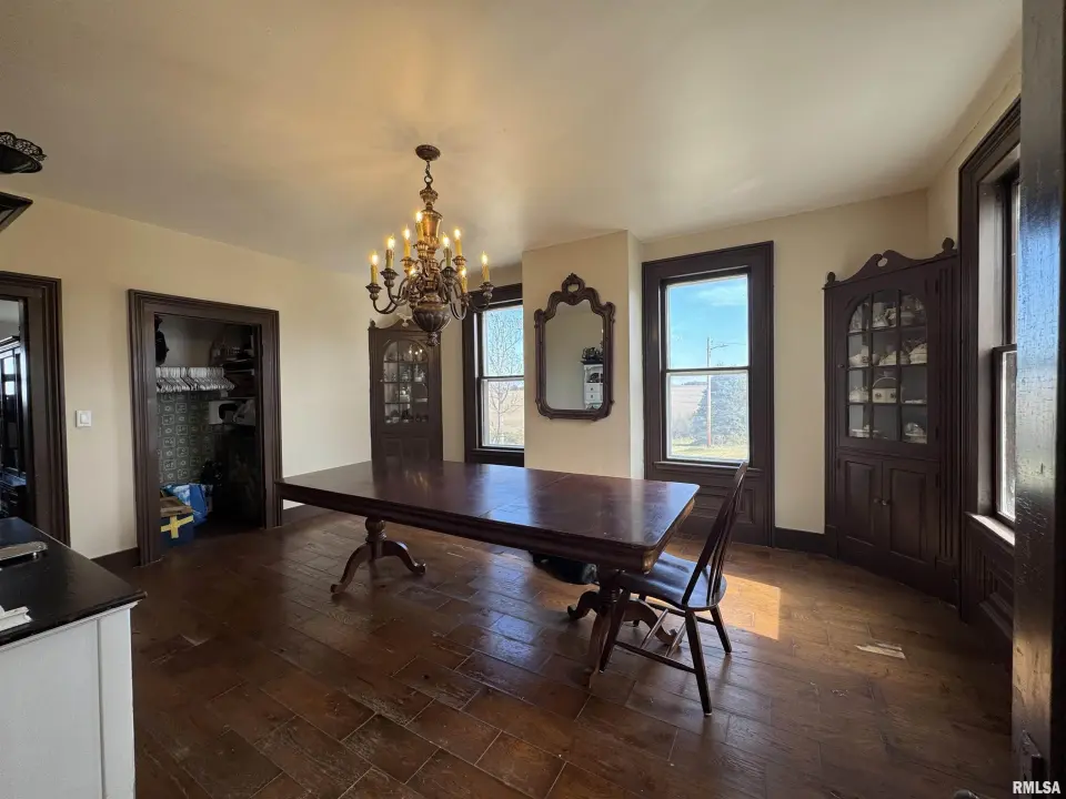 The home features elegant chandeliers, detailed window frames, a beautiful staircase, and plenty of natural light. Inside, both bedrooms include walk-in closets, and you’ll find remodeled bathrooms, a fully functional kitchen ready for your personal updates, and an office that can be converted into another bedroom. The original flooring is in good condition and exposed upstairs, with more preserved under the paneling on the main floor. Recent updates include fully new electricity, plumbing, and gas lines, along with a new gas furnace, water heater, water tank, water pump, and water filter. The home runs on a shallow well and has a full basement with indoor and outdoor access. Outside, there’s a two-car garage with its own furnace and electricity panel, plus an attached workshop with space for another vehicle. The property also features two light posts that illuminate the yard at night. Some furniture will stay and be sold with the home, as the sellers are moving out of state. Located just 15 minutes from Abingdon and within 30 minutes of Galesburg, Macomb, and Monmouth—with Peoria only an hour away—this property offers the best of quiet country living with convenient access to nearby towns. Measurements are approximate and no guaranty.