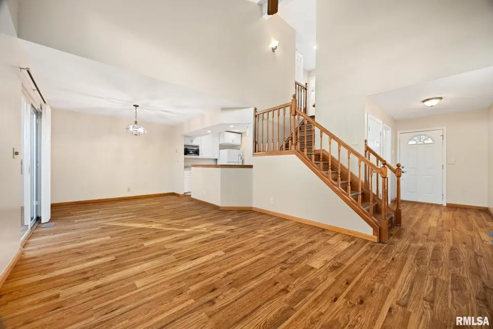 The main floor features a spacious two-story living room with soaring high windows that fill the space with natural light and a large informal dining area with access to the back patio. The home was extensively remodeled in 2024, including the kitchen, bathrooms, laundry and furnace rooms – all with new cabinets, doors, faucets, fixtures, tub, toilets, sinks and plumbing. A new first floor half bathroom next to the large entry closet are an added bonus. New flooring runs throughout the home, adding a fresh modern feel. All appliances stay including a new washer, dryer, dishwasher and microwave. Upstairs, the master suite offers a walk-in closet, while two additional bedrooms share the full bath. This well-maintained home combines comfort, convenience, and style - all in a fantastic location near shopping, dining and parks. Move-in ready and waiting for you!