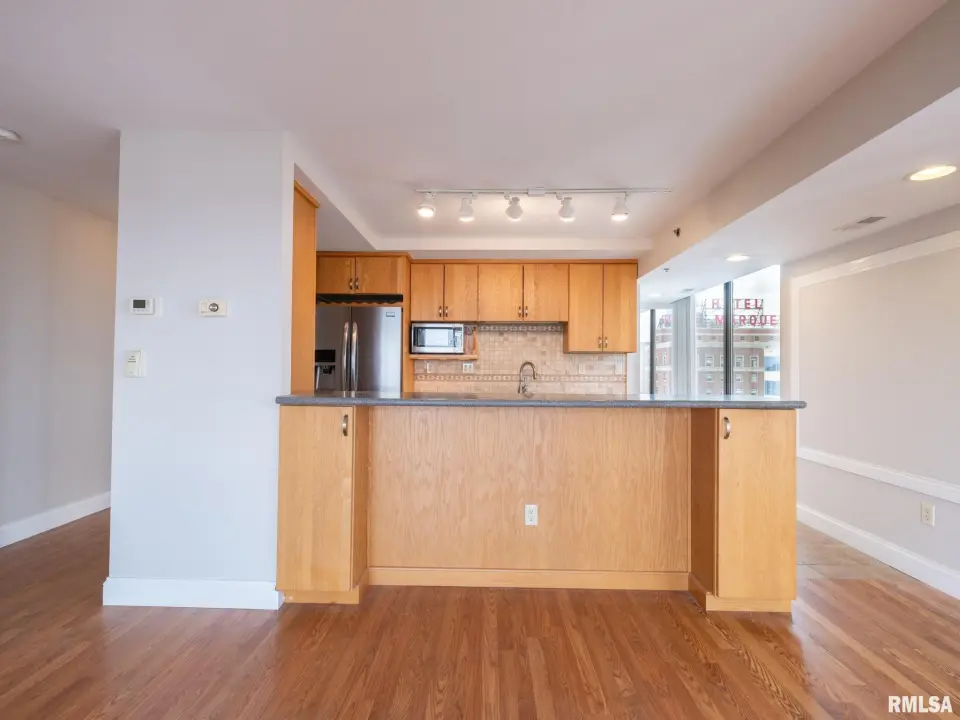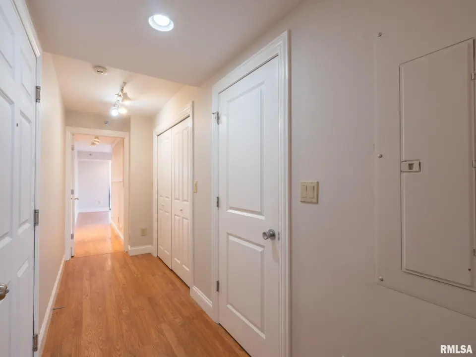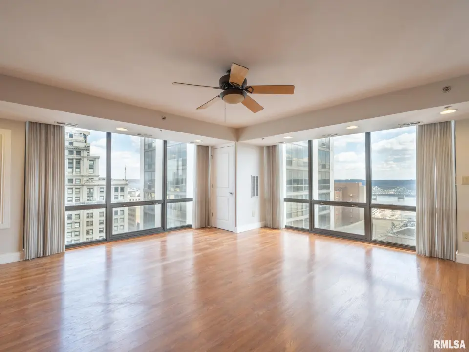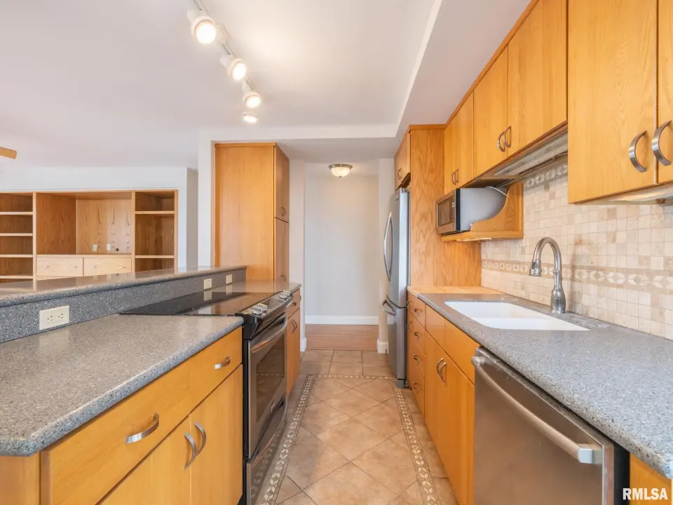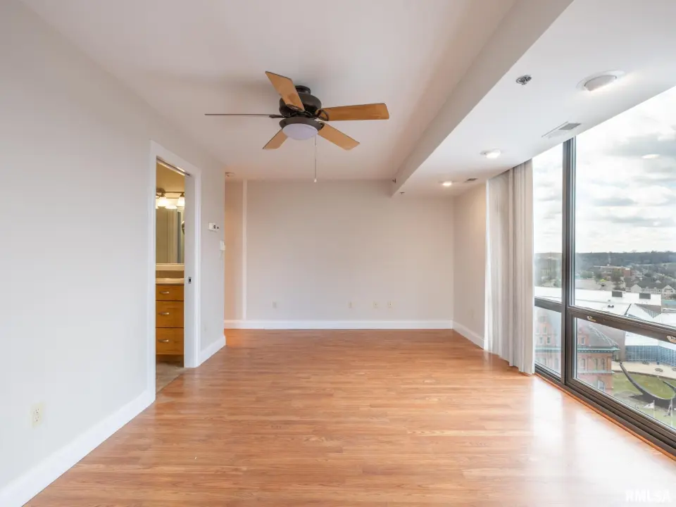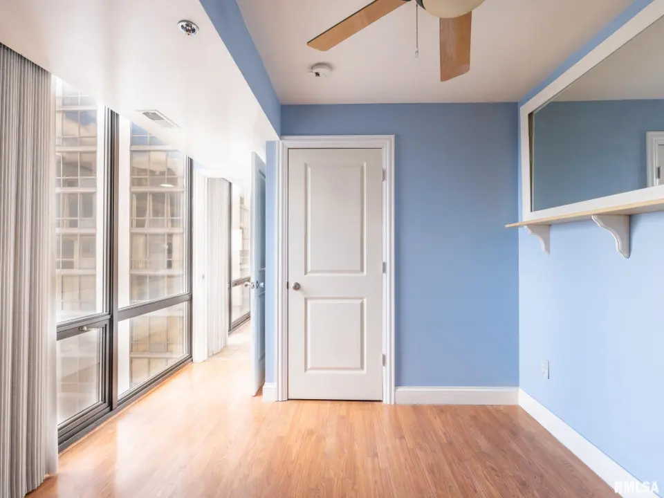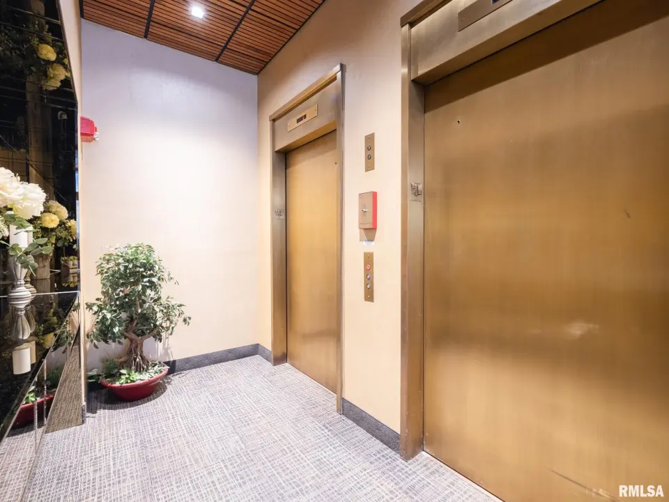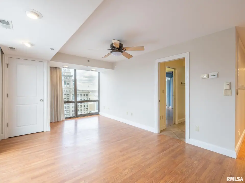 Don't miss this incredible opportunity to own a 16th-floor condo in the heart of downtown Peoria! The Living room has built-in multi-purpose bookshelves and recessed lighting, creating a warm and inviting atmosphere. The kitchen boasts updated flooring, stainless steel appliances, and Corian countertops—perfect for both everyday living and entertaining. The primary bedroom includes a spacious walk-in closet with additional shelves for shoes, sweaters, etc. and an attached full bath with a relaxing jetted tub. There is also a second bedroom and full bathroom. In unit washer/dryer. This condo is truly a must-see! Schedule your showing today! All measurements are approx. & not deemed reliable.