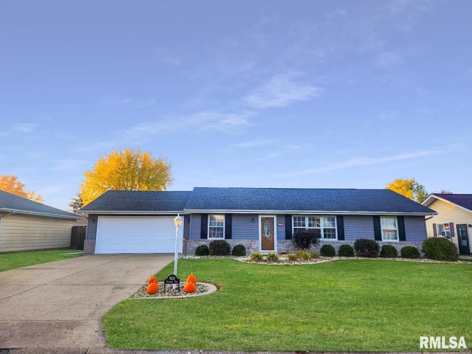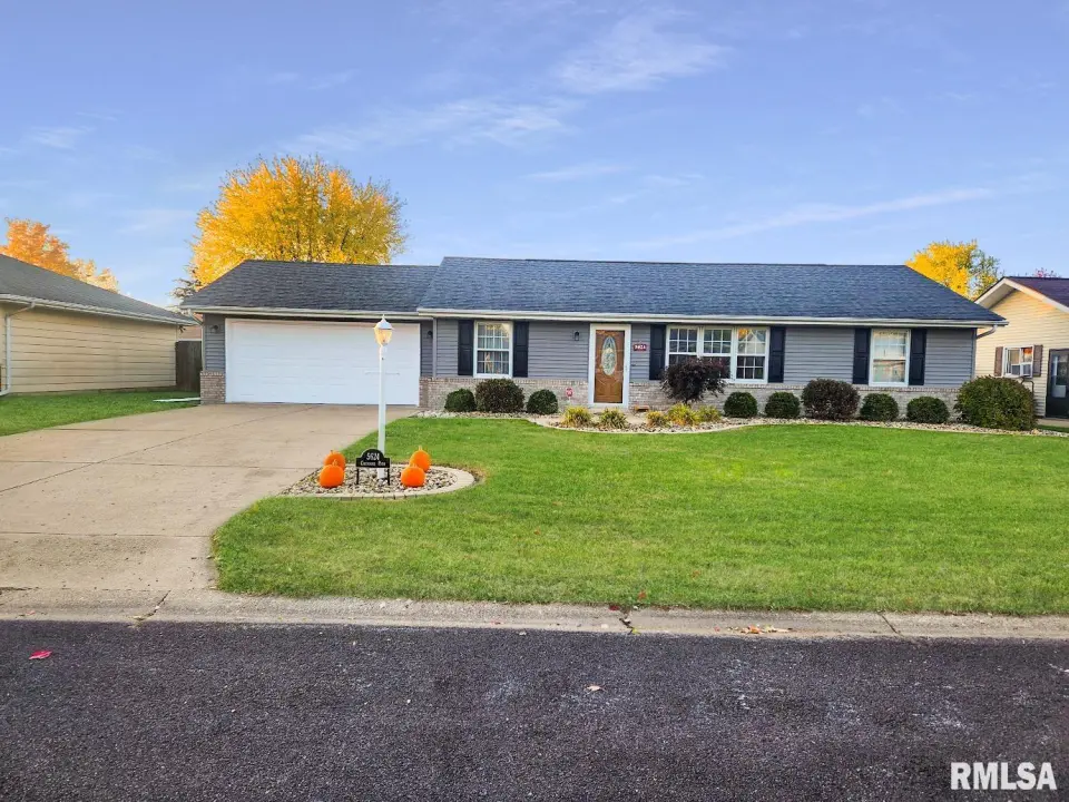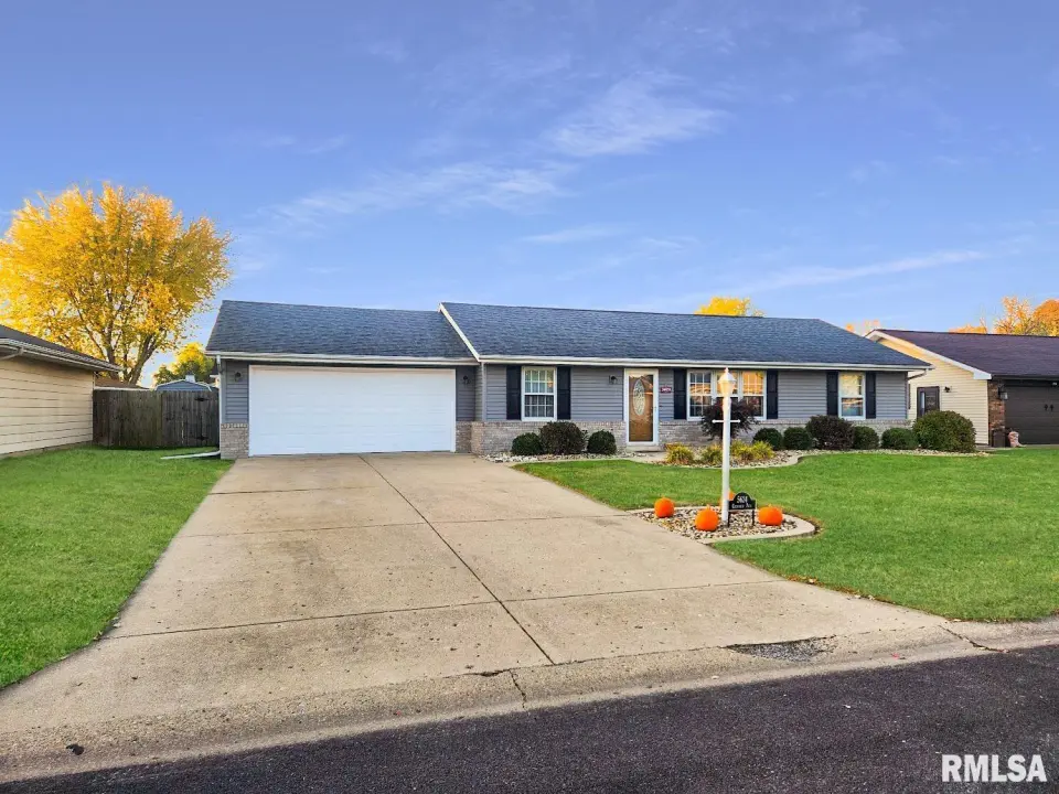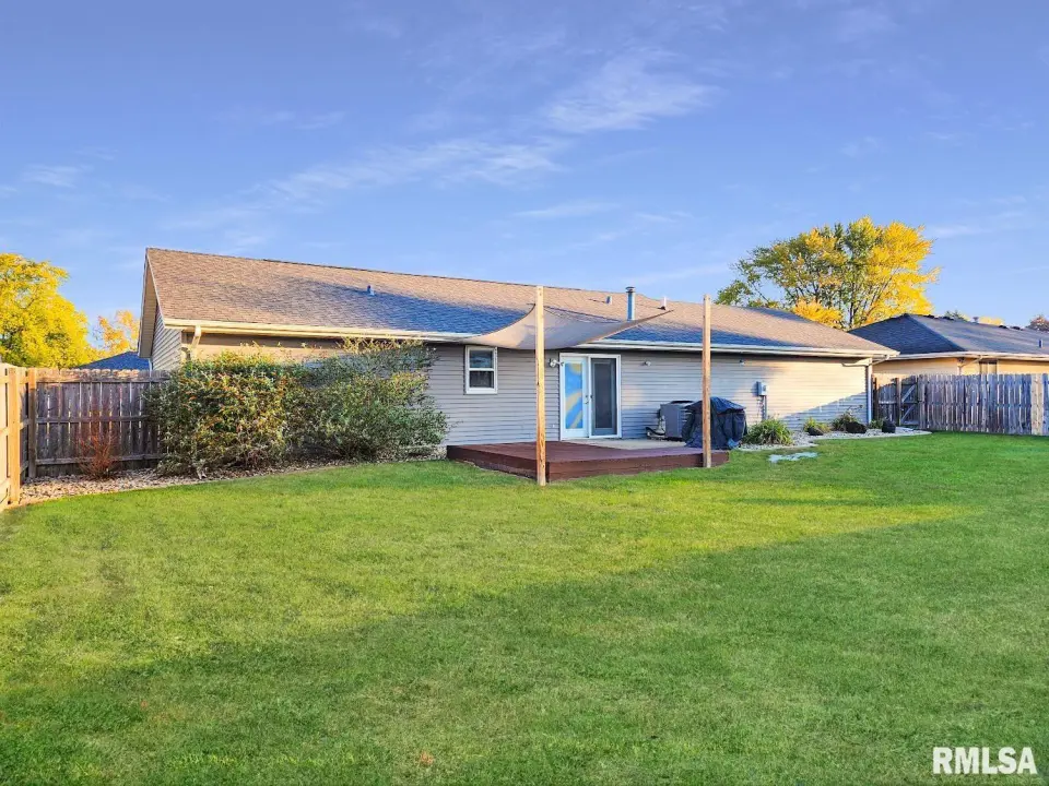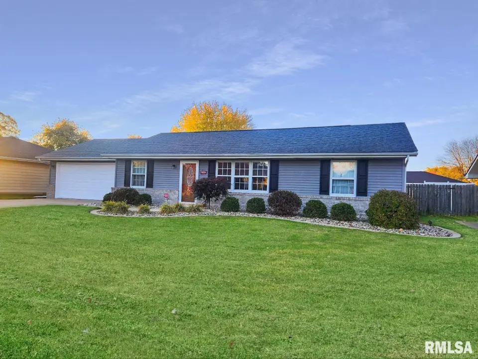 The inviting open-concept floor plan showcases a vaulted ceiling that enhances the spacious feel of the living, dining, and kitchen areas, all beautifully accented with laminate flooring. The split-bedroom layout offers added privacy, featuring a large primary suite with its own vaulted ceiling, a generous walk-in closet, and a full bath. Fresh paint and new carpet in 2025 make this space truly shine. The laundry/utility room is conveniently located just off the garage, providing everyday practicality. Step outside to your fenced, private backyard—perfect for entertaining or unwinding—with both a patio and deck area ready for gatherings or quiet evenings. You’ll appreciate the many updates that make this home move-in ready, including Roof (2017); New siding and shutters (2018); Updated landscaping; New HVAC system (2023); Fresh interior paint (2025); Water heater (2021). Located near interstate access. This home truly combines modern comfort with peace of mind—ready for you to move in and enjoy from day one!