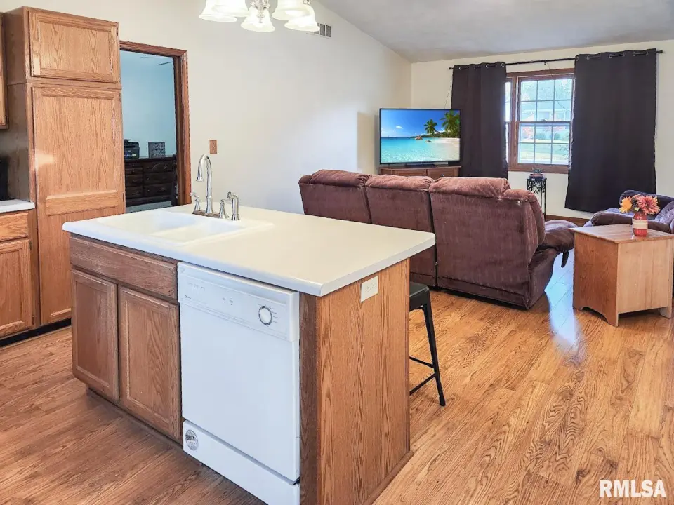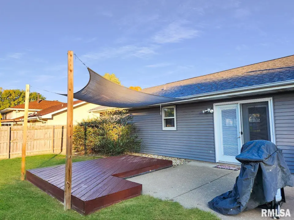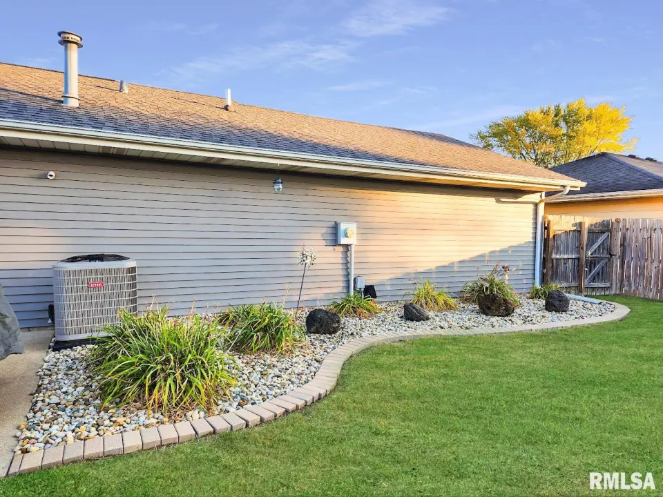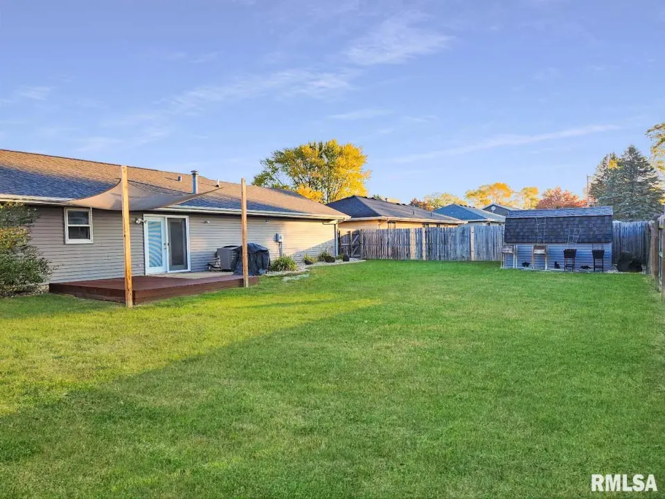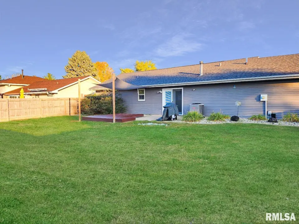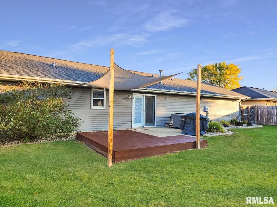 The inviting open-concept floor plan showcases a vaulted ceiling that enhances the spacious feel of the living, dining, and kitchen areas, all beautifully accented with laminate flooring. The split-bedroom layout offers added privacy, featuring a large primary suite with its own vaulted ceiling, a generous walk-in closet, and a full bath. Fresh paint and new carpet in 2025 make this space truly shine. The laundry/utility room is conveniently located just off the garage, providing everyday practicality. Step outside to your fenced, private backyard—perfect for entertaining or unwinding—with both a patio and deck area ready for gatherings or quiet evenings. You’ll appreciate the many updates that make this home move-in ready, including Roof (2017); New siding and shutters (2018); Updated landscaping; New HVAC system (2023); Fresh interior paint (2025); Water heater (2021). Located near interstate access. This home truly combines modern comfort with peace of mind—ready for you to move in and enjoy from day one!