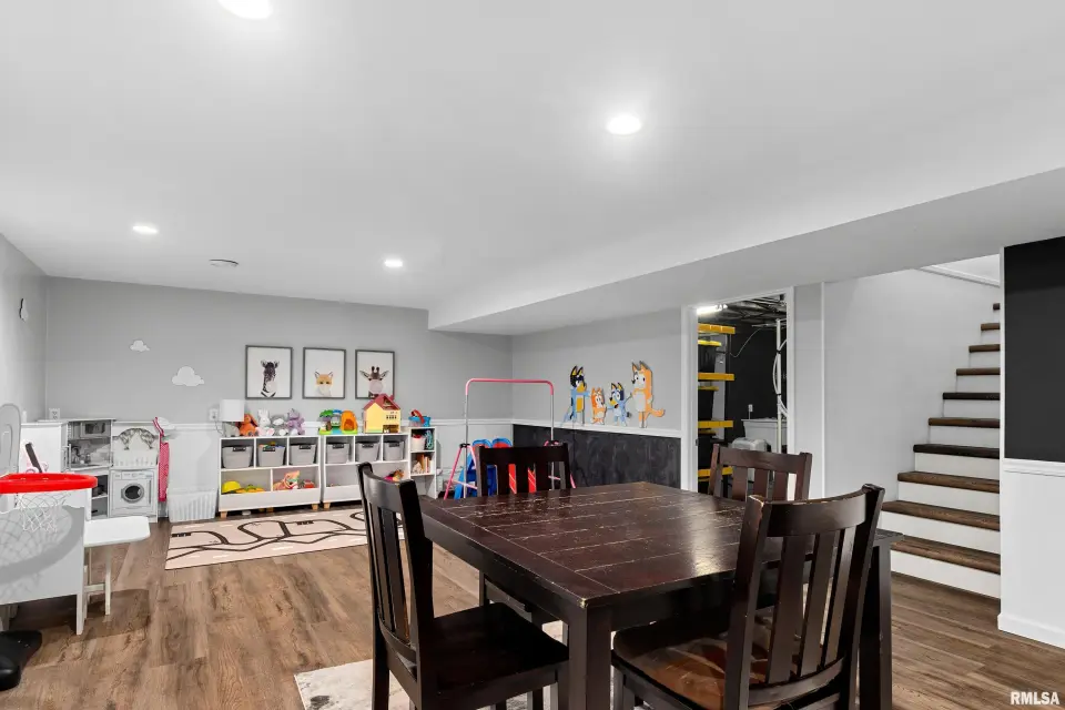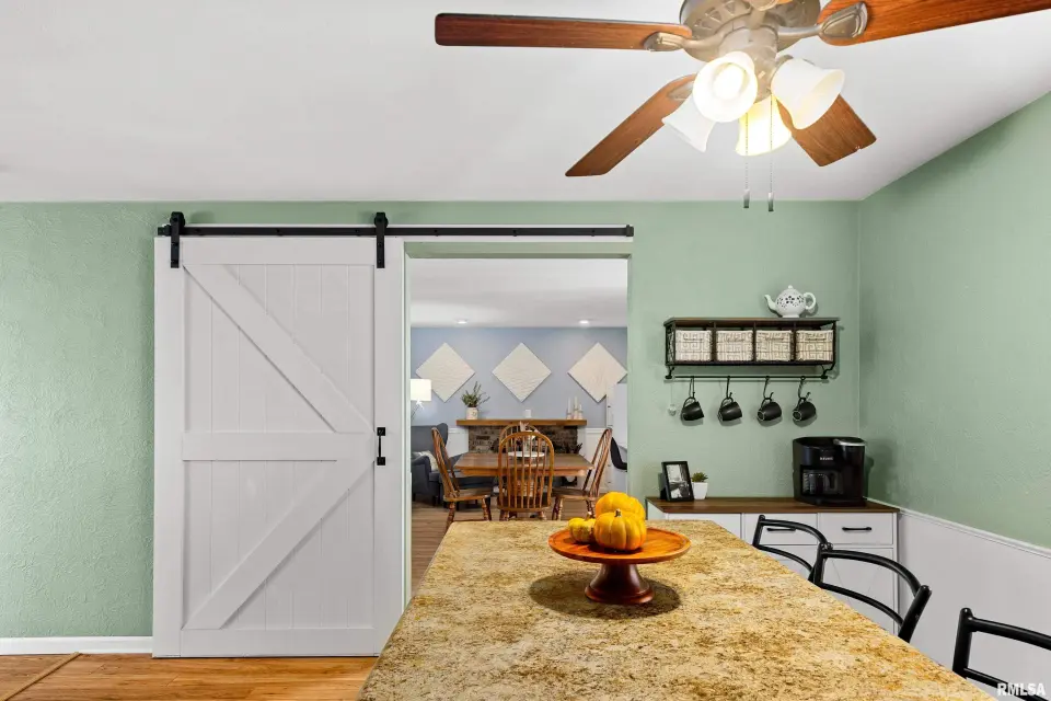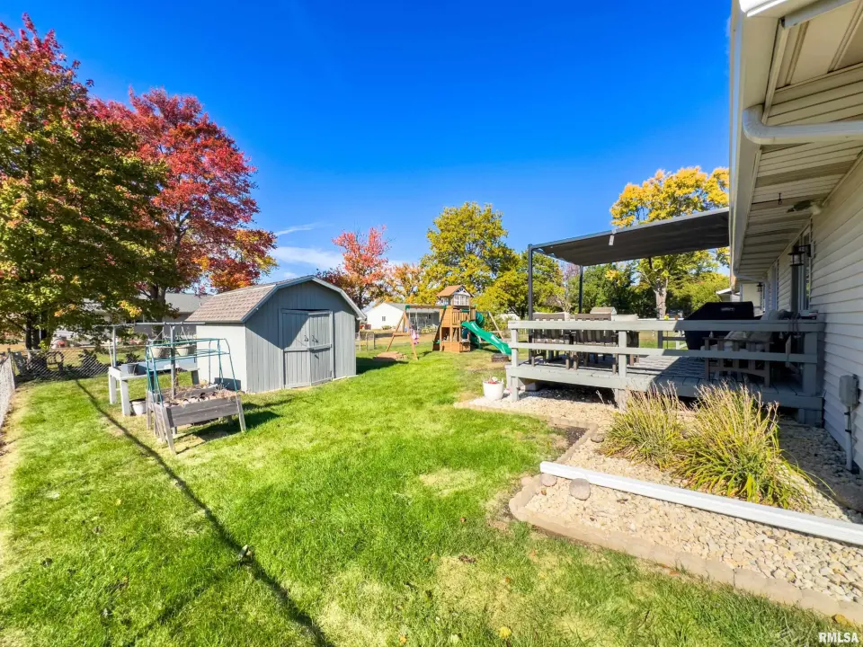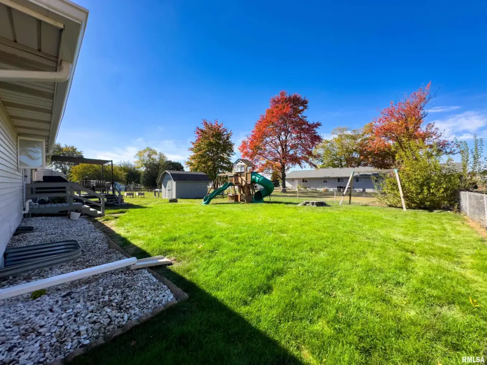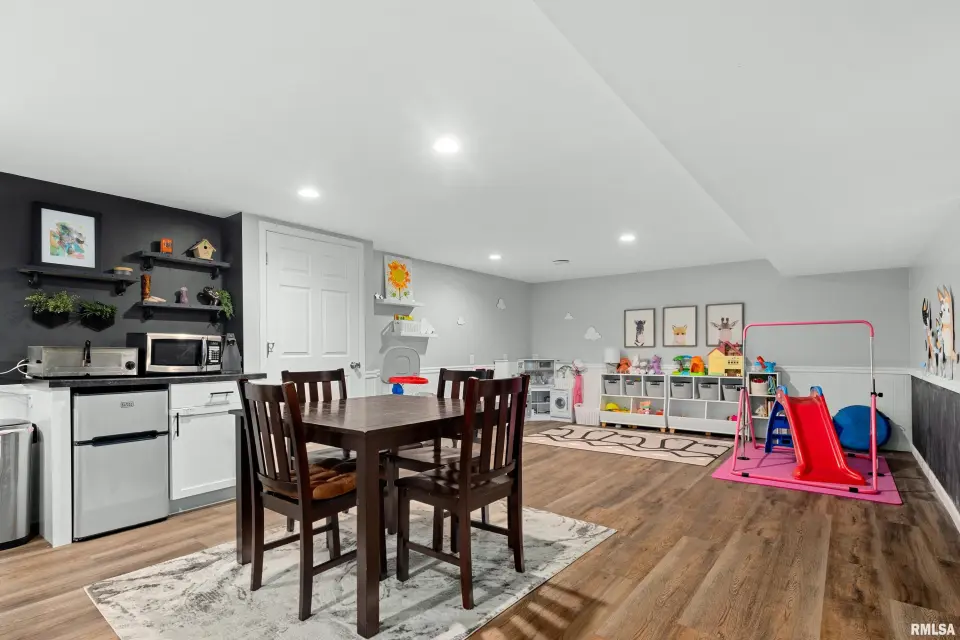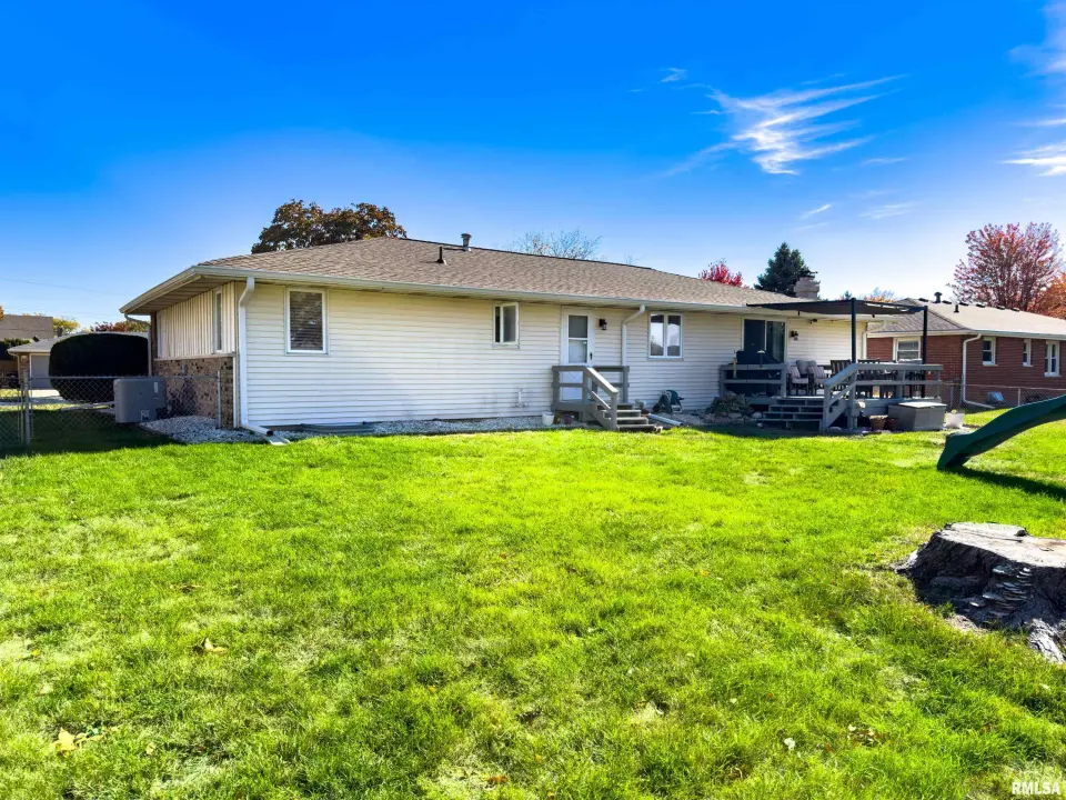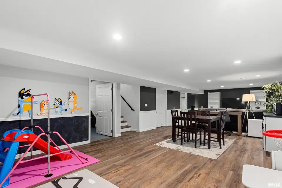 The bright living room features new trim, lighting, and ceiling fan, while the refreshed kitchen shines with a new fridge (2020), dishwasher (2024), oven and microwave (2025), faucet (2025), and a stylish coffee bar with a sliding barn door. Full bathroom has been completely renovated, including new fixtures, flooring, and a modern vanity. Enjoy the versatile completely updated/finished basement with new flooring, lighting, and a cozy mini kitchenette area — perfect for game nights or guests. Outside, relax under the retractable deck cover or let the kids play in the fenced yard with garden and playset. With a new roof (2024), new laundry set (2023), and countless details throughout, this move-in-ready home is the perfect blend of care, comfort, and convenience. Move fast—this Morton gem won’t stay on the market for long!