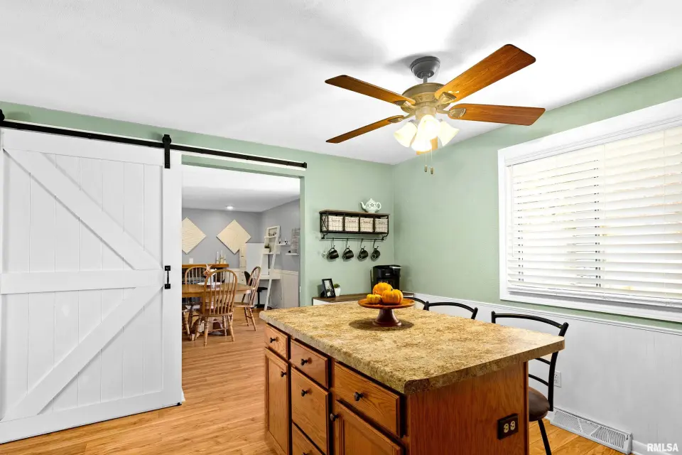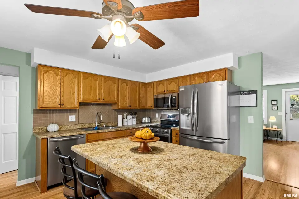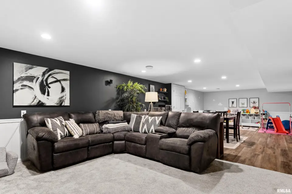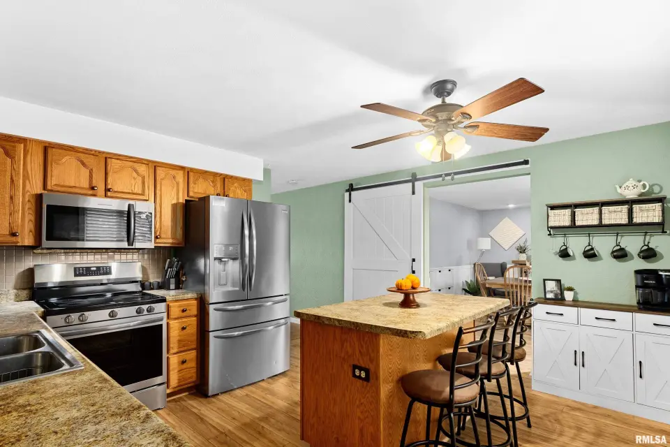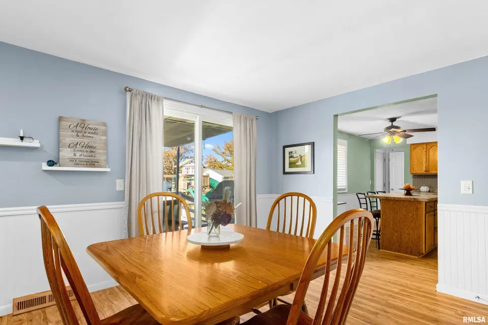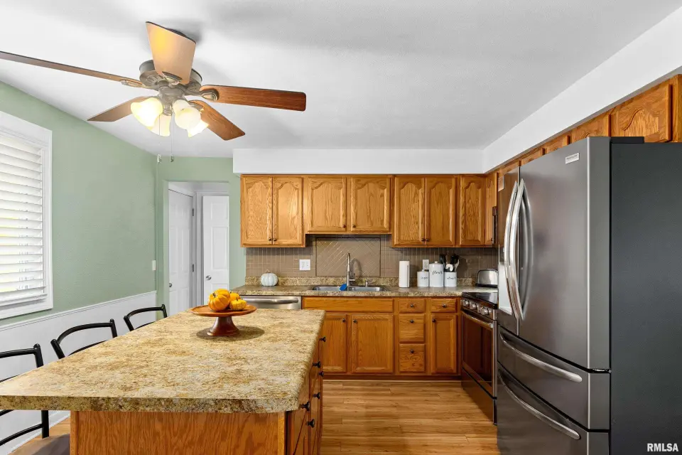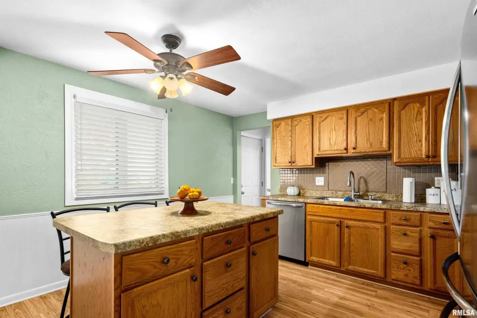 The bright living room features new trim, lighting, and ceiling fan, while the refreshed kitchen shines with a new fridge (2020), dishwasher (2024), oven and microwave (2025), faucet (2025), and a stylish coffee bar with a sliding barn door. Full bathroom has been completely renovated, including new fixtures, flooring, and a modern vanity. Enjoy the versatile completely updated/finished basement with new flooring, lighting, and a cozy mini kitchenette area — perfect for game nights or guests. Outside, relax under the retractable deck cover or let the kids play in the fenced yard with garden and playset. With a new roof (2024), new laundry set (2023), and countless details throughout, this move-in-ready home is the perfect blend of care, comfort, and convenience. Move fast—this Morton gem won’t stay on the market for long!