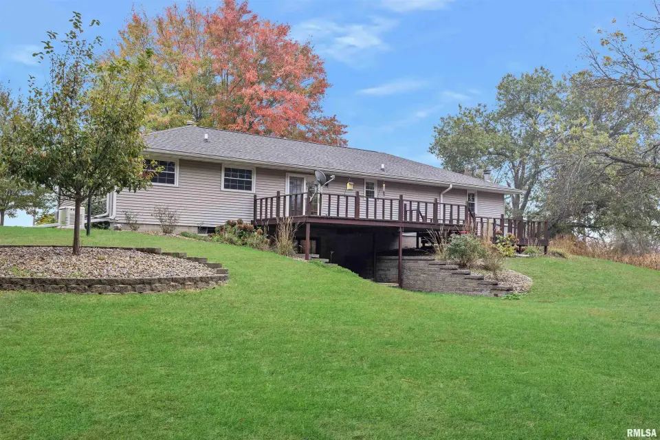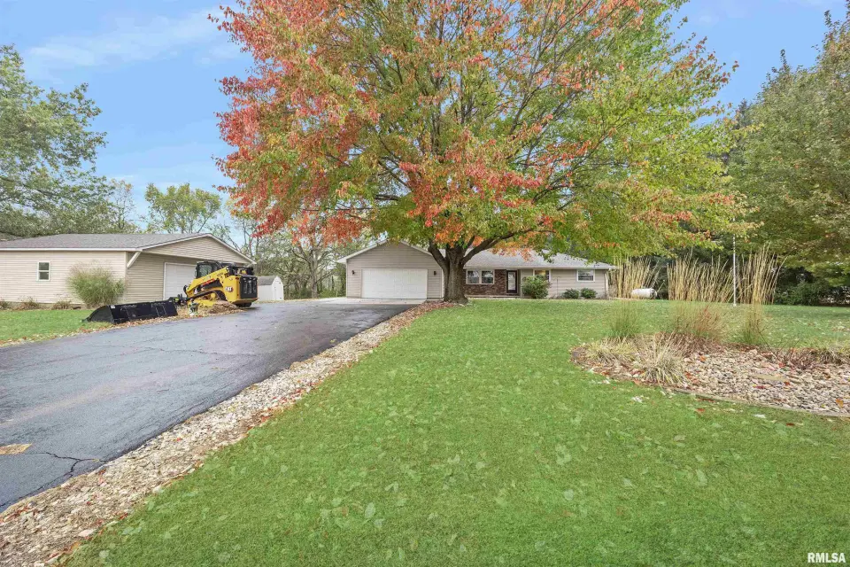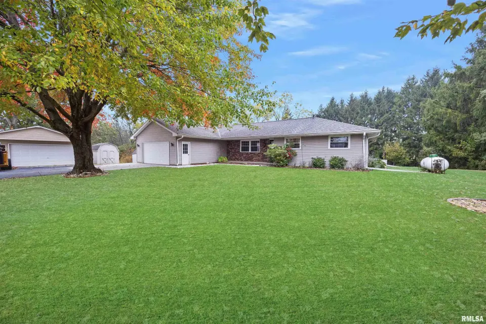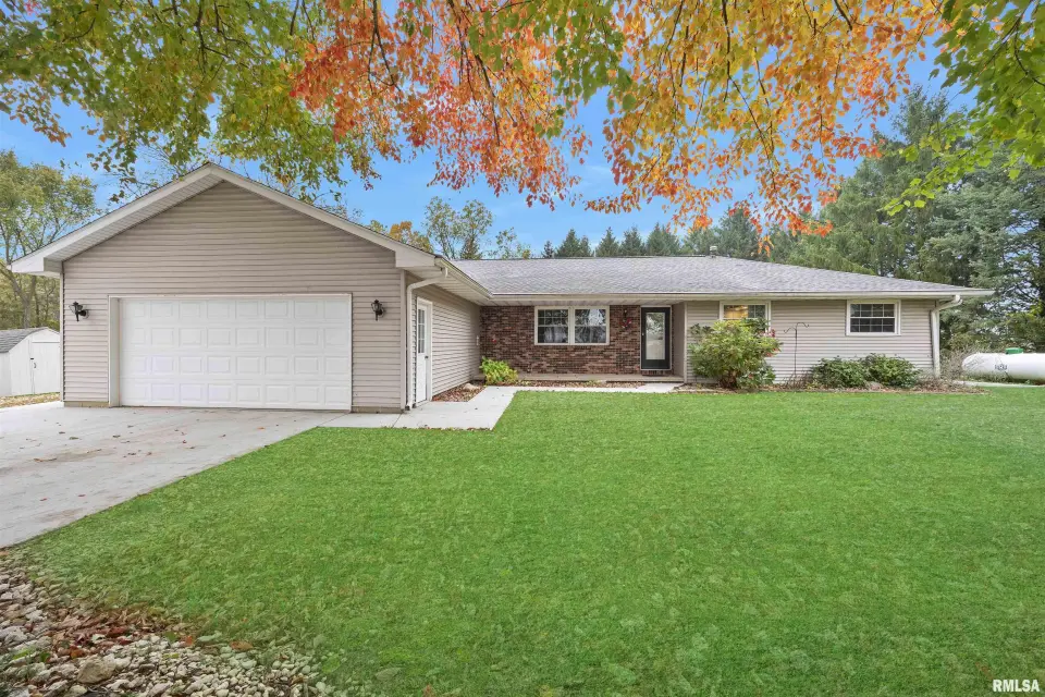 Pride of ownership with this one owner home - custom built ranch style with walk out basement, 2 acres of land, 3 bedrooms, 2 full baths, main floor laundry room, finished full basement that is great for entertaining, cozy family room on main floor with fire place plus a formal style living room on the main floor, kitchen has custom built cabinets with lots of countertop space for the person who loves to cook! Attached 2 stall garage, detached 2 stall garage, 2 single storage sheds, brand new concrete side walks and parking slab, Illini Bluffs School District, many established perennials in this well landscaped yard do come check out this gem in the country!!!