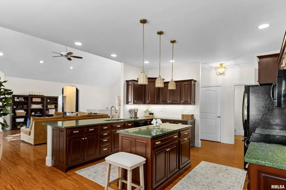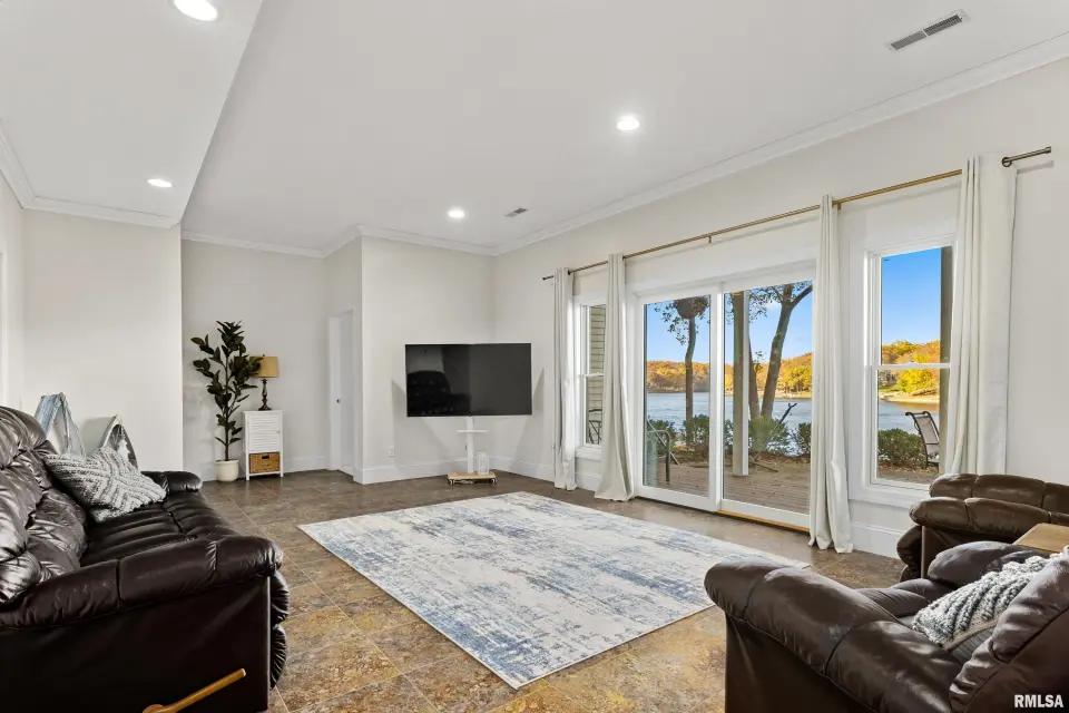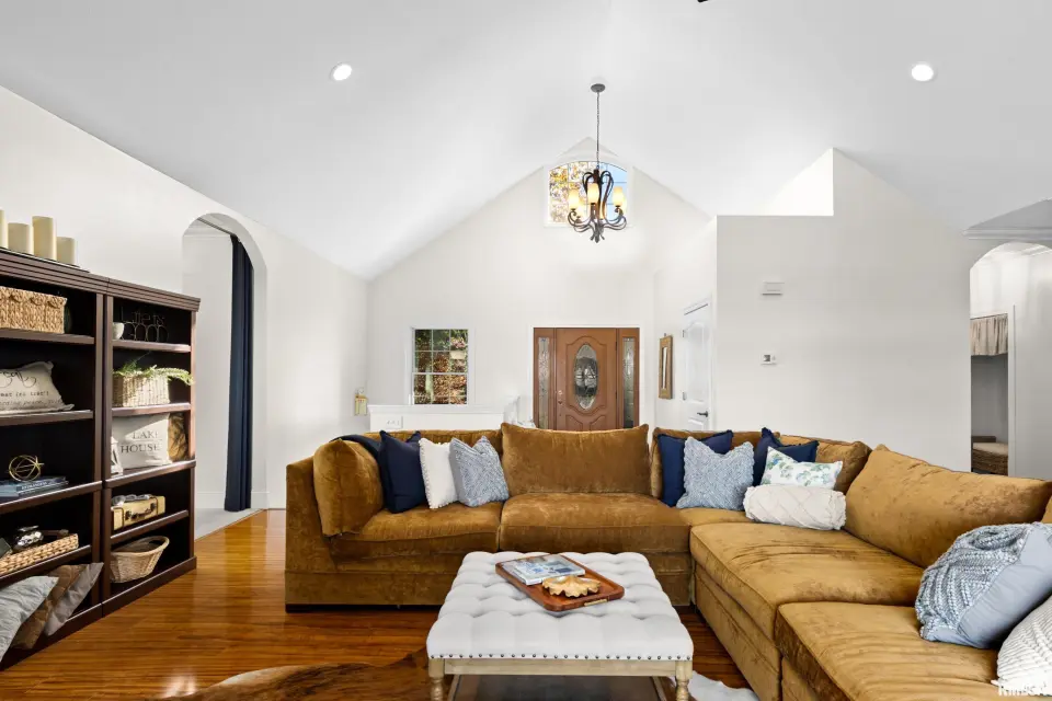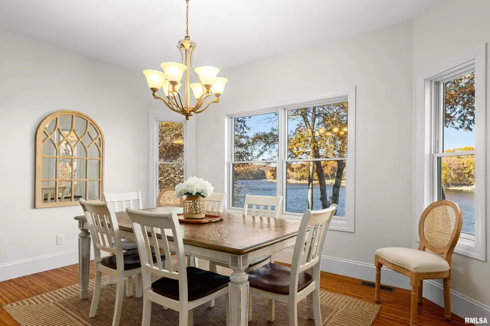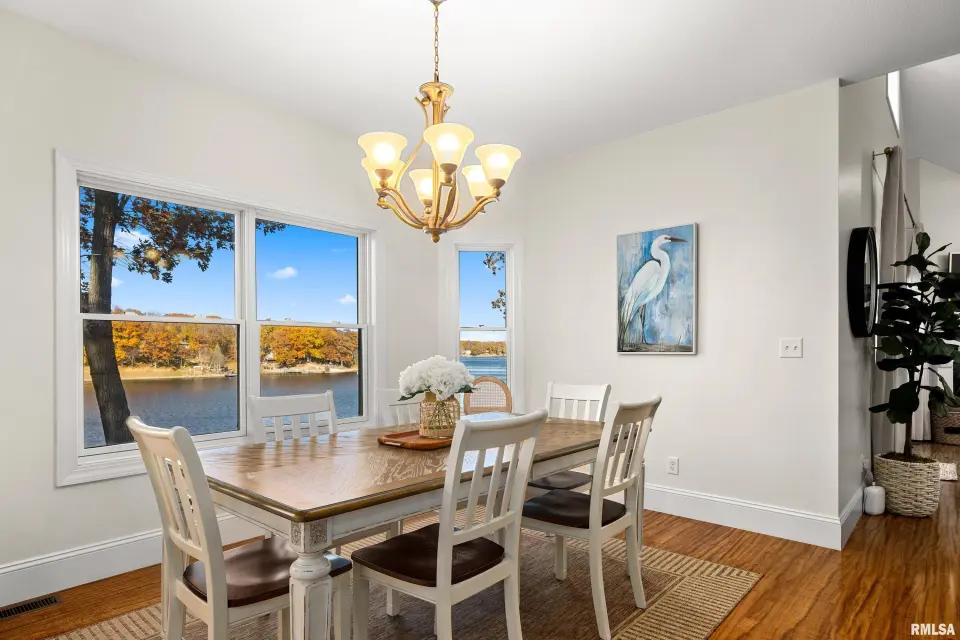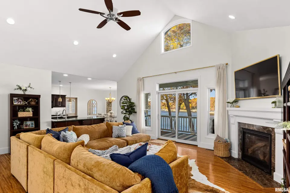 With over 3,200 finished square feet, this move-in-ready retreat was designed for both comfort and connection — to nature, to family, and to the water itself. Large windows and vaulted ceilings fill the open-concept main level with natural light and capture panoramic lake views from nearly every room. The spacious kitchen and dining area flow seamlessly to a screened-in porch and expansive deck overlooking the shoreline, ideal for morning coffee or sunset gatherings. The walkout lower level features a wet bar, family room, and easy access to a gentle sloping backyard and private dock. Enjoy main-floor laundry, a 3-car attached garage plus an additional 20x15 detached garage for lake toys, and countless thoughtful touches throughout. Built in 2006 and meticulously maintained — this is Oak Run lake life at its finest.