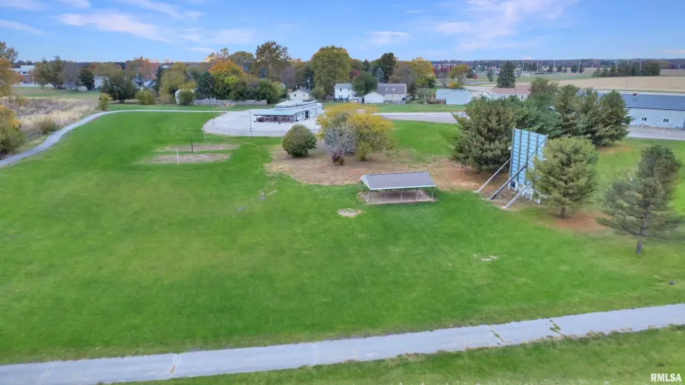 Situated on 5.36 acres, this property features a 2,420 square foot restaurant building with ample on-site parking and multiple outdoor amenities that make it ideal for dining, events, and community gatherings. The restaurant is almost ready, with a significant amount of equipment in place including a fire suppression hood, coolers, walk-in coolers, and freezers, allowing for a seamless transition for your next culinary or hospitality concept. The property also features a covered beer garden that provides additional seating and a great space for outdoor dining and entertainment. Beyond the restaurant, the expansive acreage offers incredible recreational and entertainment potential. The grounds include a movie theater screen and projector house, a covered pavilion, and two sand volleyball pits, making it a perfect setting for seasonal events, outdoor dining, or private functions. A small access road circles the property, providing easy flow for vehicles and guests.