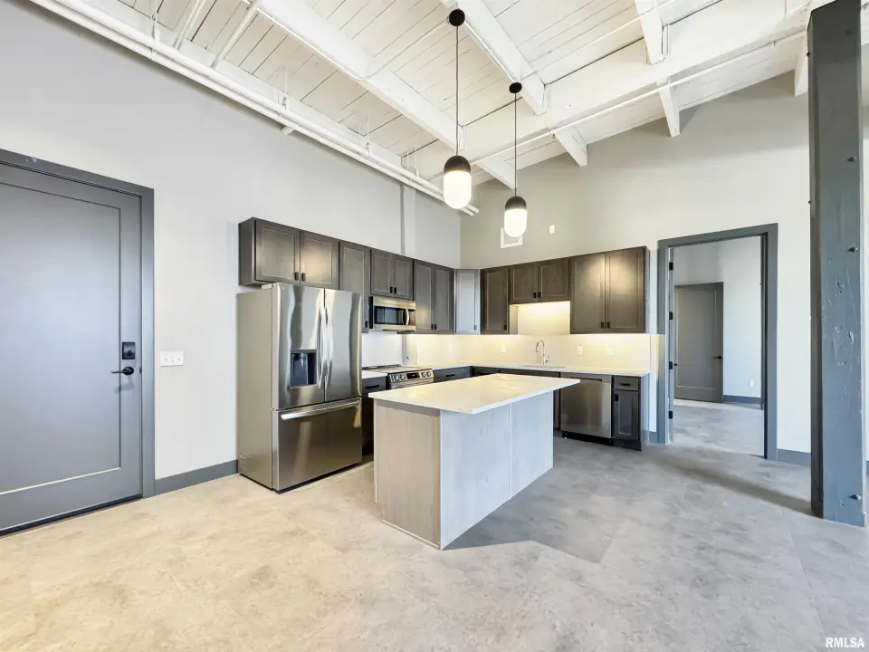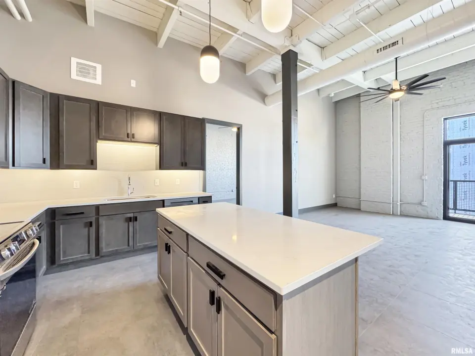 This stunning 2-bedroom, 2-bathroom flat is located inside the iconic Chic Manufacturing building, a landmark structure built in 1917 and meticulously reimagined as the exclusive "Chic Flats." Enjoy unparalleled walkability to all the district has to offer. Stroll to dinner at restaurants, grab a craft cocktail at a local distillery like BLACK BAND, or meet friends at a nearby brewery. Step inside and be captivated by the seamless blend of historic character and modern sophistication. Soaring ceilings and massive custom windows flood the open-concept living space with natural light, highlighting the beautiful flooring that flows throughout. The gourmet kitchen features sleek cabinetry, quartz countertops, a premium stainless-steel appliance package, and a large island perfect for casual dining. Each detail has been thoughtfully curated with high-end finishes. Both spacious bedrooms offer a peaceful retreat. The primary suite is a true oasis, boasting a large walk-in closet and a spa-like en-suite bathroom. The second bedroom is equally impressive, with ample closet space and easy access to the equally well-appointed second full bathroom. This residence honors its past as the home of the "Princess Peggy" garment line, preserving the building's industrial soul while offering secure entry, an elevator, and covered parking. Don't miss this rare opportunity to own a piece of Peoria's history.