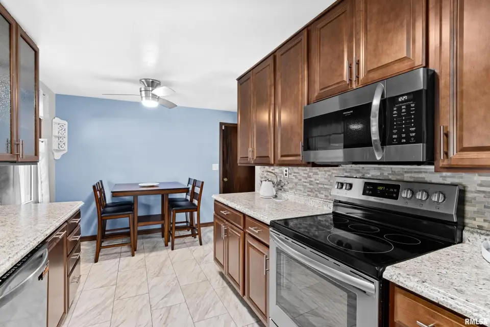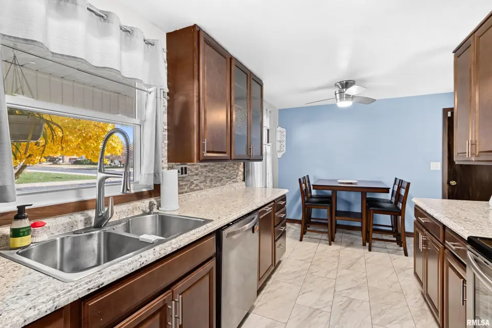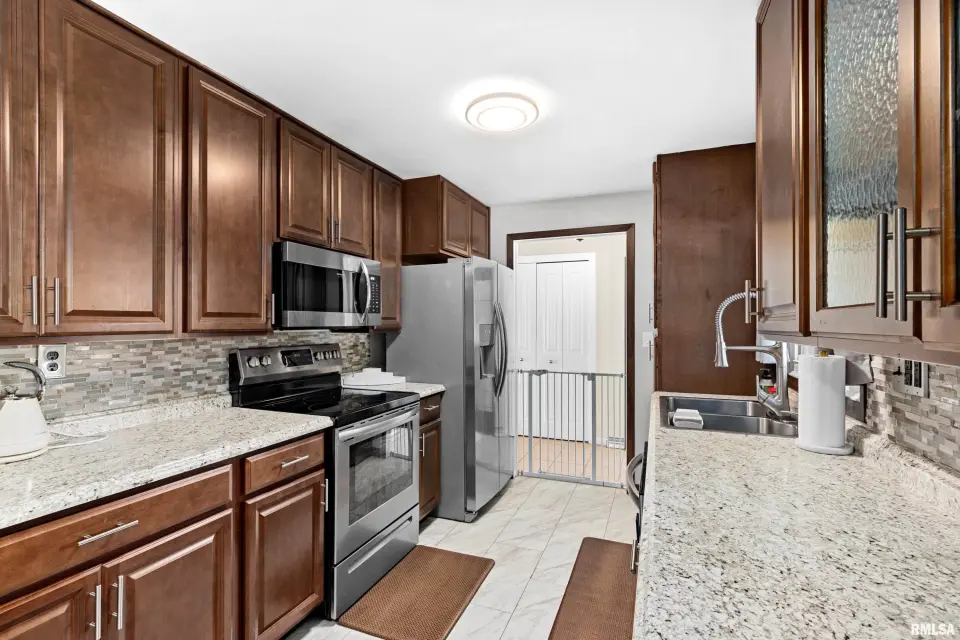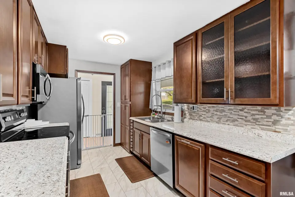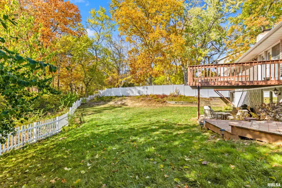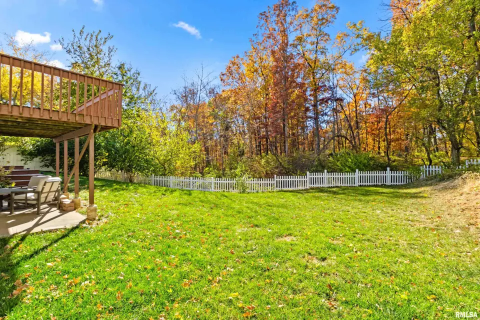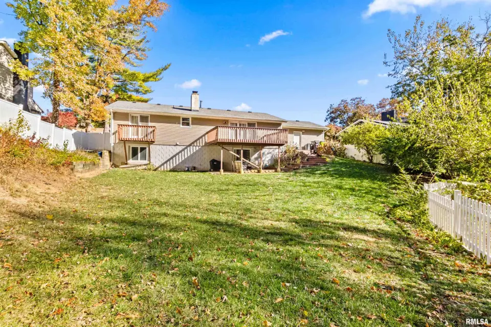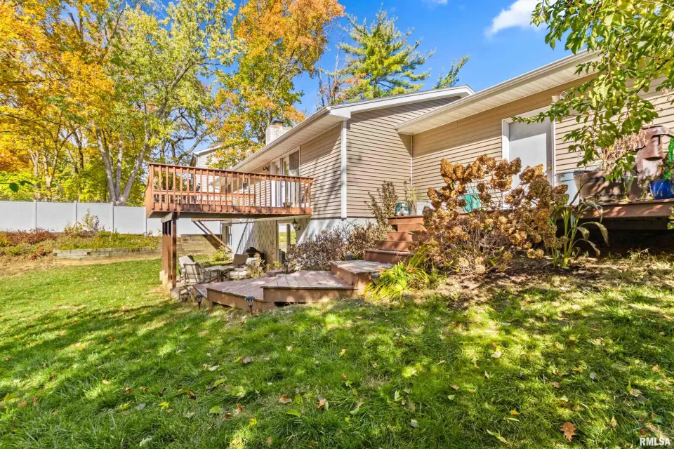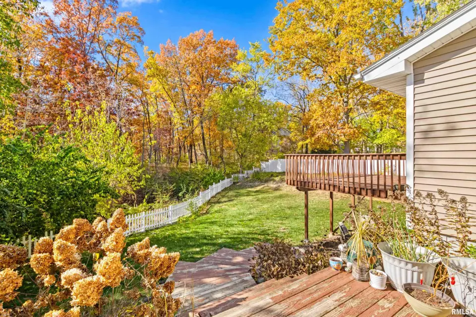 Step inside to a spacious living room that flows into a gorgeous kitchen featuring stainless steel appliances and modern finishes. The primary suite includes a private half bath and charming balcony with French doors overlooking the serene, wooded backyard. The finished basement is perfect for relaxing or entertaining, with a large family room complete with a fireplace, a crafting or office space, and new LVP flooring. Enjoy outdoor living at its best from the large deck or the covered patio accessible through the walkout basement. The fenced backyard provides plenty of privacy and room to play or garden. Recent updates include newer windows, siding, furnace, and A/C, along with a new tankless water heater and water softener. For added peace of mind, the home also features a radon system and an active termite bait system. This home is beautifully maintained, move-in ready, and nestled on a gorgeous wooded extremely private lot — schedule your showing today!