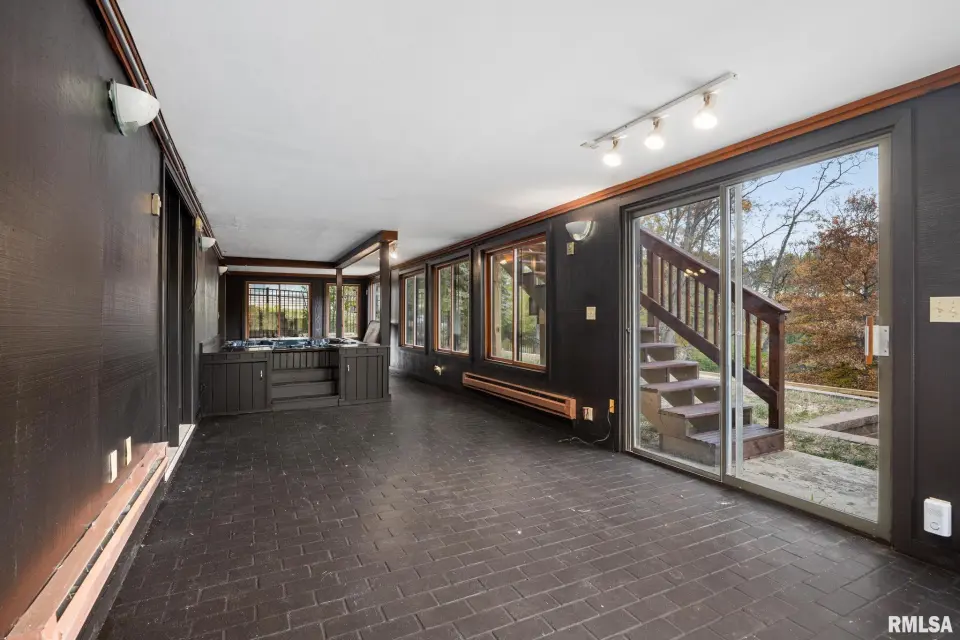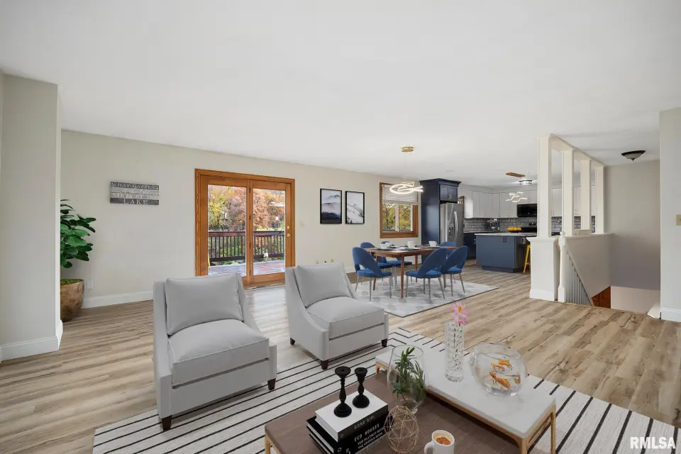 Kitchen comes fully applianced, also 2023 and includes a butler's pantry and an additional pantry. Great room opens with sliders to 12 x 35 deck. Main floor also includes 3 bedrooms with huge primary bedroom opening up to deck and a wall of windows, walk in closet and full bath. Beautifully updated hall bath. Walk out basement features an additional kitchen, laundry, 2 bedrooms (no egress windows) and family room with beautiful wood burning fireplace. A great space for multi-generational living! Also included is a wonderful 4 season room with hot tub. Walk down from deck to a 15 x 30 foot pool, 52" deep surrounded by a lovely deck. Updates include deck and central air 2025. Kitchen, LVP flooring, hall bath, washer/dryer in 2023. Pool, some landscaping and retaining wall 2022. Great fishing and 14 foot Jon boat included! Home warranty provided. An amazing home with loads of outdoor activities at your back door!