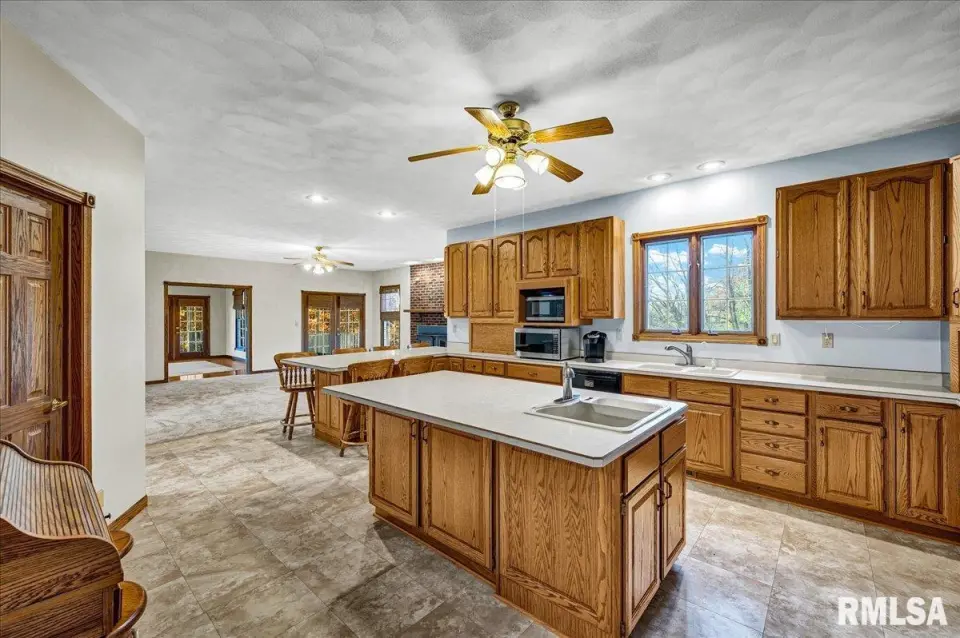 Overlooking a fully stocked pond, the wraparound porch is the perfect place to relax and take in the views. The main level offers both a living room with a wood-burning fireplace with new liner, a family room featuring an electric fireplace, a formal dining area with hardwood floors, and a well-appointed kitchen with an island, breakfast bar, pantry, and all appliances remaining. Convenient main floor laundry adds to the functionality. Upstairs, you’ll find all four bedrooms including a primary suite with a full bath and walk-in closet, a second bedroom with its own walk-in closet as well as 2 additional bedrooms, a bonus room and another full bathroom. The unfinished walk-out basement is a blank canvas, and is plumbed for a future bath and has additional laundry hookups. Additional highlights include plaster walls, an updated roof (2012), two HVAC systems, a newer water heater, a radon system, and a private well with peroxide and softener filtration plus R/O systems for the kitchen and baths, and an attached 2 car garage. The septic system was pumped this spring. Outdoor features include both ponds with docks and aerator, boardwalk, and a 60 X 42 Morton Building with concrete floor, an interior insulated room that has heat, A/C, exhaust, and ample space for workshop or storage needs. Properties like this don't come along very often!