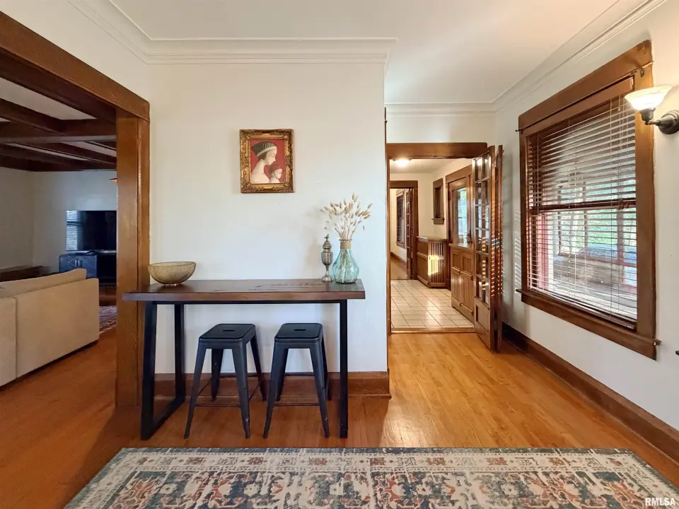 Designed during the height of Peoria’s streetcar-era expansion, the home showcases classic period craftsmanship—from its solid masonry construction and rich millwork to its gracious room proportions and timeless symmetry. With over 3,600 square feet, four bedrooms, and three and a half baths, the home’s thoughtful layout balances formal entertaining spaces with inviting everyday comfort. The large finished basement provides generous additional living area and includes a fascinating Prohibition-era storage room, rumored to have held the original owner’s private stock of liquors—a hidden reminder of the home’s early twentieth-century story. Occupying one of the largest home sites in the Uplands, the property offers a remarkable sense of privacy and open green space rarely found within city limits. Yet it remains within easy reach of downtown Peoria, Bradley University, and the city’s cultural and dining destinations. Few homes capture the enduring character, setting, and spirit that have defined the Uplands since its founding in 1903—a neighborhood created by some of Peoria’s most civic-minded residents to celebrate architecture, community, and park-centered living.