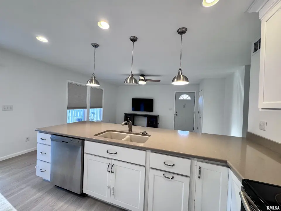 The living room is open to the kitchen and features large windows with views of the backyard, as well as light vinyl plank flooring. The primary bedroom, located on the main level, features a large walk-in closet with a custom-built-in closet system. The main bathroom features a large walk-in shower and a vanity with storage. The laundry room is located on the main level, equipped with a newer washer and dryer, and features built-in cabinetry. The lower level features a large living room, an additional living area or guest bedroom, a half-bath that is ready to accommodate a shower, and a utility room. This townhouse is just six years old. If you are looking for a newer home at an affordable price, take a look at this.