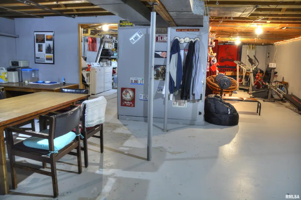The full basement has solid, poured walls. Additional concrete pad for parking extra vehicles. Tanning bed and desk in basement will be included with the sale. Ping-pong table also can be included.