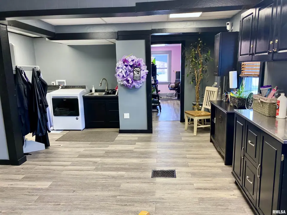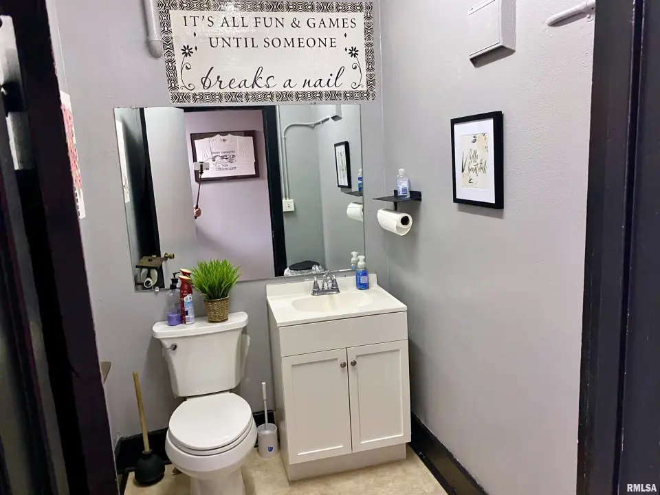 Situated one block from Route 24 and 0.3 miles from Route 150, the main floor is currently rented by a salon ($1,625/mo rent) and upper-level apartment (1 Bedroom/1 Bathroom) also rented ($850/mo rent). There are 4 separate entrances allowing for an additional rental opportunity at the front of the main floor and in the basement (previously a dog grooming business). Parking lot behind the property is part of the parcel. Property is zoned R-4 Special Use; Multi-Family Dwelling/Special Use. Updates include windows, HVAC, basement de-watering, and handicap ramp. Space available for additional chairs & nail station. Finished basement offers additional possibilities. Copies of leases can be provided.