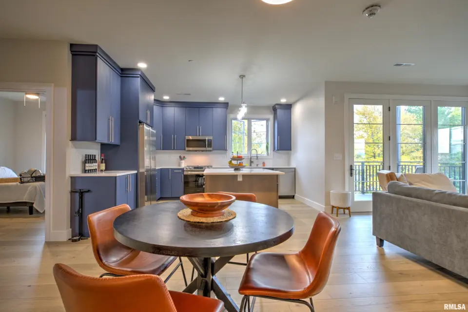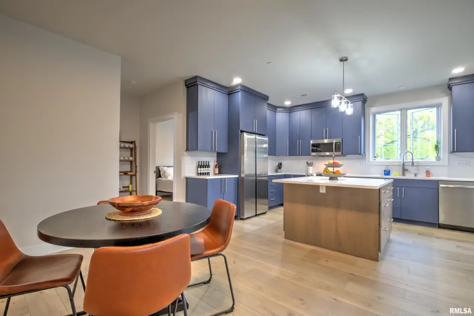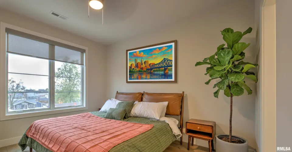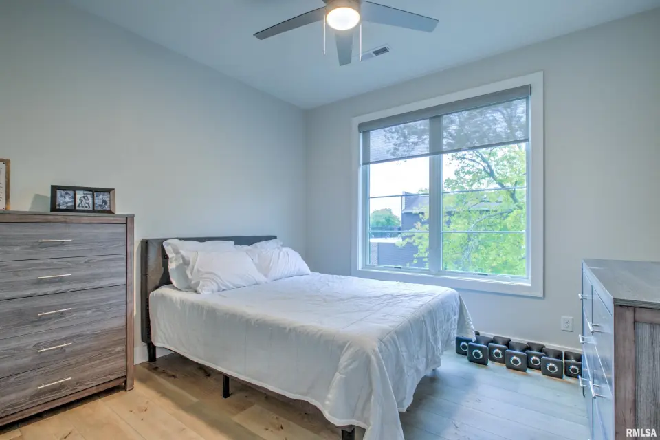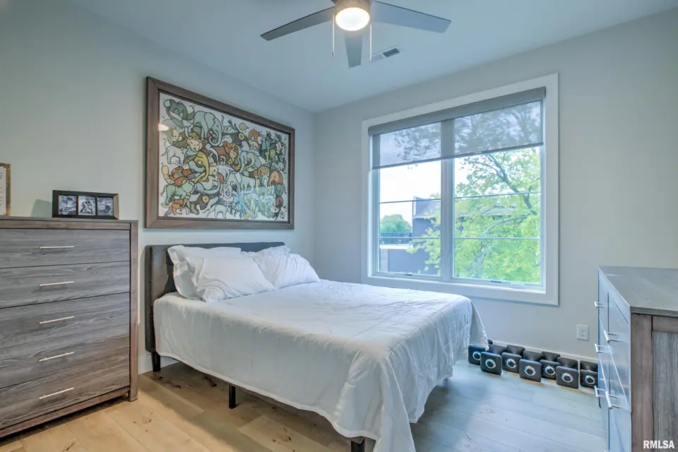 The open kitchen family room boasts custom cabinets, quartz countertops, stainless high end appliances, and beautiful views. The private deck has southeast facing views of the Village and is the perfect place to enjoy a morning coffee or a nightly sunset with a glass of wine. This secure, low maintenance condo also includes one garage space. Whether you are looking to downsize or enjoy the ease of condo living in the heart of one of Peoria’s most walkable and desirable neighborhoods, this home checks all of the boxes!