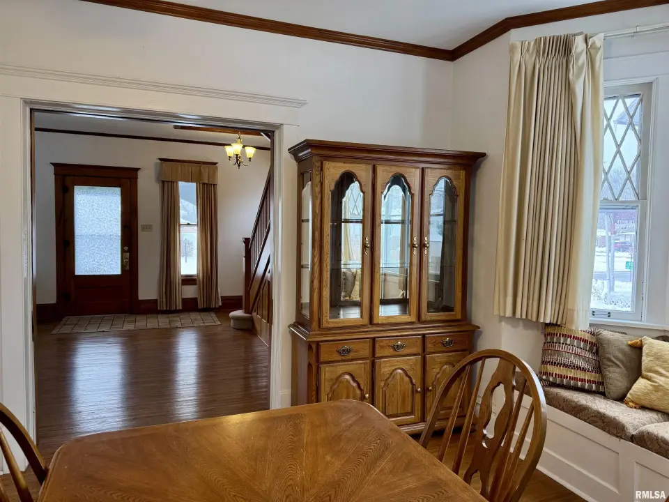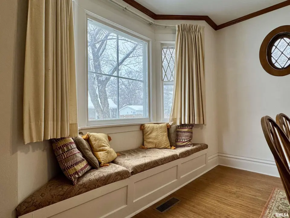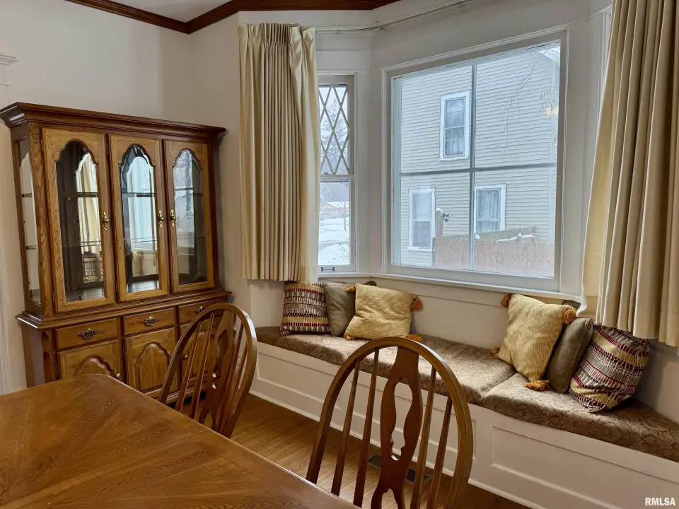 As you enter, you see the beautiful staircase that adorns the living room with hardwood floors and large windows. The dining room has a bow window with a comfy window seat and two original cabin light oval windows. The kitchen is open to the formal dining room and has been updated with quartz counter tops and has a walk up pantry. Three large bedrooms are on the upper level of the home as well as a large updated bath with built in storage. The walk-up attic is a bonus space for lots of storage. The basement is partly finished with two rooms that could be storage, a den or a workout space. The back yard is big enough for a garage and also has a space for a garden which is currently planted in wild flowers.