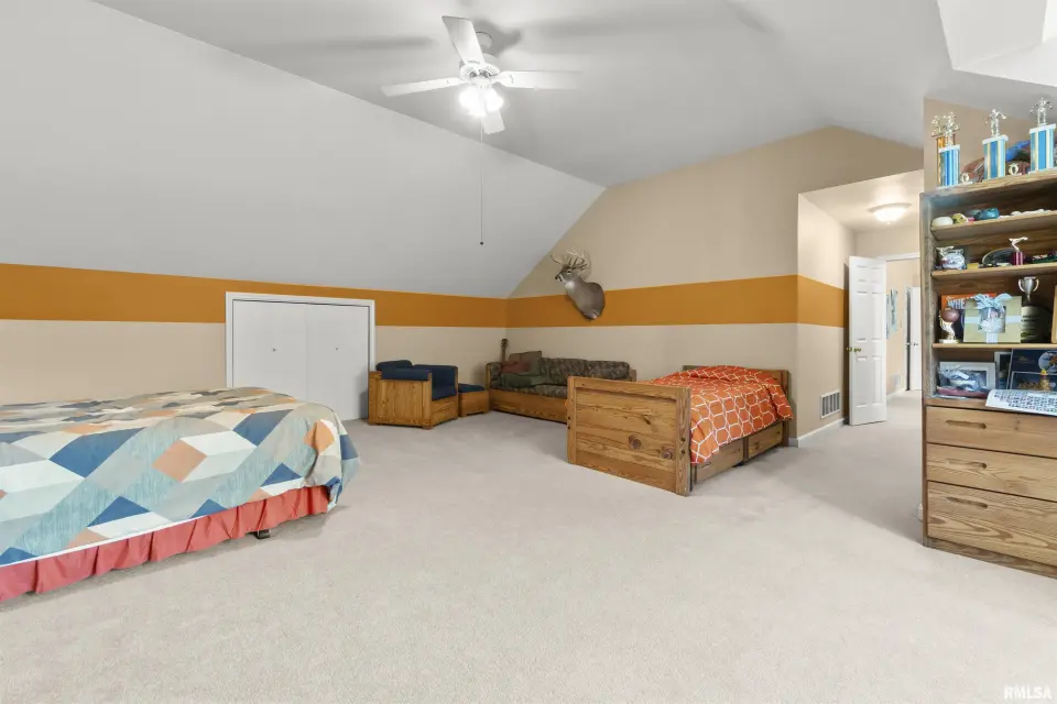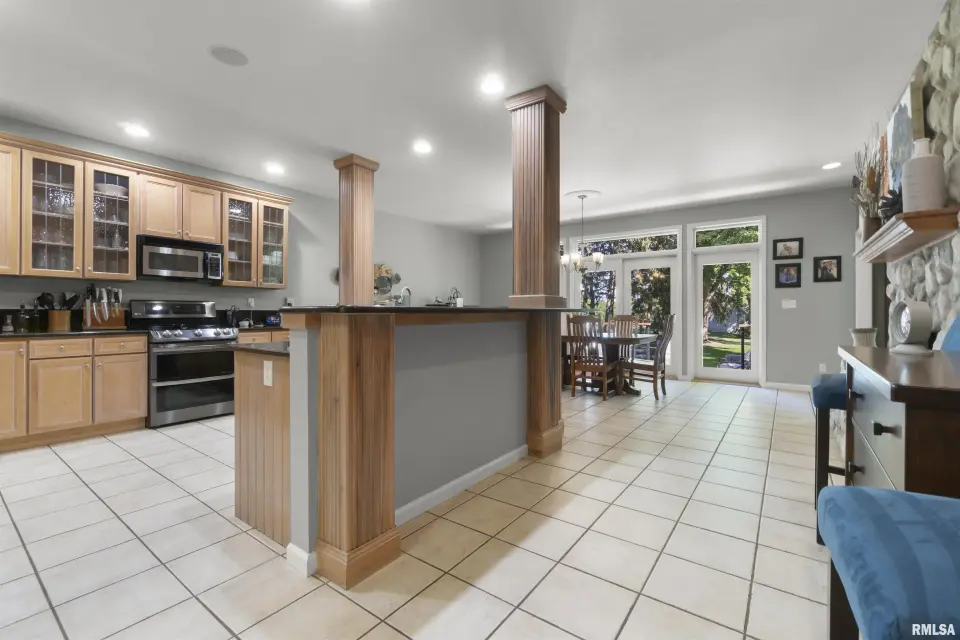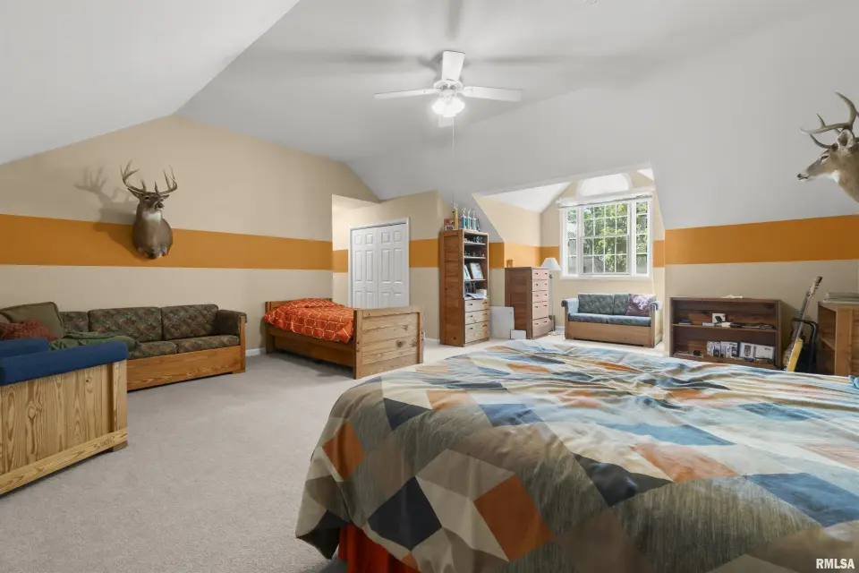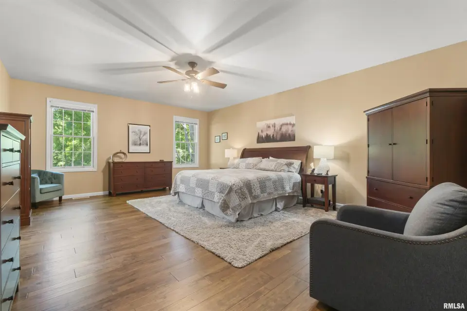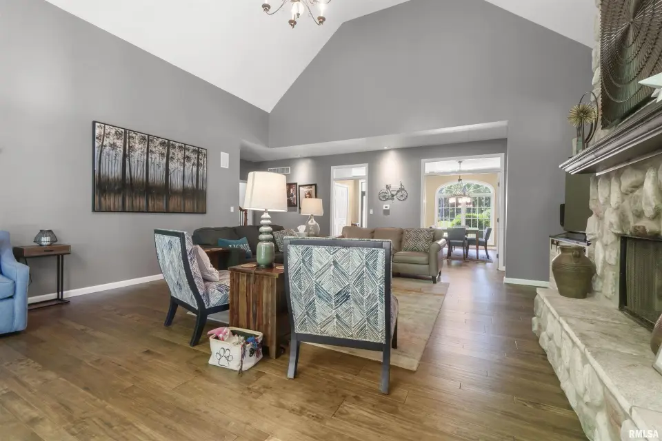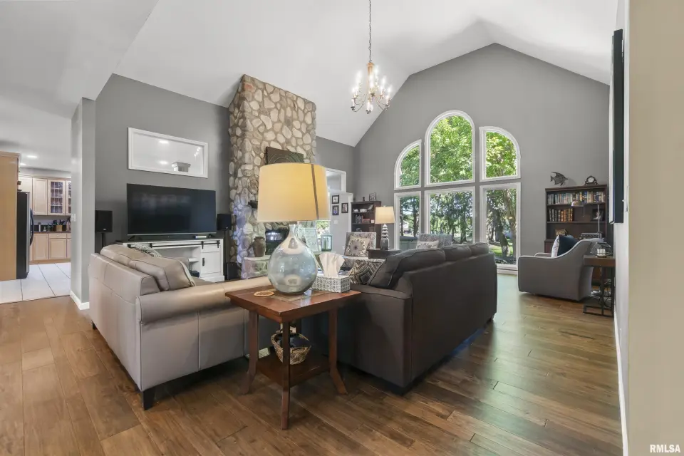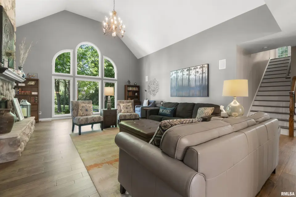 From the moment you arrive, the impeccable curb appeal sets the tone—and the same inviting warmth carries through the expansive backyard retreat. Step inside to be greeted by rich hardwood flooring and a soaring 2-story, great room filled with natural light from a dramatic wall of windows overlooking the serene rear deck and wooded views. The heart of the home is a sprawling kitchen featuring a dual sided fireplace, breakfast bar, eat-in space with panoramic views, and access to a freshly rebuilt deck—perfect for morning coffee or entertaining guests. A stunning formal dining room adds even more hosting potential. The main-floor primary suite is a luxurious escape, showcasing a fully updated, spa-inspired bath with a walk-in shower, soaker tub, dual vanities, and not 1 but 2 walk-in closets.2 additional main-level bedrooms share a full bath and offer generous space for family/guests. Upstairs, 2 massive bedrooms are separated by a large cozy family room.1 upstairs suite includes a private entrance from the garage—ideal for multi-generational living. Each bedroom boasts its own full bath and closet space rivaling primary suites in other homes. A full basement offers endless potential with a partially finished bathroom already in place. Even the garage impresses, with freshly refinished floors and meticulous upkeep seen throughout.