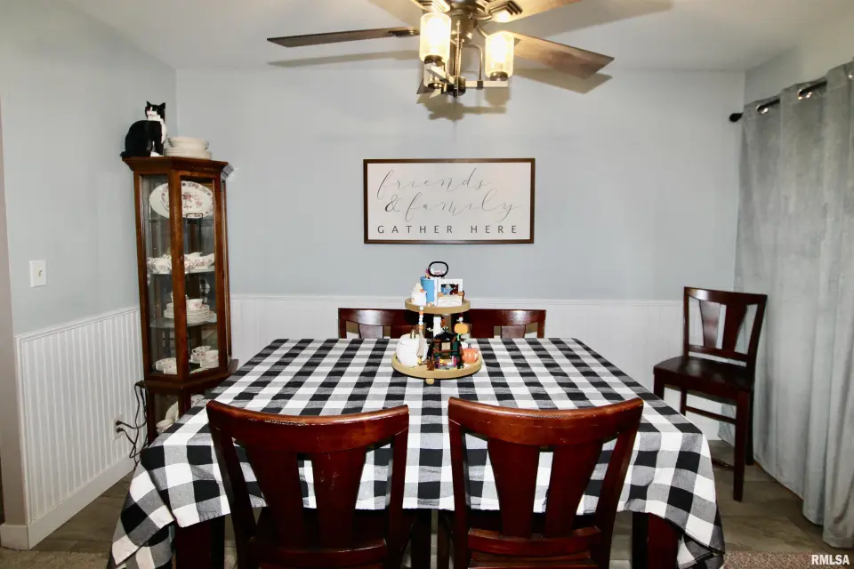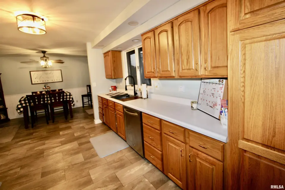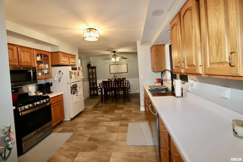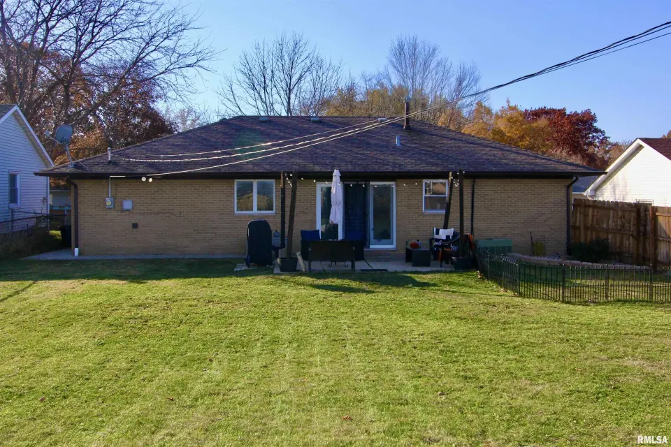 Step inside to a spacious living room and enjoy all new flooring and trim installed throughout the entire home in 2023, along with fresh, modern interior paint completed the same year! This home features a huge kitchen with an abundance of cabinetry, a new farmhouse sink, updated light fixtures one being a blue tooth speaker and added can lighting (2023). The adjoining dinette area overlooks a semiprivate, fully fenced in back with no neighbors directly behind, offering a peaceful outdoor setting on the patio. Convenience is key with a main floor laundry room located just off the kitchen. The generous sized master bedroom provides plenty of comfort! Newer vanity and stylish tile surround in bathroom. Additional updates include new gutters in 2023, and new garage door opened in 2025. This well-maintained brick ranch is move in ready and perfectly situated with a darling curb appeal! The appliances that remain are not warranted.