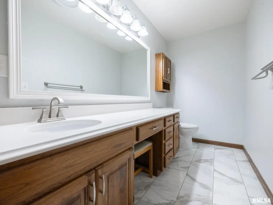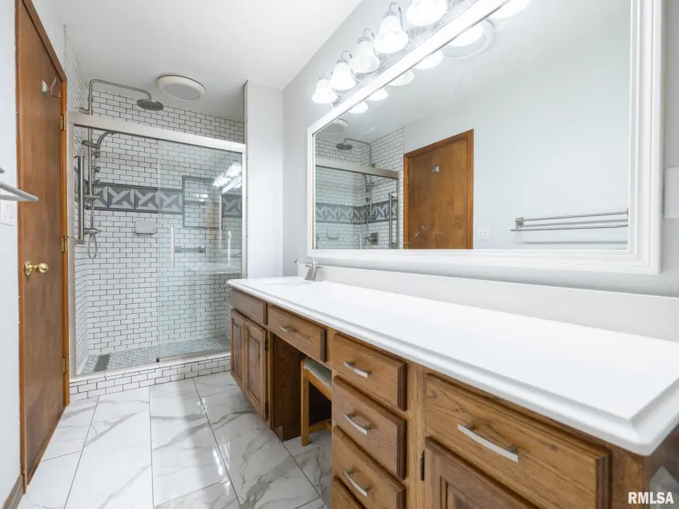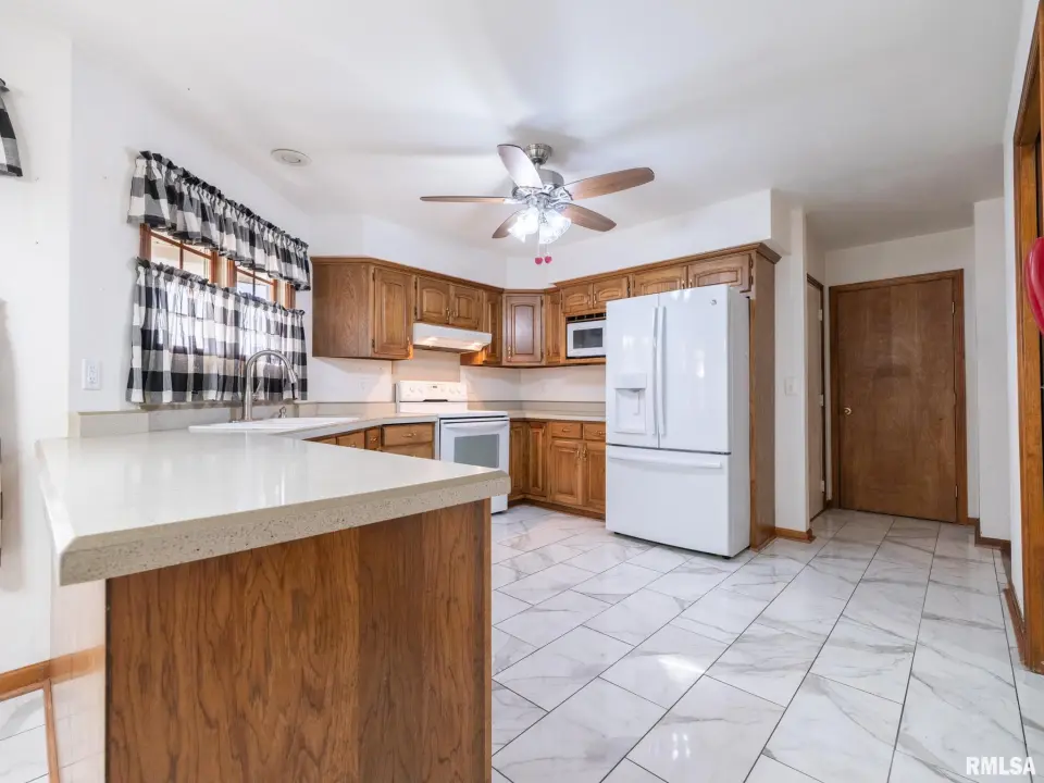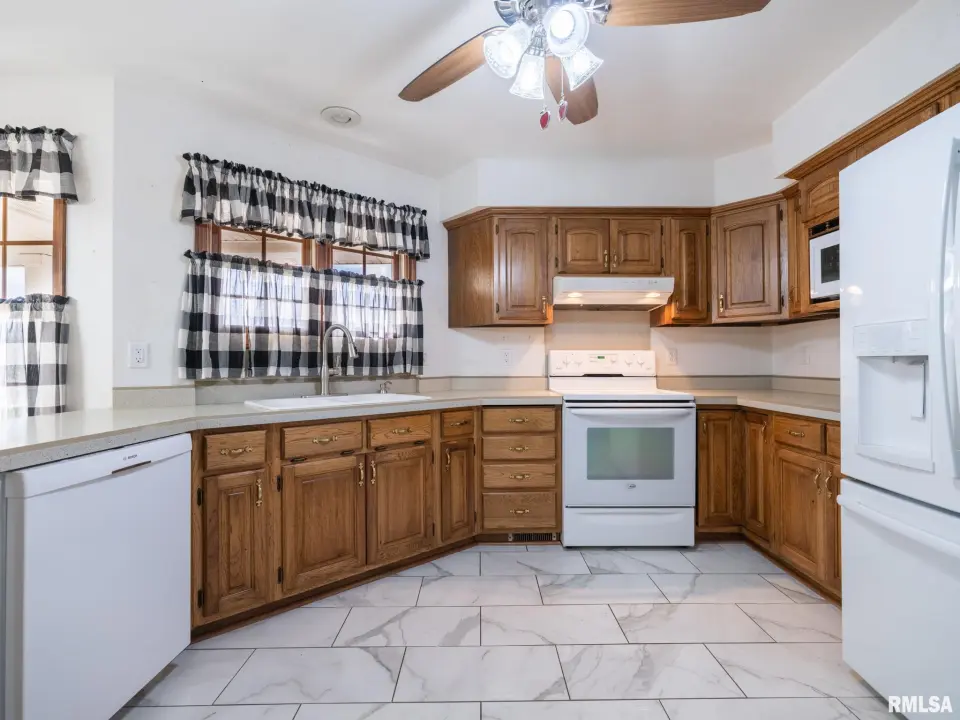 Features include spacious living room with hardwood floors, formal dining room, bright eat-in kitchen with custom Amish hickory cabinets, solid surface countertops, and porcelain tile flooring. Main floor laundry. Master suite offers hardwood floors, walk-in shower, custom cabinetry, and quartz countertops. Oversized garage heated garage plus 12x20 shed. Full basement provides endless possibilities. Major mechanicals updated within last 5 years. Home equipped with interlock electrical system for portable generator.