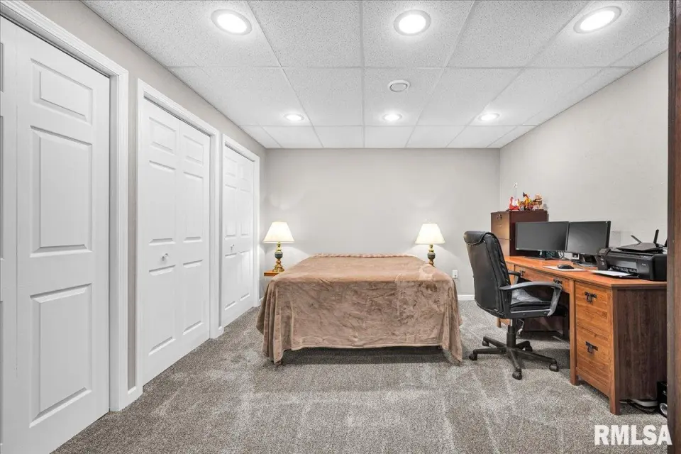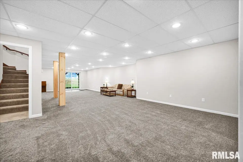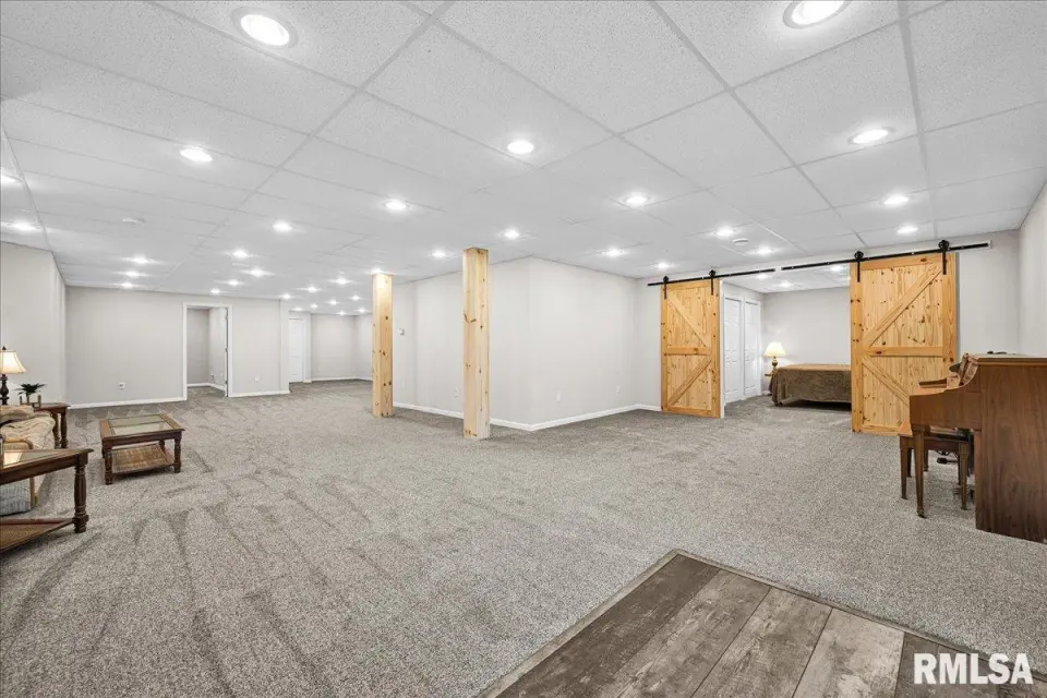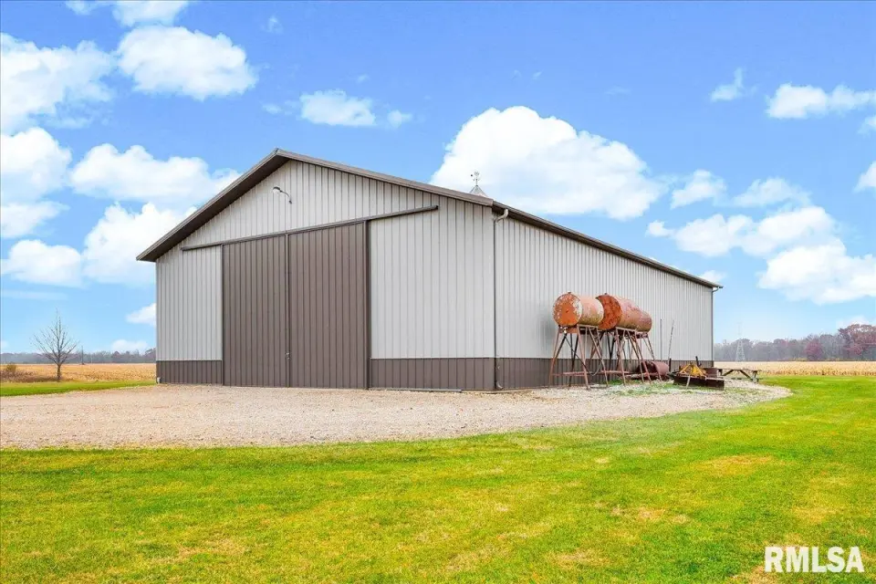 This custom 5 bed, 3 bath property offers 3,563 sqft. Hardwood floors flow through the main living spaces. The spacious family room features a cozy gas fireplace framed by gorgeous windows, offering peaceful wildlife views, and stunning cathedral ceilings. The kitchen is built for entertaining with a peninsula bar and beautiful Amish custom cabinetry. The main floor includes two bedrooms and a large shared bath. The oversized primary suite features a walk-in closet and ensuite, conveniently located right off the laundry/drop zone with a half bath perfect access from the heated three-car garage. Entertaining is easy on the 48'x30' no-maintenance deck. The acreage includes a spectacular 54'x75' Morton Building with 16-foot sidewalls for vertical clearance. It features heavy-duty 6-inch concrete floors and expansive 24-foot sliding doors ideal for all your farming, equipment, or recreational storage needs. The walk-out basement has two additional bedrooms, a living room, and plumbing for a 4th bath, plus a potential pond location right outside. Features include geothermal HVAC, two water heaters, and zoned comfort. This property is ready for hunting, entertaining, and quiet country enjoyment!
