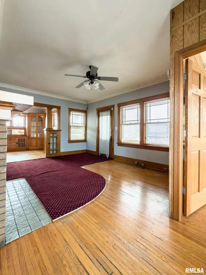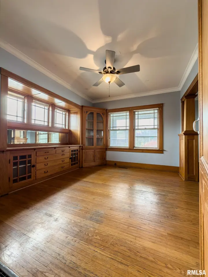 Features include hardwood floors, original wood trim, built-in cabinetry. Multiple rooms offer flexible layouts for offices, bedrooms, or creative workspaces. The property also provides ample parking, a covered front porch. — ideal for a small business, rental investment, or owner-occupied workspace.