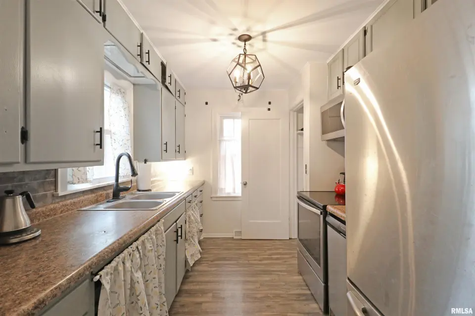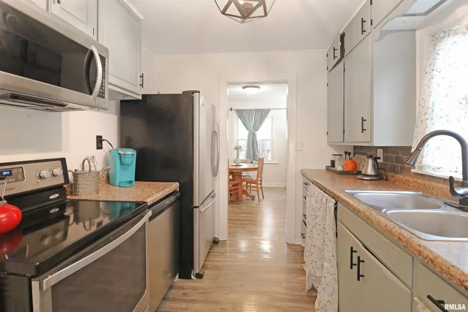 **COMING SOON 12/1/25** Welcome home to this darling 1.5 story centrally located in town for walkability to shops, dining, and schools. The main floor features a living room that opens to the dining space. A cozy gallery kitchen with stainless steel appliances, plus a newly finished breezeway (2025) joining the two car garage. Main floor bedroom and full bath complete the space. The upper level is home to two spacious bedrooms with shared half bathroom. The basement is home to the laundry room and offers plenty of storage for future finished space. A great sized, level yard with fence and patio. Notable updates include: roof and siding in 2019. Start the new year with a new home.. HURRY!