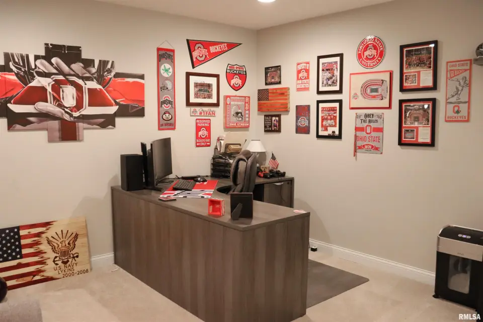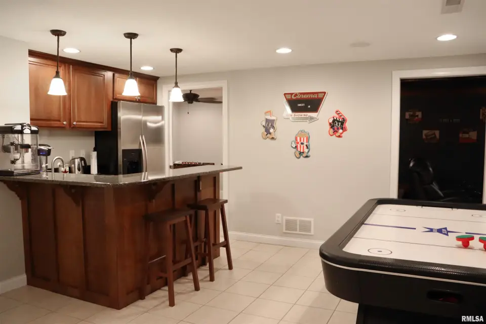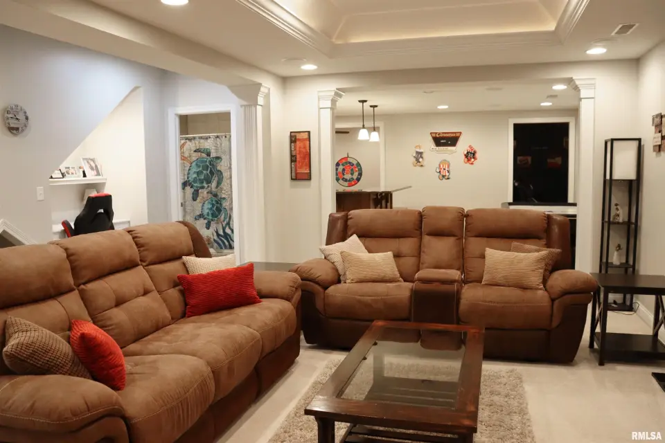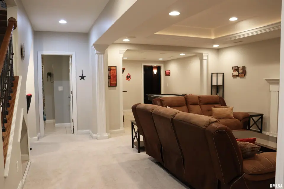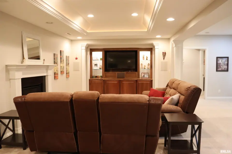 The gourmet kitchen is a true focal point, with rich granite countertops, island, new premium s/s appliances, walk-in pantry, abundant cabinetry and coffee corner. Formal and informal dining spaces enhance the versatility of the main, along with a laundry rm, office currently used as a BR, and 3-car garage. The MF primary boasts a stunning spa-like bath featuring a soaker tub, tiled shower, and spacious closet. The basement is a true showstopper, highlighted by a fully equipped, immersive theatre room designed for the ultimate cinematic experience, featuring six new lighted leather recliners, tiered seating, surround sound capability and a high-quality projector that remains with the home. The lower level also offers a 2nd kitchen, BR, full bath, office, family room, and a large storage room with built-in shelving. Upstairs, you’ll find three additional bedrooms—one with a private bath and two connected by a Jack-and-Jill bath. One upper level BR is currently used as a bonus recreation space. Situated on a corner lot, the property features a fully fenced backyard and a stunning patio complete with an outdoor kitchen and fireplace, creating an exceptional space for entertaining.