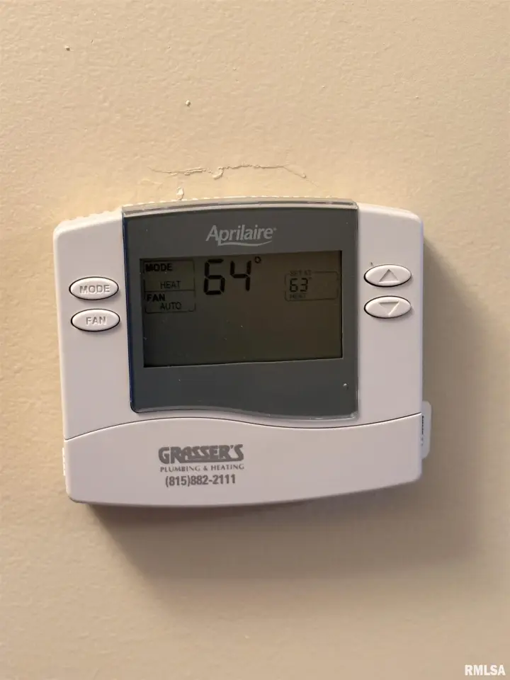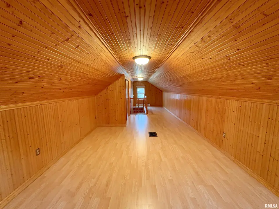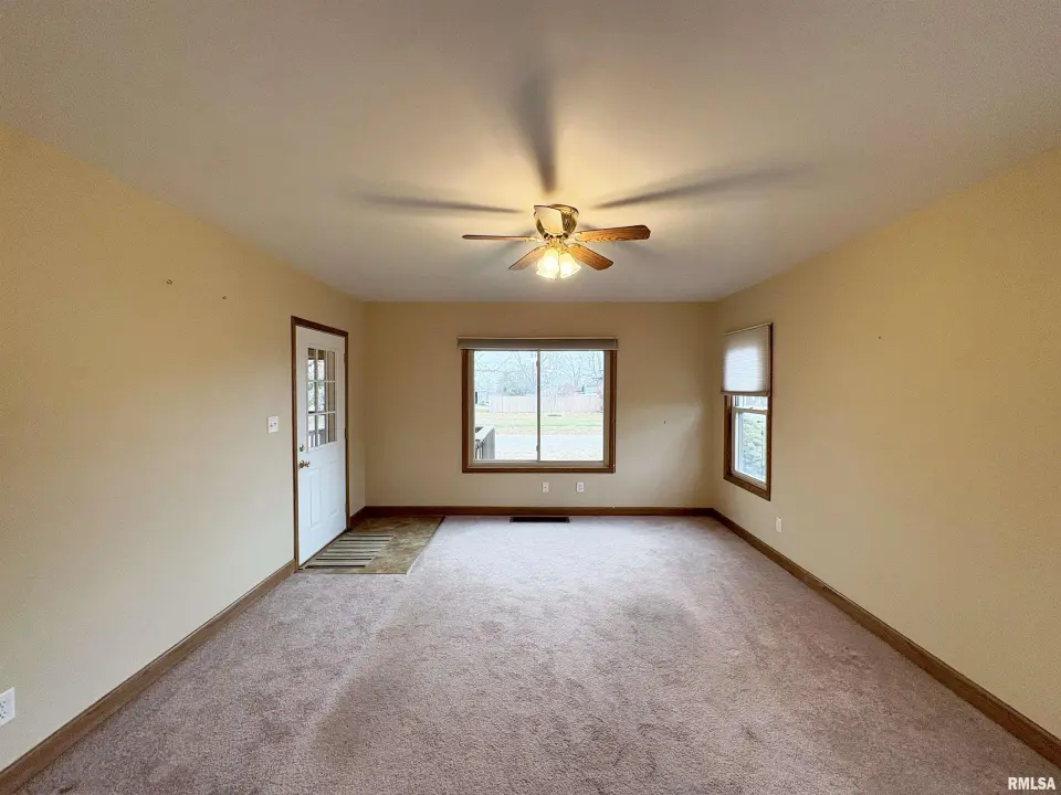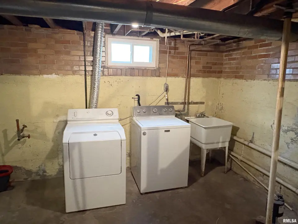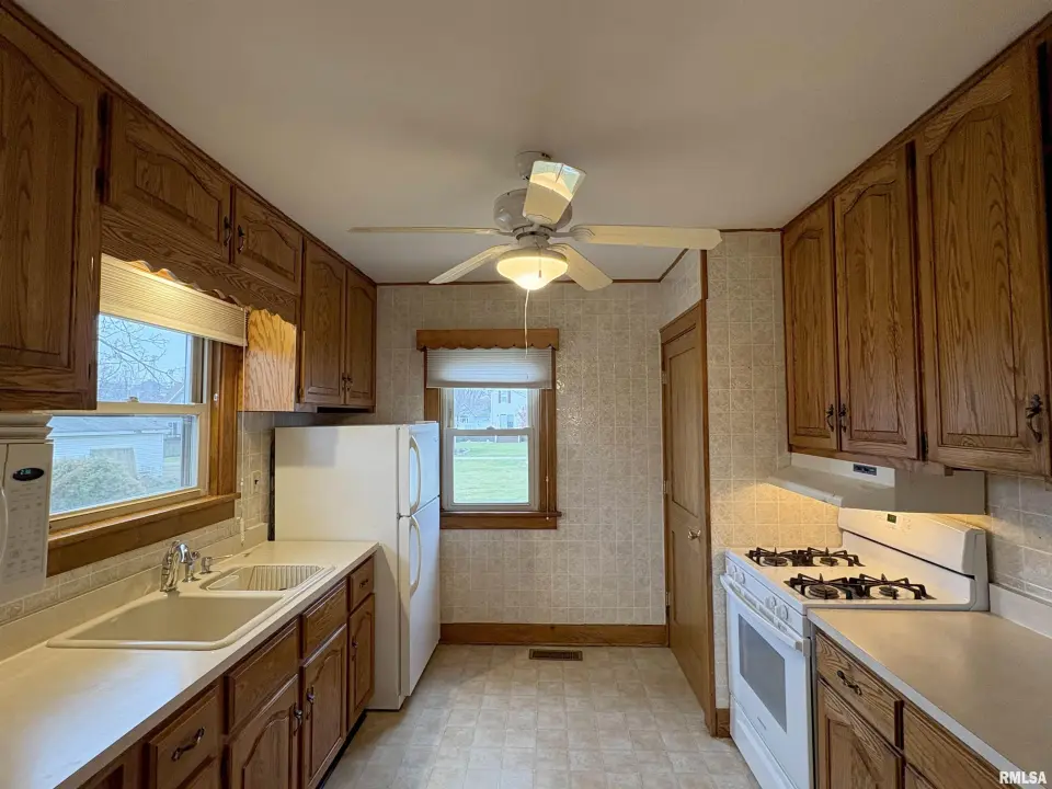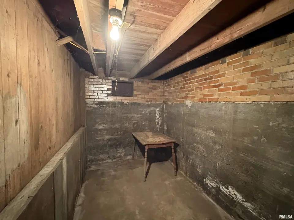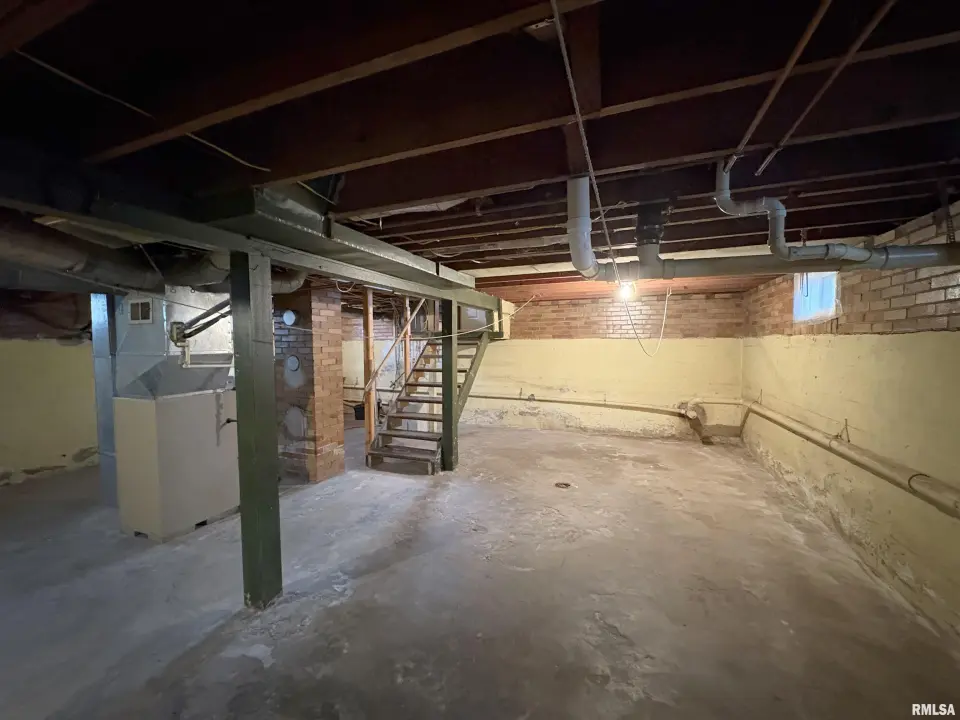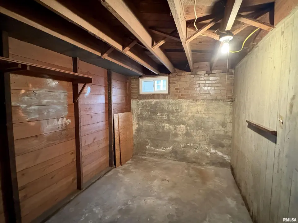 The dining room features a beautiful Andersen bay window that bathes the space in natural light, plus emergency heat for those chilly Illinois evenings. The fully equipped oak kitchen features a convenient breakfast bar with three bar stools included – perfect for morning coffee or casual meals. Both main floor bedrooms offer lighted closets for easy organization, while the large upstairs bedroom provides excellent space and attic storage access. The remodeled bathroom (approx. 5-10 years) and updated oak trim and doors (approx 10 years), add modern touches to this chaming home. Practical features abound, including steel siding, updated windows & a 100 amp electrical panel. The large unfinished basement offers a 11’x7’10” workshop area, original 11’x6’7” coal room plus laundry area with washer, dryer and utility sink. Stay comfortable this winter with the HE furnace. Central air system features a new capacitor 2025. The generous level yard showcases numerous perennial gardens that bloom beautifully throughout the seasons plus a 25’x7’ patio. 2 stall detached garage provides ample parking & storage. Recent septic pumping in 2025. Located near The Pavilion park and convenient to Midland High School.