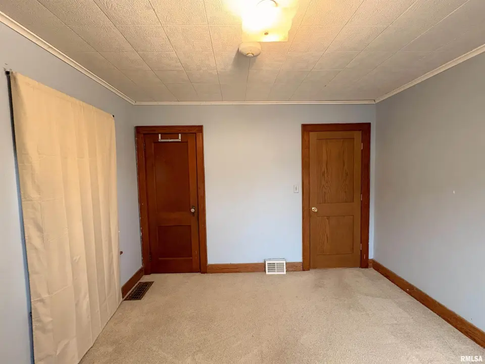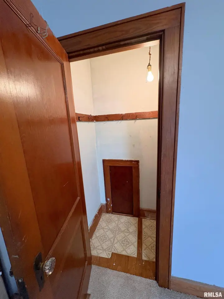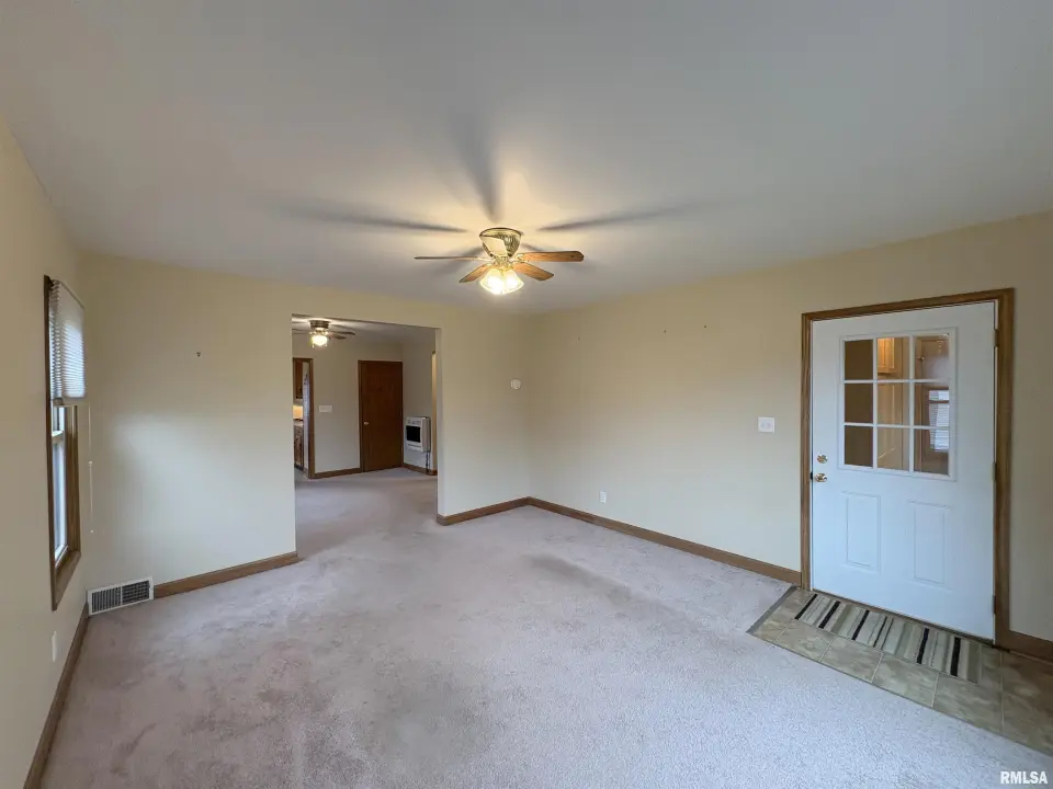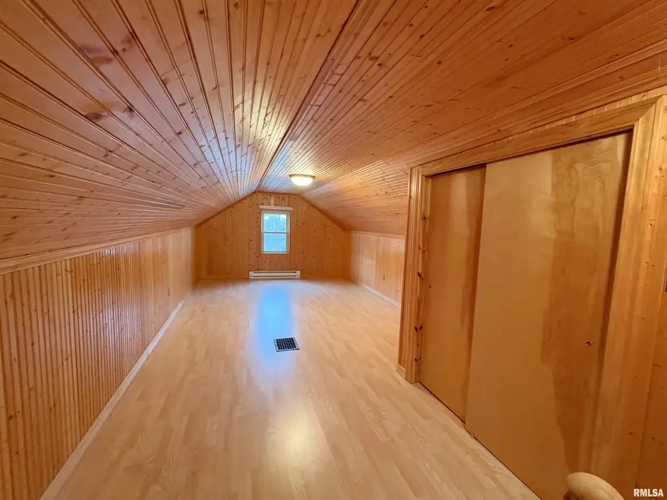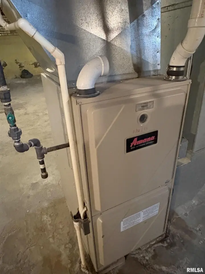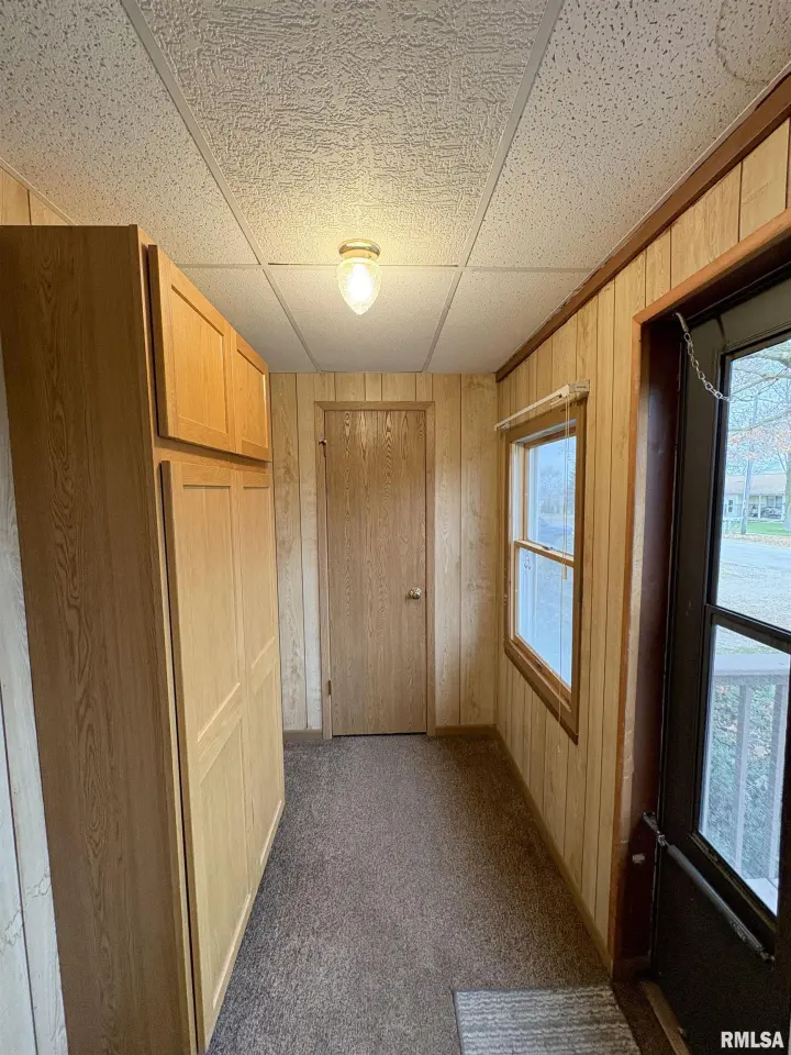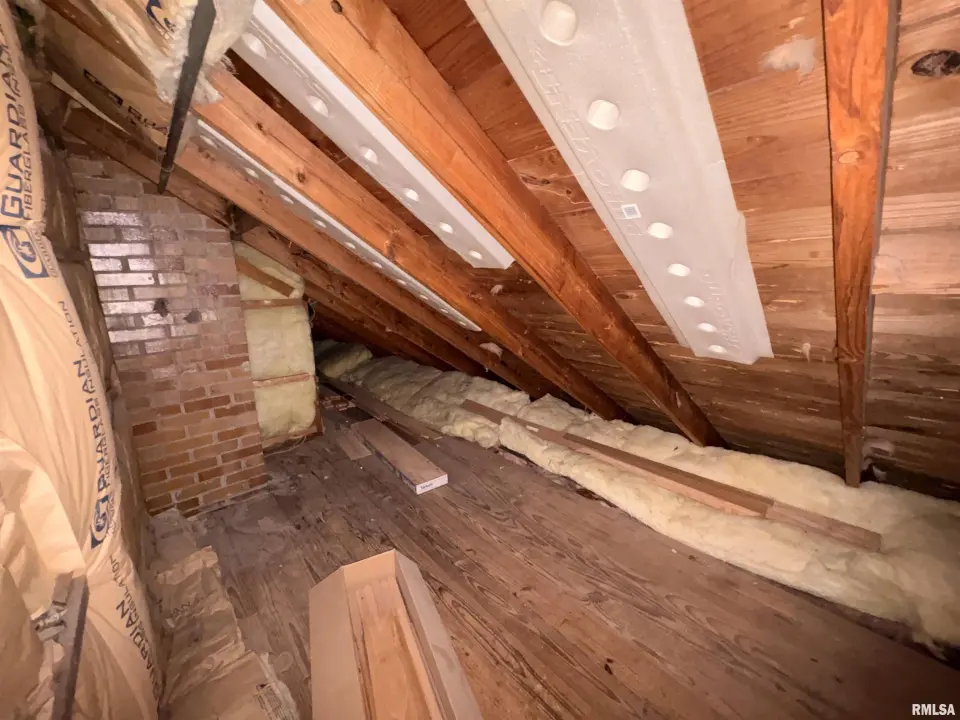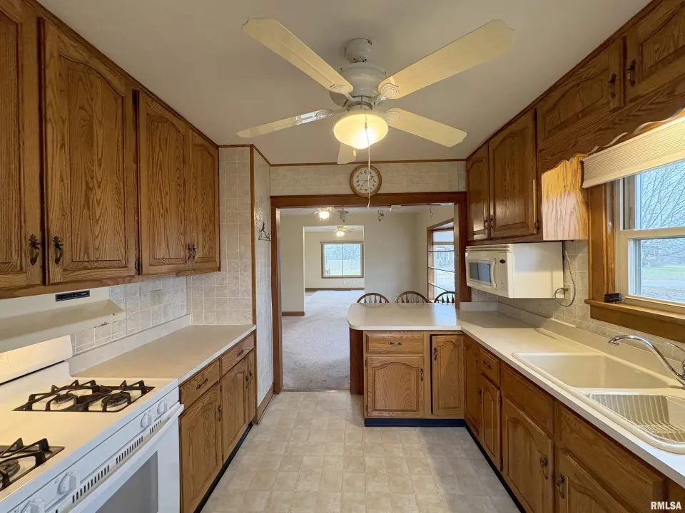 The dining room features a beautiful Andersen bay window that bathes the space in natural light, plus emergency heat for those chilly Illinois evenings. The fully equipped oak kitchen features a convenient breakfast bar with three bar stools included – perfect for morning coffee or casual meals. Both main floor bedrooms offer lighted closets for easy organization, while the large upstairs bedroom provides excellent space and attic storage access. The remodeled bathroom (approx. 5-10 years) and updated oak trim and doors (approx 10 years), add modern touches to this chaming home. Practical features abound, including steel siding, updated windows & a 100 amp electrical panel. The large unfinished basement offers a 11’x7’10” workshop area, original 11’x6’7” coal room plus laundry area with washer, dryer and utility sink. Stay comfortable this winter with the HE furnace. Central air system features a new capacitor 2025. The generous level yard showcases numerous perennial gardens that bloom beautifully throughout the seasons plus a 25’x7’ patio. 2 stall detached garage provides ample parking & storage. Recent septic pumping in 2025. Located near The Pavilion park and convenient to Midland High School.