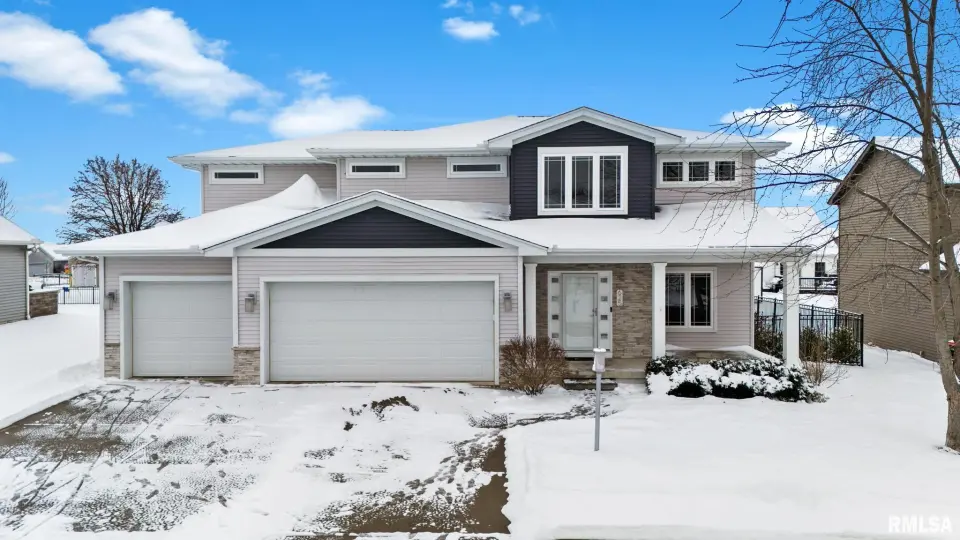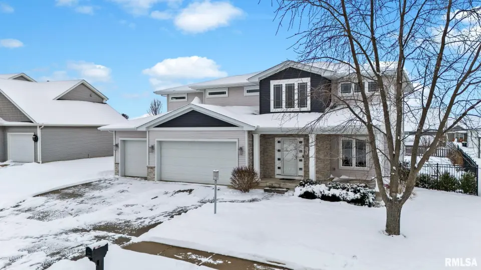 Built with durable Nadura-enhanced construction, this home offers strength, stability, and long-lasting performance. Inside, you'll find 4 bedrooms, 2.5 baths, and an oversized 3-car garage. The stunning kitchen features granite counters, island, and an abundance of cabinetry. The open layout includes tile flooring, tall ceilings, custom railing, custom blinds, a dedicated office, cozy fireplace, a mudroom, and excellent storage throughout. The bright upper level offers transom windows, 4 spacious bedrooms, large closets and 2 full baths. Enjoy the convenience of an upstairs laundry room with extra storage. The lovely primary suite includes a tray ceiling, private bath, walk-in shower, dual closets, and dual sinks. The lower level adds great additional living space with a refreshed rec room, perfect for entertaining or relaxing. Additional highlights include a storm shelter (safe room), 85-gallon water heater, two furnaces, two A/C units, fresh paint, and new carpet. Outdoors, relax on the charming front porch or enjoy the professionally landscaped, fenced backyard with a covered patio, garden space, and your own peach tree. Just one block from the park with its splash pad, playground, basketball court, and trails.