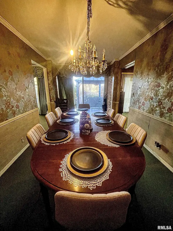 Nestled in a quiet subdivision just outside city limits, this property offers the perfect blend of privacy, convenience, and low taxes. Step inside and be greeted by vaulted ceilings with wood facade that create an open, airy feel throughout the main living areas. The heart of the home is made for entertaining, featuring 2 built-in wet bars - ideal for hosting family gatherings, holiday parties, or casual weekends with friends. With 4 bedrooms, 3.5 bathrooms, this home is designed for family living and memorable get-togethers. Whether you’re raising kids, love having guests stay over, or simply enjoy extra space to spread out, this house checks every box. Enjoy peaceful suburban living in a small, friendly HOA community while being just minutes from Macomb. If you’ve been searching for a property with character, conversation-starting style, and space for the whole family, this is the home for you! Furniture is negotiable to stay with property.