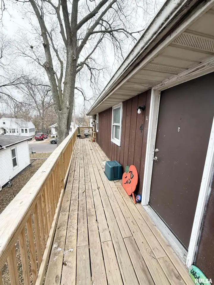 Parking lot behind building is for tenant parking. All new decking and stairs in 2025. Unit 1 & unit 3's lease ends 11/30/2026. Unit 2 & 4 are on month to month leases. Unit 1,2,3,& 4 all have a $25 monthly charge going towards trash. Unit 3 & 4 each have a $25 monthly charge for a pet. Unit 1 total charges = $724 Unit 2 total charges = $575 Unit 3 total charges = $649 Unit 4 total charges = $725 Owner pays water & sewer and trash. Tenant pays electric/gas & $25/month towards trash.