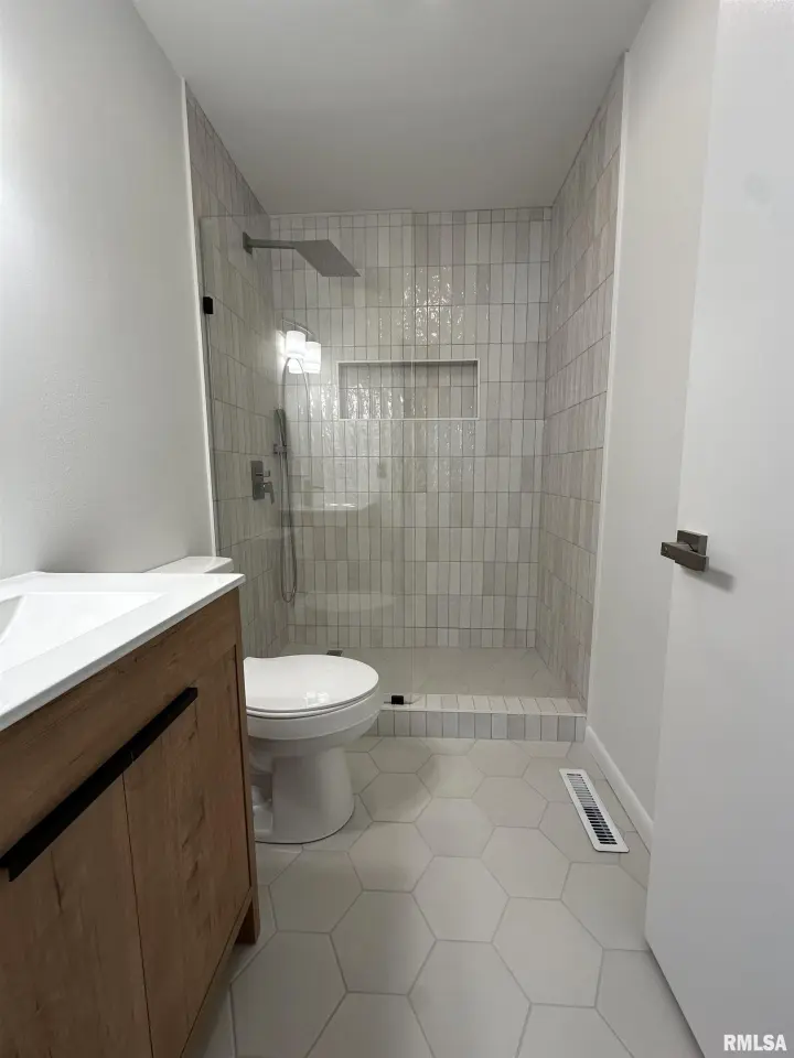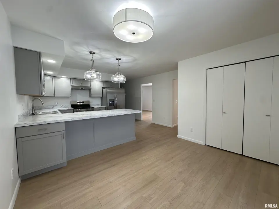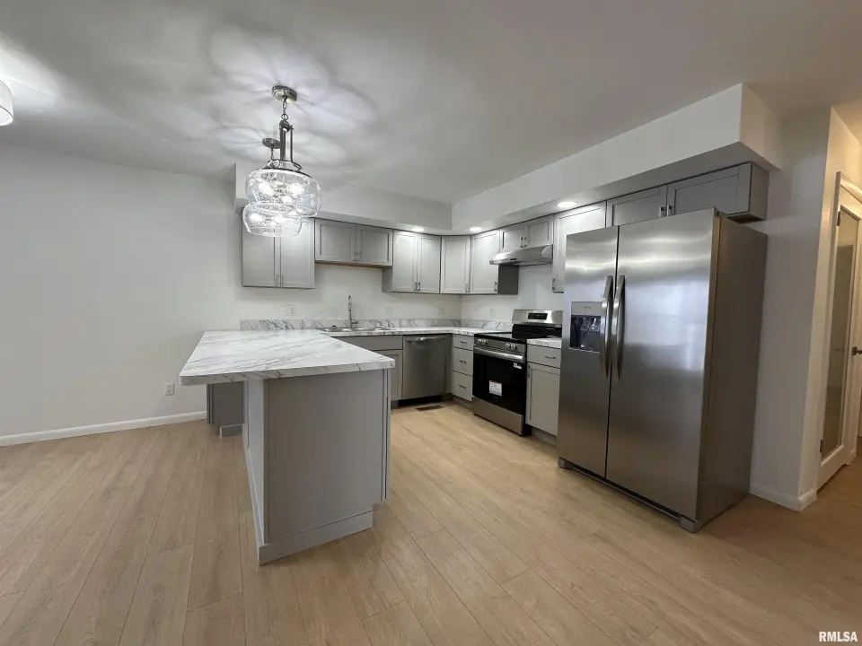 The brand-new kitchen offers gray shaker cabinets, stainless steel appliances, marble-look countertops, and a large peninsula that opens to the dining and living areas. Both bathrooms have been fully redesigned—one with a walk-in tiled shower and rainfall head, the other with a modern tub/shower and warm vertical wood-look tile. The home also includes fresh paint, new flooring throughout, updated lighting, and a generous primary walk-in closet. Located in a quiet 55+ subdivision with low-maintenance living, this move-in-ready home combines comfort, style, and ease. Schedule your showing today!