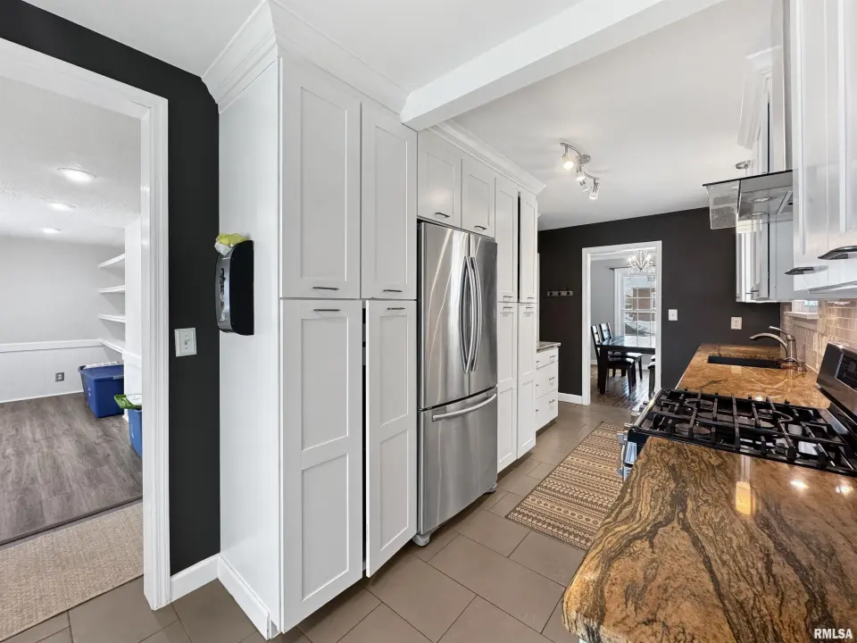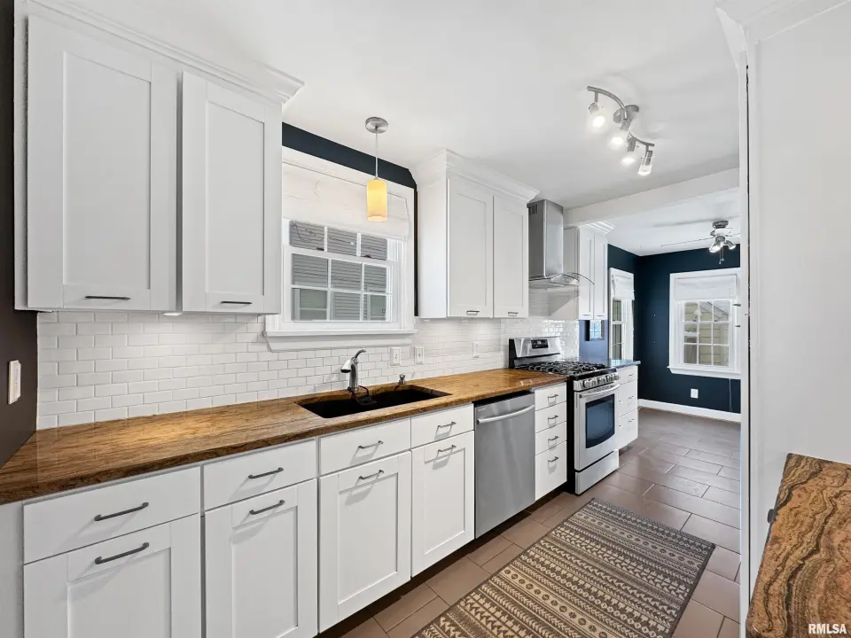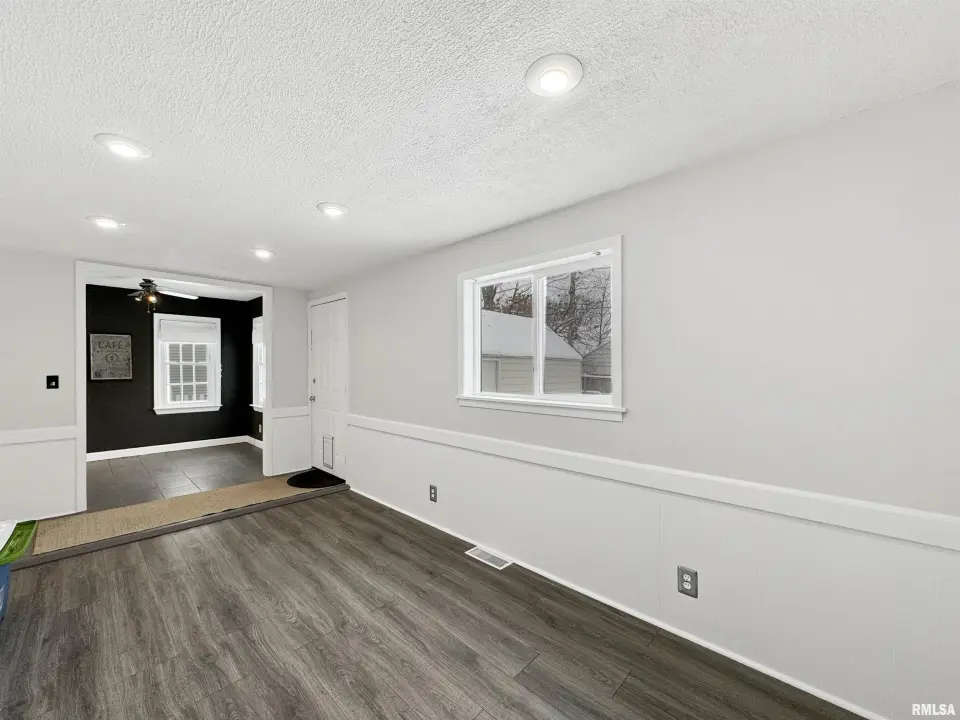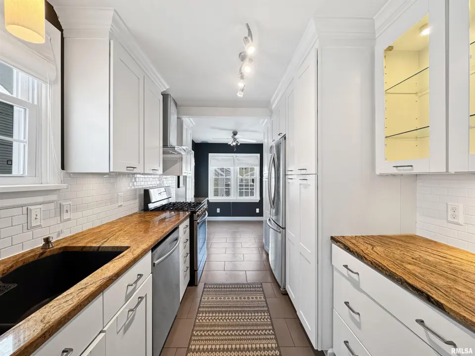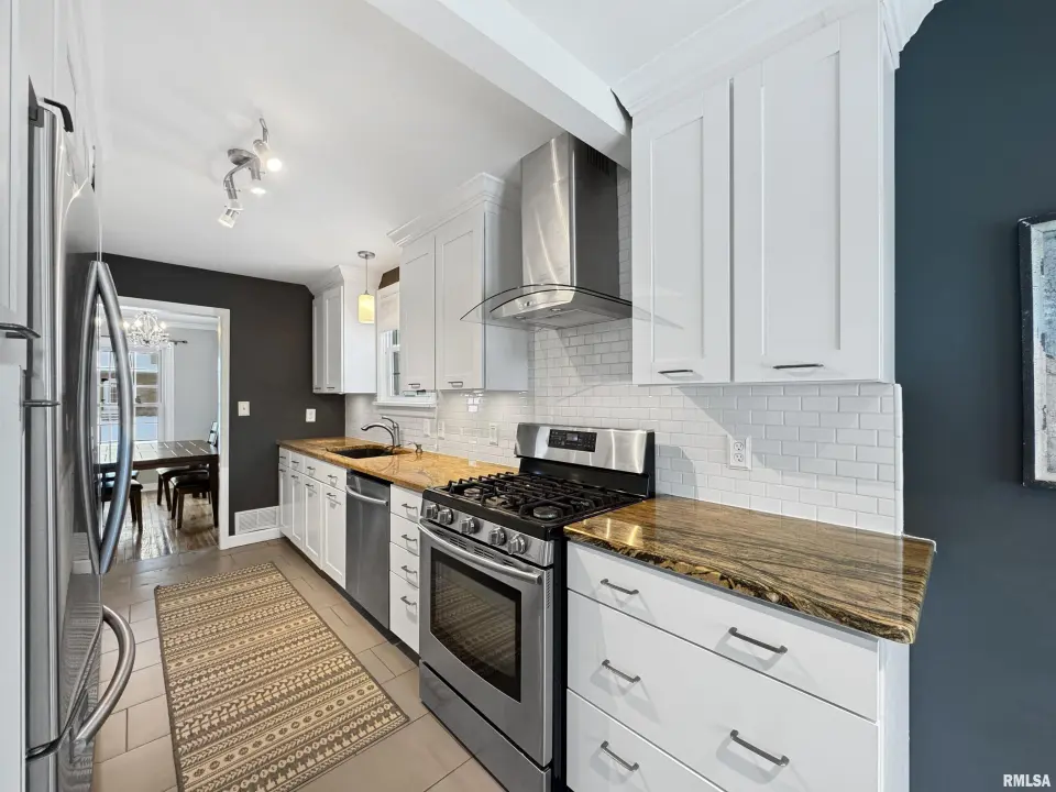 The heart of this home is the stunning eat-in kitchen, boasting granite counters, subway tile backsplashes, and sleek stainless steel appliances. It's a cook's paradise! Picture cozy evenings by the fireplace in the spacious living room, flooded with natural light. The generously-sized bedrooms feature lovely hardwood floors, and the modern bathroom offers a spa-like experience with its walk-in shower and pebble finish. Don't miss the additional main floor family room, perfect for gatherings or a quiet night in. Relax on the beautiful paver front porch or entertain guests on the paver back porch, all while enjoying the comfort of a fenced backyard. The oversized garage is a bonus for extra storage or a workshop space.