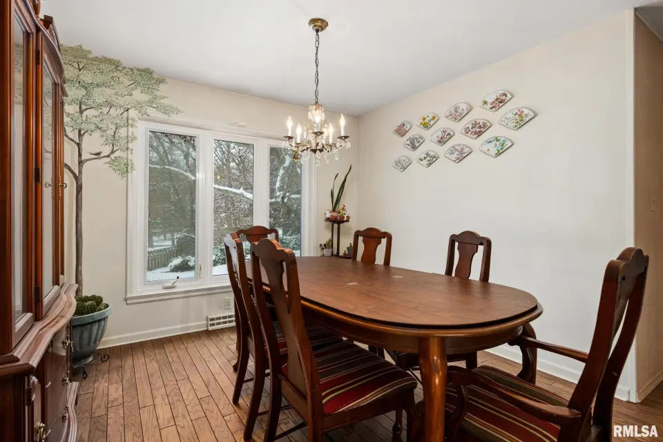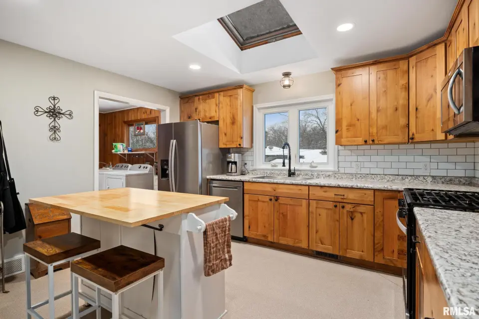 In the highly desirable Idyllbrook neighborhood of Peoria, this spacious ranch offers 1,840 sq ft on the main floor with 4 bedrooms and 3 full bathrooms, including a fully updated eat-in kitchen remodeled in 2024 with new appliances and a skylight. A convenient main floor laundry with pantry adds everyday practicality. The primary bedroom features an attached full bath, and all main-floor bedrooms include ceiling fans. An office on the main level overlooks the backyard, and the main floor also provides ample storage and a wood-burning fireplace. The walk-out basement is partially finished with a family room featuring custom built-ins and a gas fireplace, along with a workroom that provides access to a large crawl space and a kitchenette area with a sink. Additional highlights include a backyard patio, a recently updated water heater, and kitchen and appliance updates completed last year. Both fireplaces/chimneys and the basement kitchenette sink are being sold as is. Located near Chartwell Park in an established neighborhood within the Richwoods school district, this home offers generous space, thoughtful updates, and a prime location with so much to appreciate. Schedule your private showing today!
