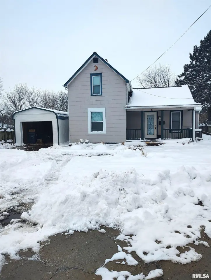 Interior upgrades include fresh paint throughout, new switches/receptacles, updated ceiling fans, new window A/C, new mini blinds and curtains, and multiple new windows. The fully renovated bathroom features a new vanity, sink, faucet, and mirror, updated bathtub, shower fixtures, storage unit, exhaust fan, and toilet components. The kitchen has been extensively updated with a new sink and faucet with new shut-offs, new plumbing for washer/dryer and new shut offs, new refrigerator and stove, rebuilt and refinished cabinets, refreshed countertops, new hardware. Home includes updated electric, a new furnace, water heater approx. 2 years old, updated plumbing, reworked floor supports, updated electrical box and a clean, improved cellar. Exterior improvements include rebuilt deck, new gutters and downspouts, huge backyard with big firepit, repaired fencing, improved grading, updated landscaping, new A/C unit, new front porch light and mailbox, and all new door locks. Slate siding offers excellent insulation year-round. Property includes two garages: the front garage features a brand-new garage door with 2 controllers, updated framing, new back sliding door and full exterior paint. The back garage includes a new east wall, roof updates, new lock, repaired west wall, full exterior paint. This move-in-ready home offers all major work completed.