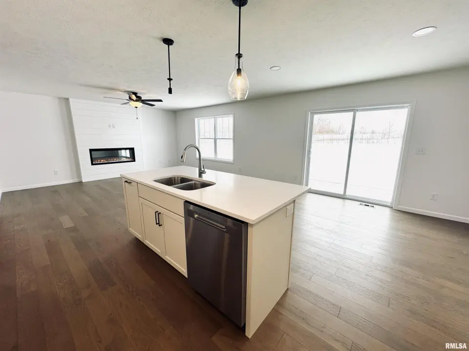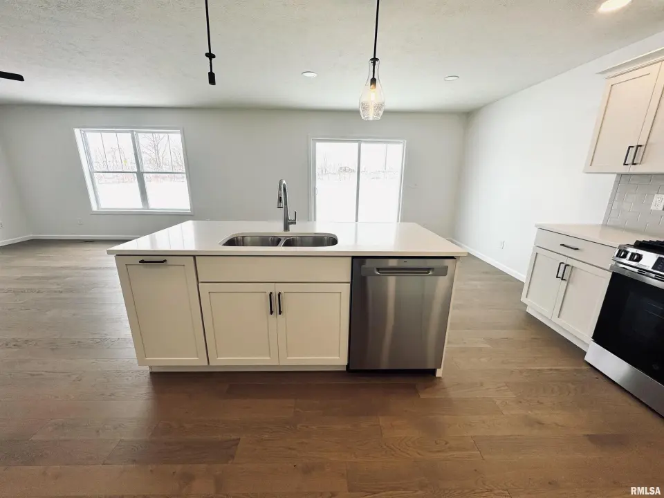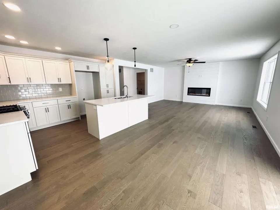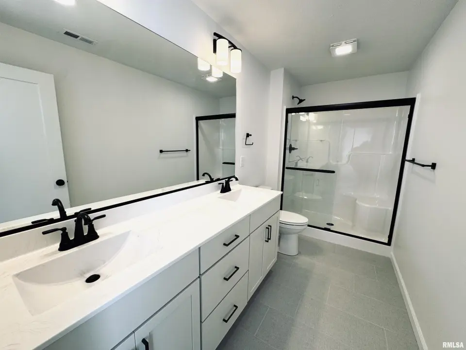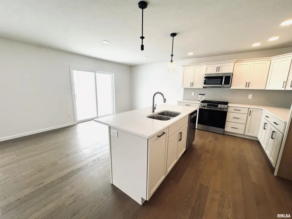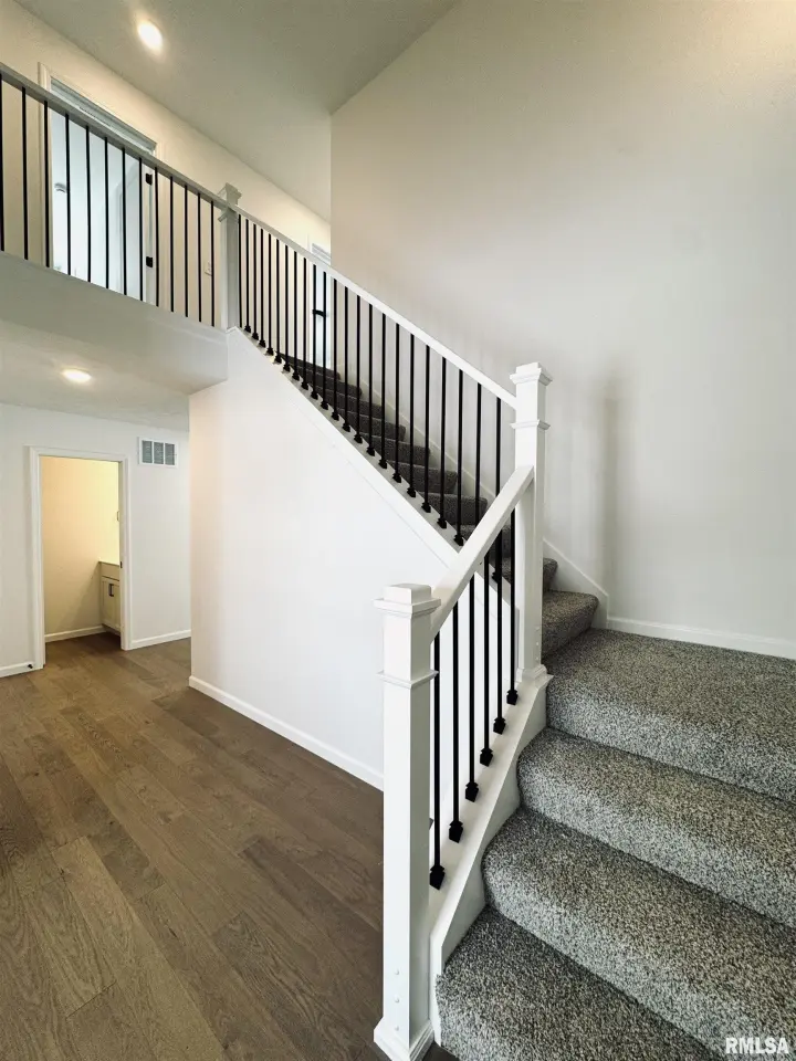 Step into the bright 2-story foyer, where the open staircase sets the tone for the this fabulous home accentuated by expansive windows, beautiful wood floors that run through most of the main floor. The Great room featuring a modern shiplap fireplace wall & bright, open kitchen is equipped with quartz counters, soft-close cabinetry, breakfast bar, pantry & dining space that leads to the patio and deep yard. You'll love the oversized main floor laundry with tile floor & front hall powder bath. Upstairs you discover a primary suite that is sure to impress with a generous walk-in closet and private bath featuring dual sinks, tile flooring and large shower. Secondary bedrooms also include walk-in closets and share a roomy hall bath. The finished lower level extends the living space with a large family room, additional bedroom with egress window, and full bath—ideal for guests, hobbies, or a home office. Built with energy efficiency in mind—2x6 exterior walls, 96% efficient furnace, and 16 SEER A/C—this home blends comfort, style, and practicality.