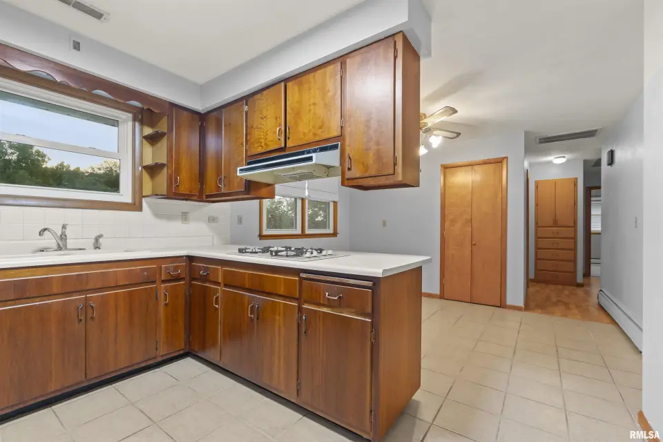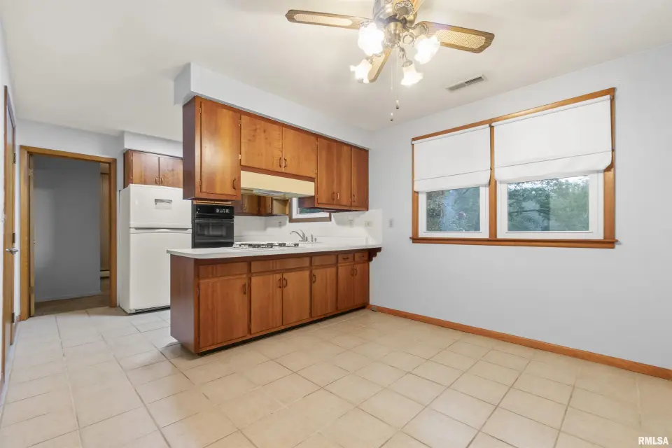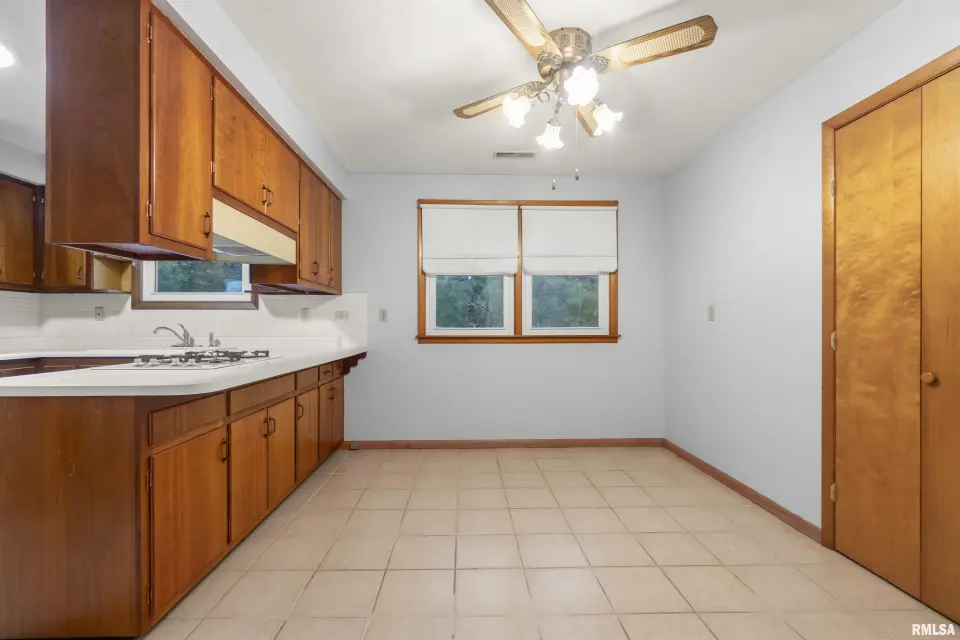 With 1,394 square feet, this home strikes the perfect balance — not too big, not too small — and provides a solid foundation for your personal touch. Step inside to find a clean, well-maintained interior with generous room sizes and ample storage throughout. The main floor includes 3 spacious bedrooms and 1 full baths, including a walk-in shower conveniently located in the laundry area. You’ll love the cozy heated floors in the dining area of the kitchen, adding an extra touch of comfort during the cooler months. The large rec room in the walk-out basement adds valuable living space, complete with a fireplace, a full bath and an area ideal for a future kitchenette — perfect for gatherings or extended guests. Outside, you’ll appreciate the attractive two-stall garage, a true standout feature in this neighborhood, providing both function and curb appeal. This property offers the chance to enjoy a move-in-ready home while planning your updates at your own pace. Appliances, whole-house fan, and fireplace are being sold as-is. Convenient East Peoria location close to shopping, restaurants, and interstate access — a smart opportunity for anyone looking to invest in value and potential. Home is in estate and being sold as-is.