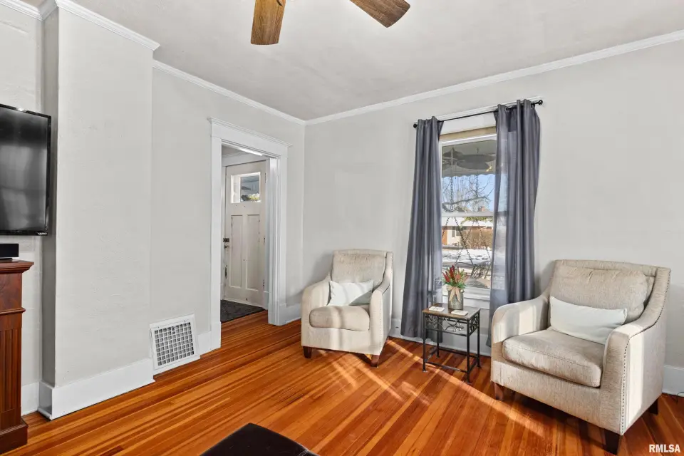 The fully covered front porch welcomes you into this home and all it has to offer. Recent updates and upgrades include: both baths remodeled, refinished hardwood flooring, newer windows throughout, roof in 2017, and more. One full bath on each level, plus a main floor laundry. The primary bedroom is also on the main floor. Bonus 400 sq ft workshop/retreat located near the detached one-car garage with its own electrical panel is perfect for someone looking for extra space. Schedule your private tour today to see this beautiful home in person!