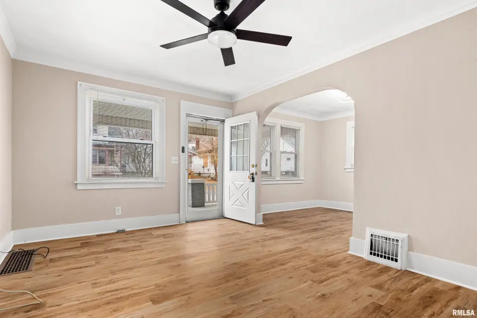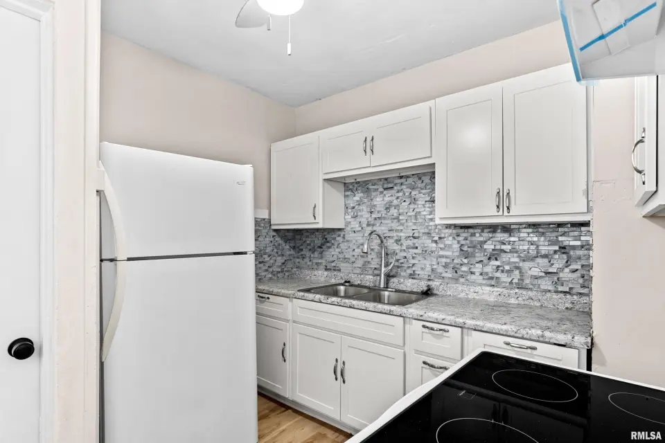 A charming covered porch greets you at the entrance and leads into a bright, inviting living space that blends seamlessly with the dining area, perfect for cozy mornings and everyday gatherings. The main level features a updated kitchen complete with a stylish backsplash, and white cabinetry, along with a full bathroom. The main level also offers a spacious primary bedroom and second bedroom. The basement walls and floorings are freshly painted and can be finished to have even more living space, perfect for a recreation room, entertainment area, or relaxation. Outside, enjoy the peaceful fenced backyard. Updates include: New LVP and carpet flooring, fresh paint, new range/oven, new kitchen exhaust vent, new fans & new light fixtures in '25. 14-M Standard Home Warranty.