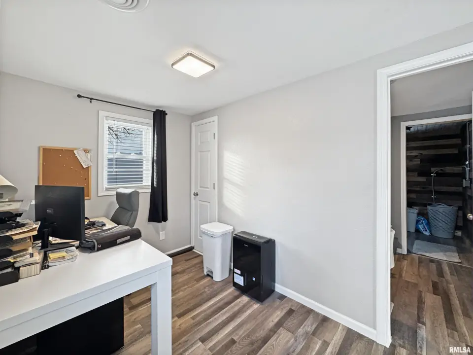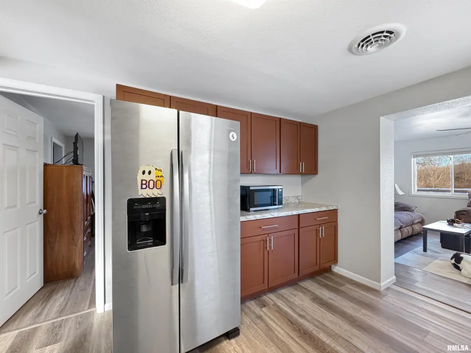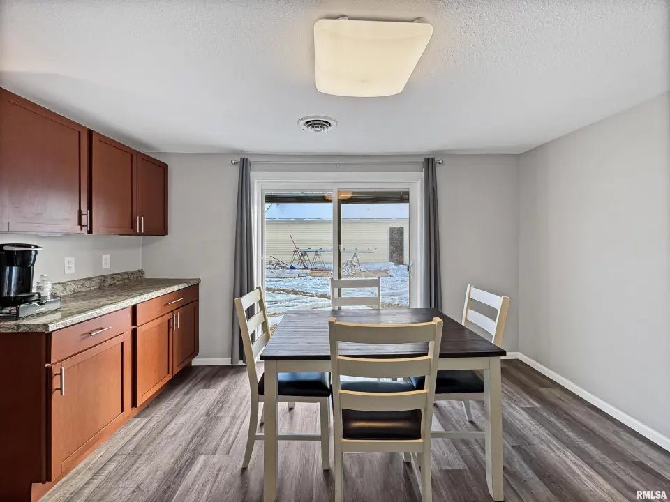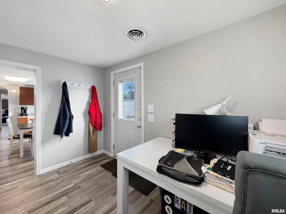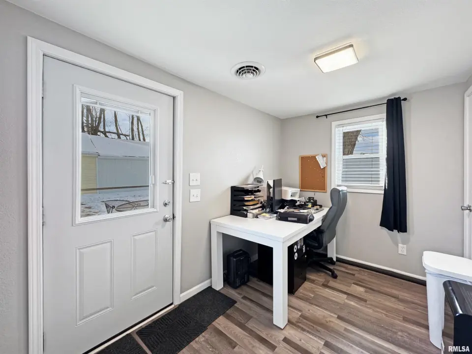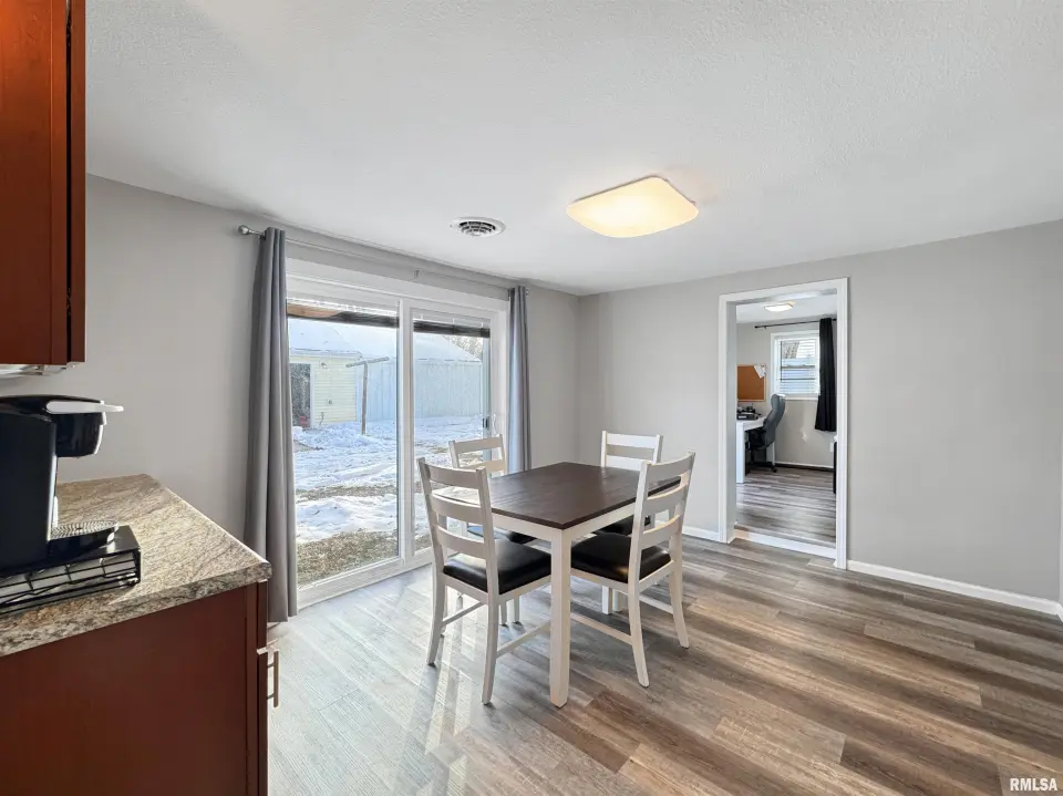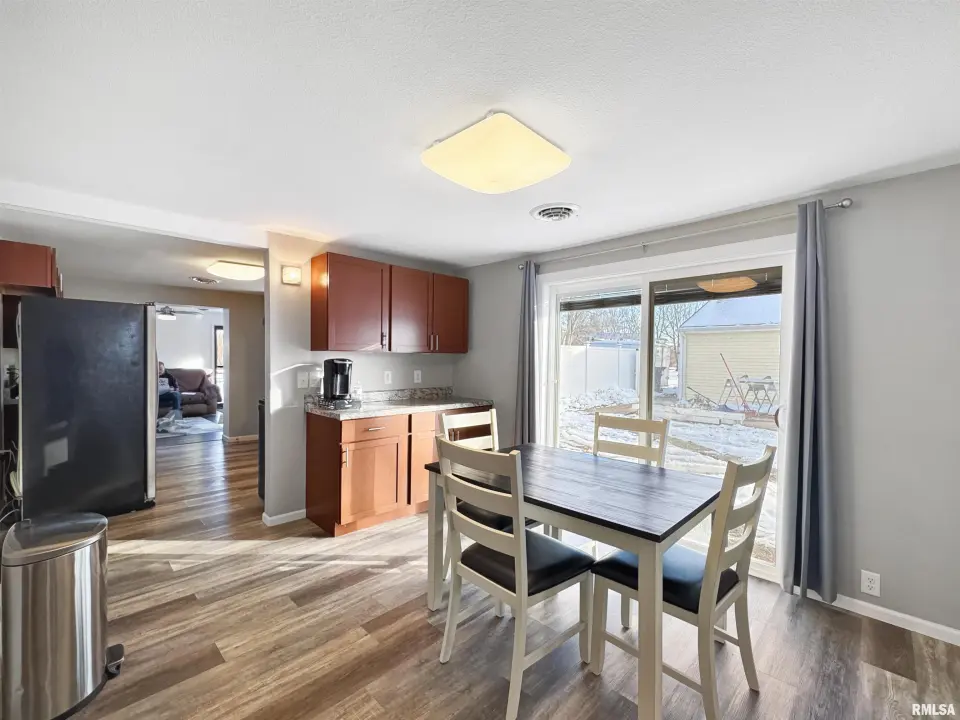 This home offers a spacious and versatile layout with an additional flex room that is currently being used as an office. Easy to maintain vinyl plank flooring throughout. Updated galley kitchen has new counter tops, cabinets, stainless steel appliances, and a pantry. Dining room is perfect for hosting or quiet dinners in with a great view from the sliding doors. Large patio area and fenced yard are ideal for entertaining or outdoor activities. You will love the oversized 2 stall garage that has a storage/hobby workshop. Additional unfinished attic. Move in ready and a must see!