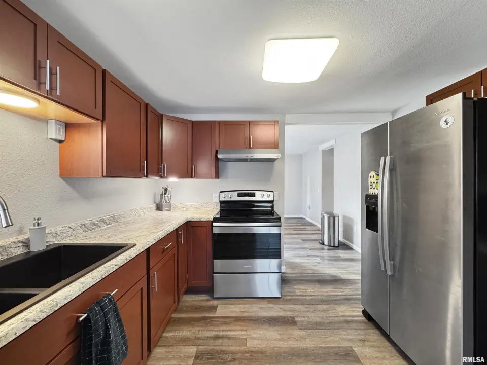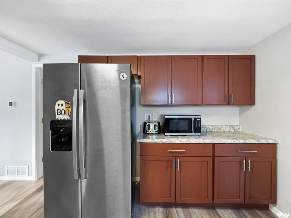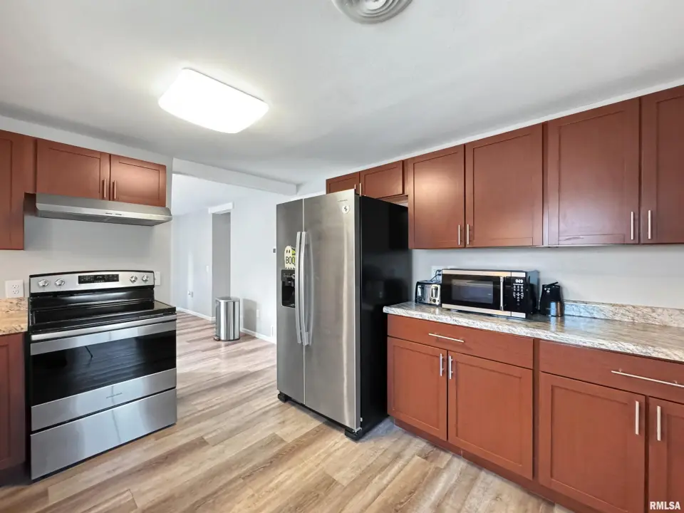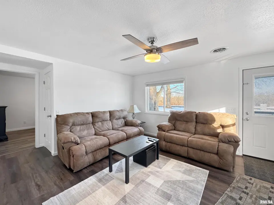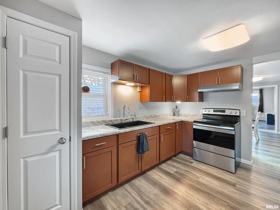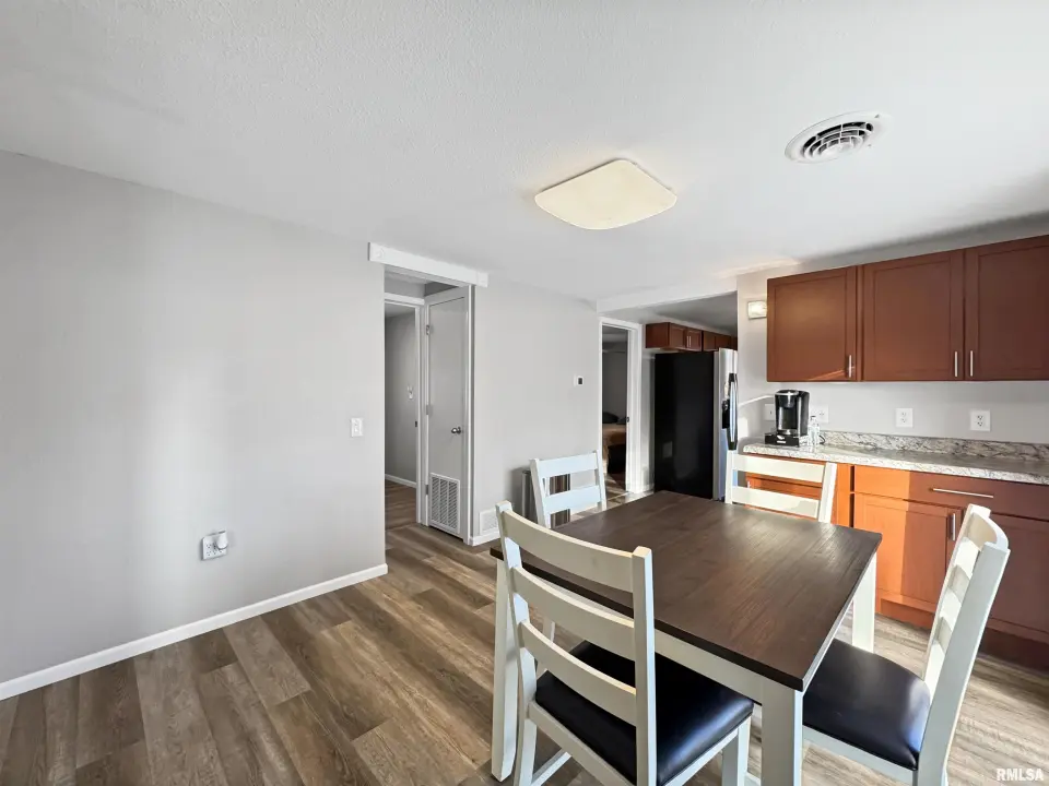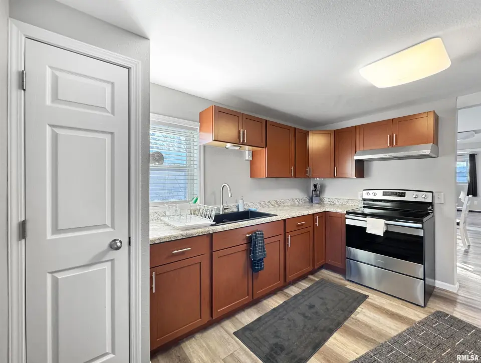 This home offers a spacious and versatile layout with an additional flex room that is currently being used as an office. Easy to maintain vinyl plank flooring throughout. Updated galley kitchen has new counter tops, cabinets, stainless steel appliances, and a pantry. Dining room is perfect for hosting or quiet dinners in with a great view from the sliding doors. Large patio area and fenced yard are ideal for entertaining or outdoor activities. You will love the oversized 2 stall garage that has a storage/hobby workshop. Additional unfinished attic. Move in ready and a must see!